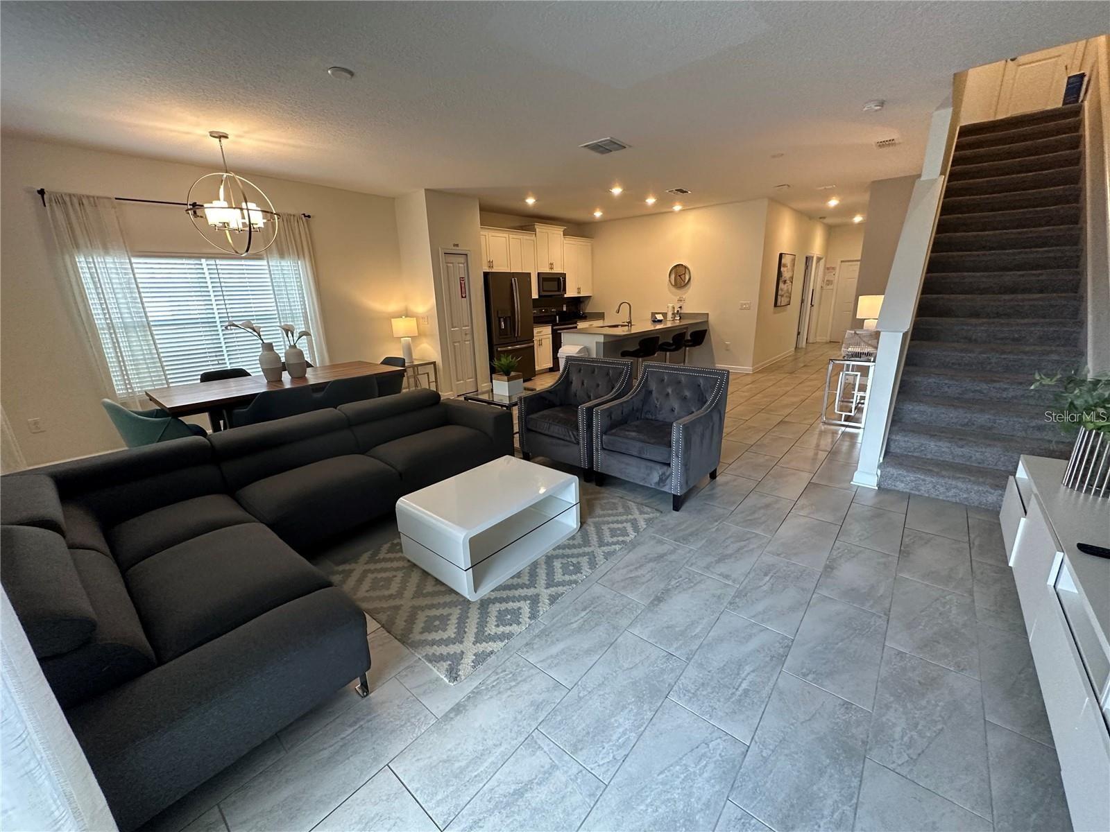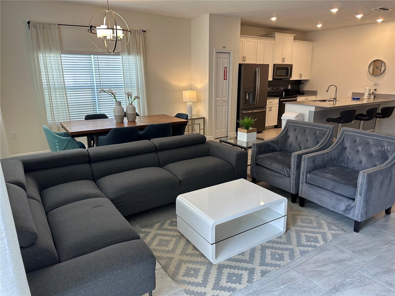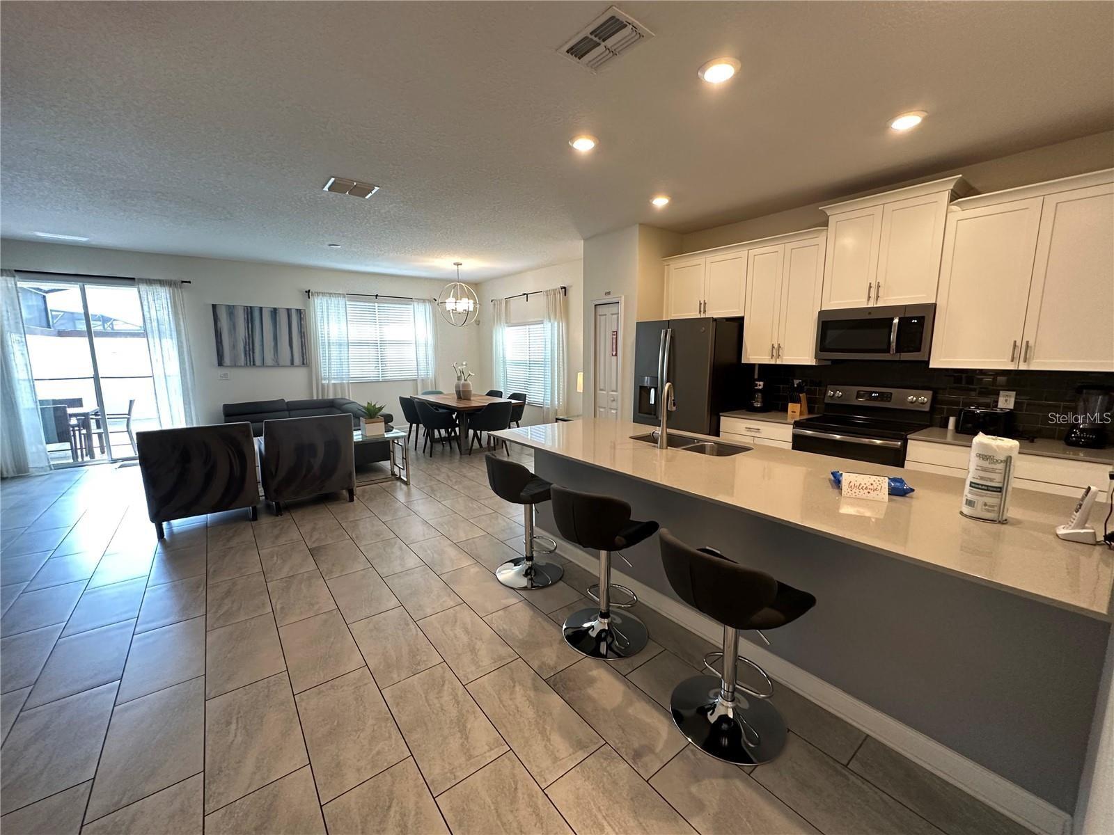 GREAT OPPORTUNITY for INVESTMENT PROPERTY!! Can be rented as SHORT TERM or LONG TERM. This stunning 5 bedroom / 4 bath END-UNIT townhome with private pool is located in the highly desirable 24-hour guard gated golf course community of Champions Gate is a MUST see. This FULLY FURNISHED property is convenient located to HWY 27 and I4 and located within minutes to downtown Champions Gate, restaurants, Walt Disney, other theme parks and activities. The Oasis clubhouse is 14,000 square feet with reception/concierge; full-service restaurant & bar; theatre; childcare center; tiki bar; pools encircled with cabanas, including adult only quiet pools; waterpark; 850-foot lazy river; hot tub; kiddie splash pad; playground; volleyball courts; fitness center; games room; business center and yoga room, community-wide shuttle service and much more. Ask the concierge for a calendar of events, numerous games and various events are offered to owners and guests alike. In addition to all these amenities, there’s 18-hole golf course and 6 tennis courts.