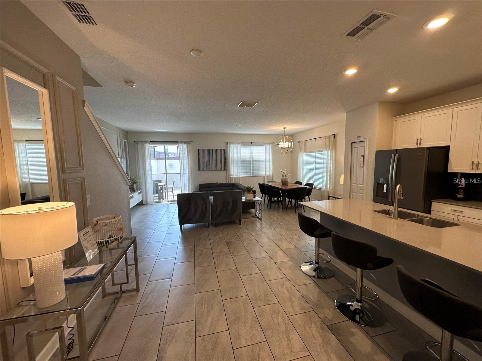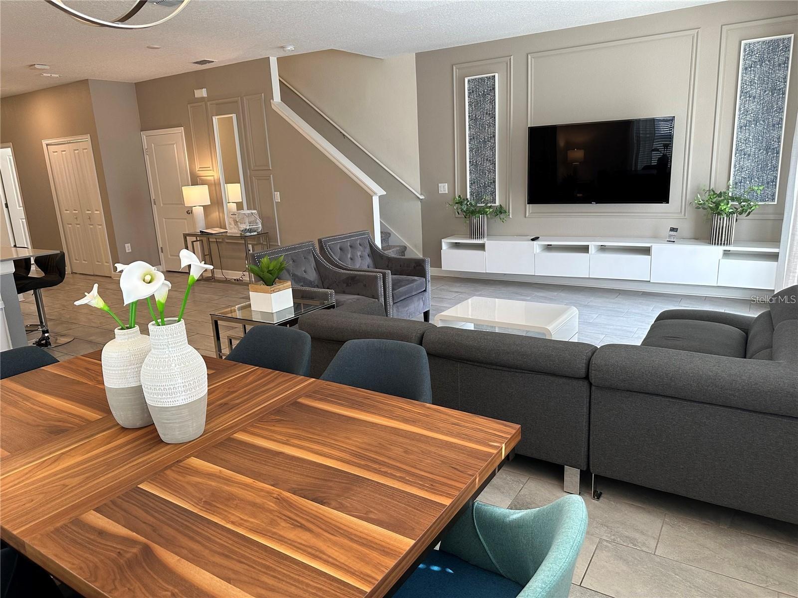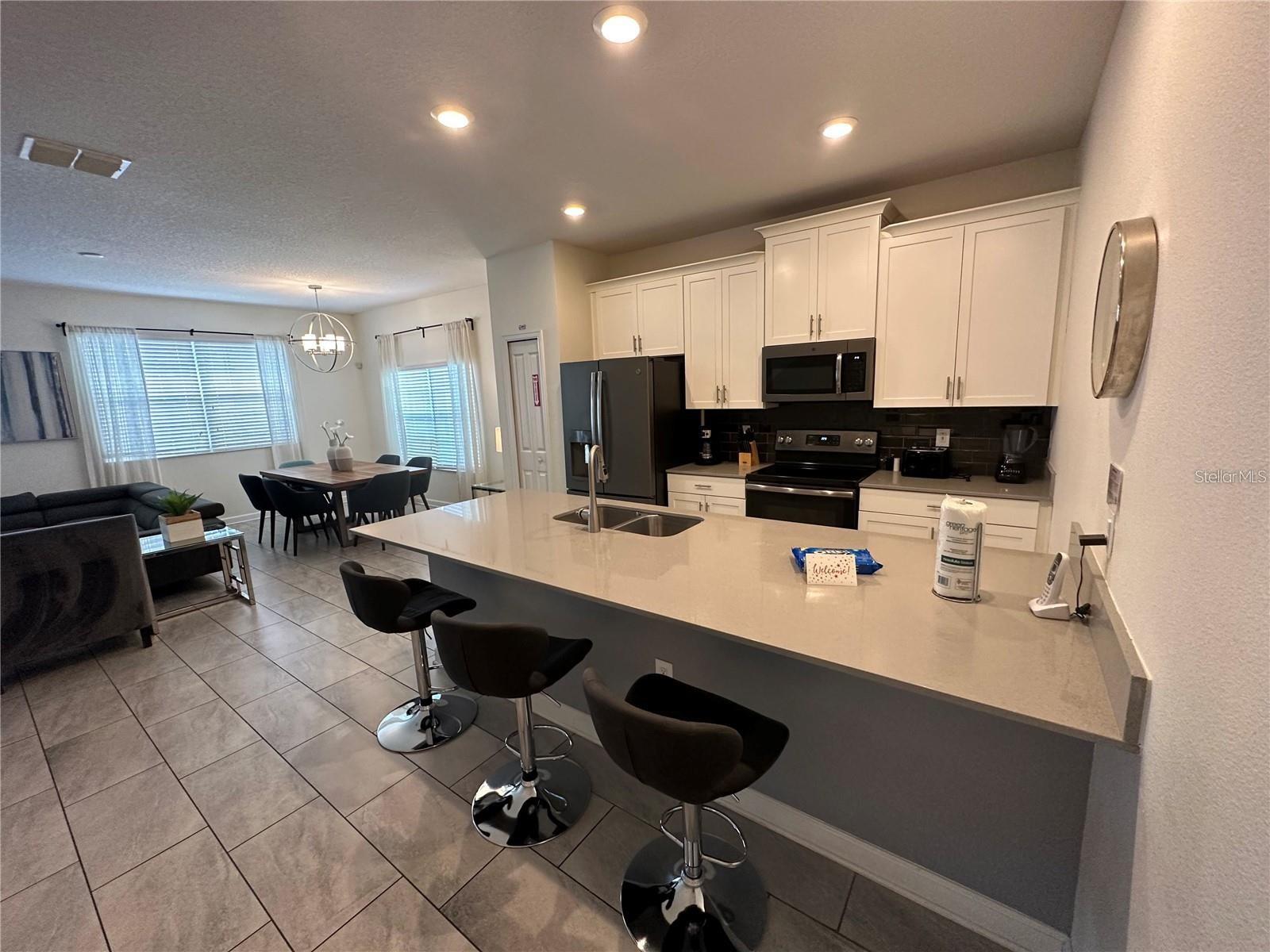 GREAT OPPORTUNITY for INVESTMENT PROPERTY!! Can be rented as SHORT TERM or LONG TERM. This stunning 5 bedroom / 4 bath END-UNIT townhome with private pool is located in the highly desirable 24-hour guard gated golf course community of Champions Gate is a MUST see. This FULLY FURNISHED property is convenient located to HWY 27 and I4 and located within minutes to downtown Champions Gate, restaurants, Walt Disney, other theme parks and activities. The Oasis clubhouse is 14,000 square feet with reception/concierge; full-service restaurant & bar; theatre; childcare center; tiki bar; pools encircled with cabanas, including adult only quiet pools; waterpark; 850-foot lazy river; hot tub; kiddie splash pad; playground; volleyball courts; fitness center; games room; business center and yoga room, community-wide shuttle service and much more. Ask the concierge for a calendar of events, numerous games and various events are offered to owners and guests alike. In addition to all these amenities, there’s 18-hole golf course and 6 tennis courts.