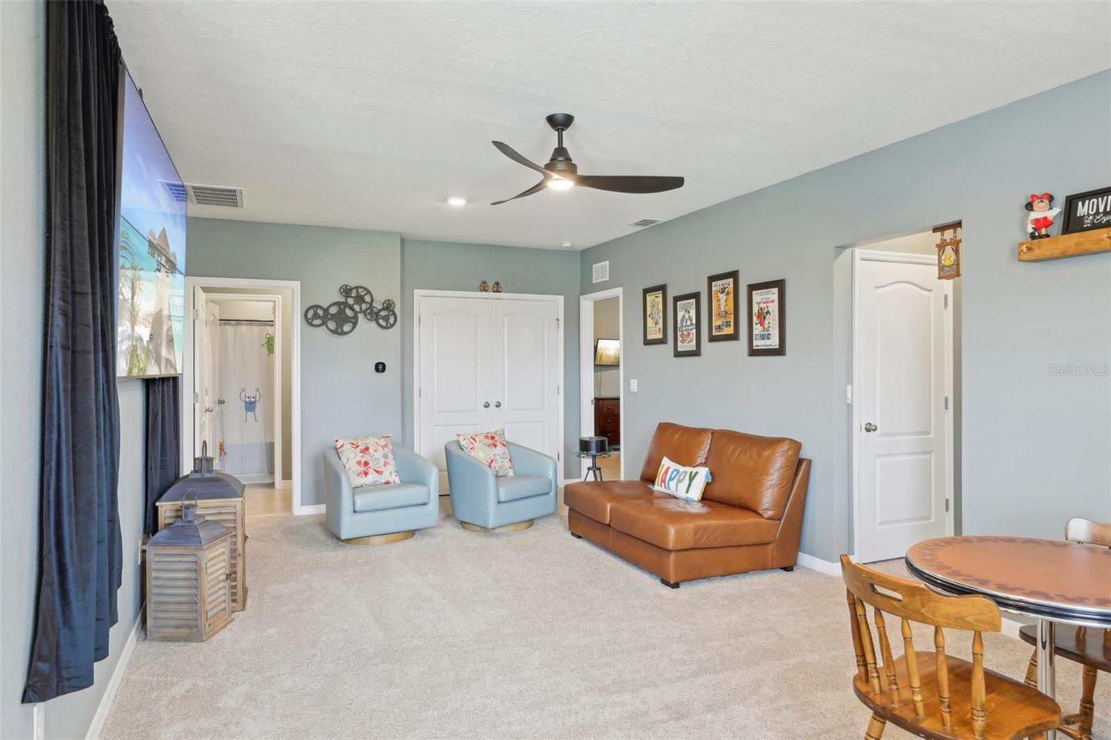 Discover a luxurious opportunity in the heart of Davenport with this exceptional 5 BR / 4.5 BA pool home in the gated Solterra Resort. This primary residence or short-term subdivision property screams over $65k in premium upgrades, including stylish sliding barn doors in the main bedrooms and a transformed 2-car garage now serving as a vibrant game room or convert back to your desire. Additionally, the home features a private screened-in pool. Solterra Resort's top-notch amenities, internet, lawn care, daily valet trash pick-up, and much more such as a lazy river for year-round summer fun, an Olympic-size pool with a thrilling water slide, and a state-of-the-art fitness center, enhance the appeal of this exquisite property. Disney World only 25 minutes away, 45 minutes from downtown Orlando, and a 35-minute drive to the Orlando International Airport. Don’t miss your chance to own a piece of this lucrative paradise. Schedule a showing today to experience the allure and potential of this magnificent home.