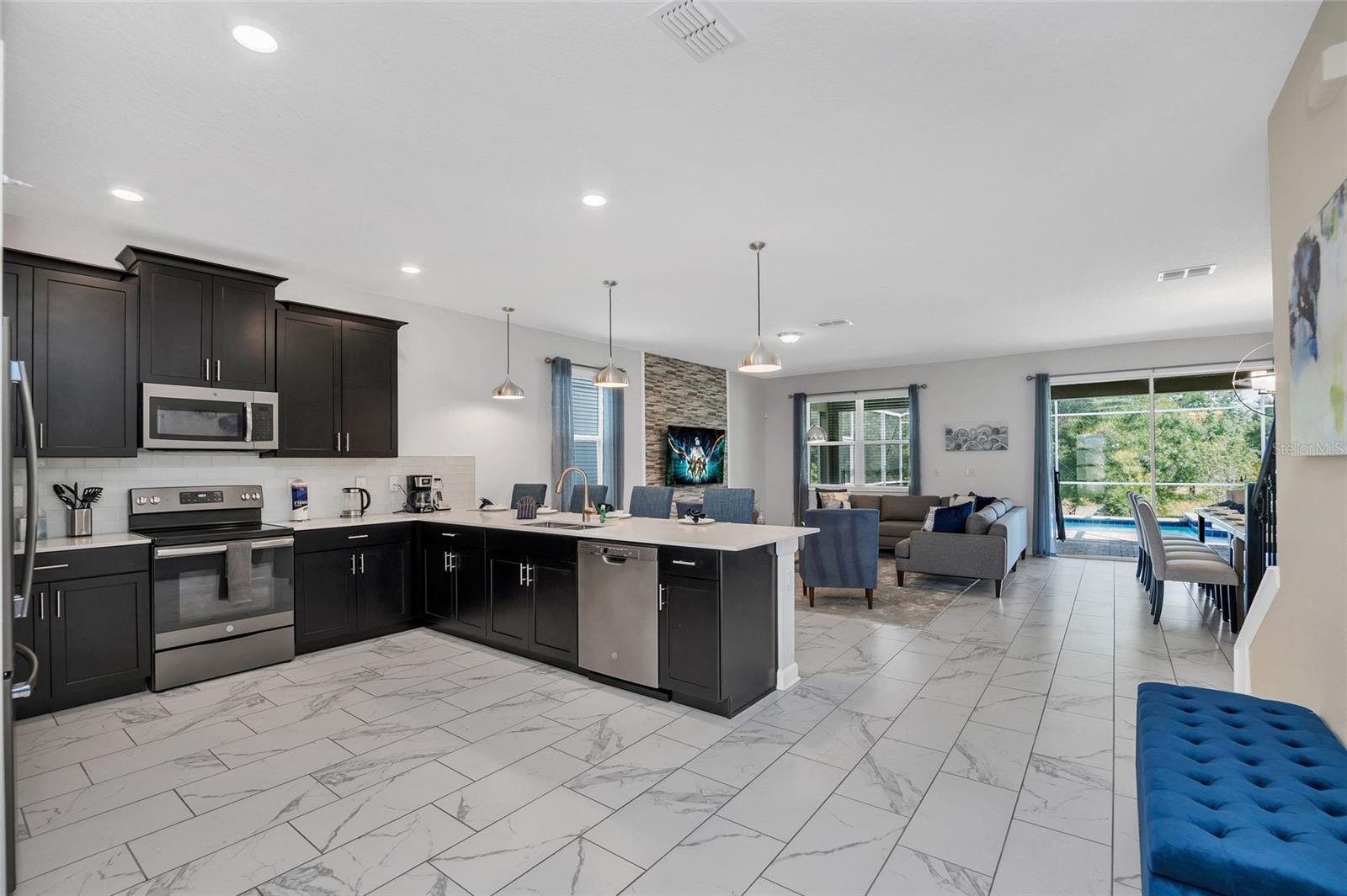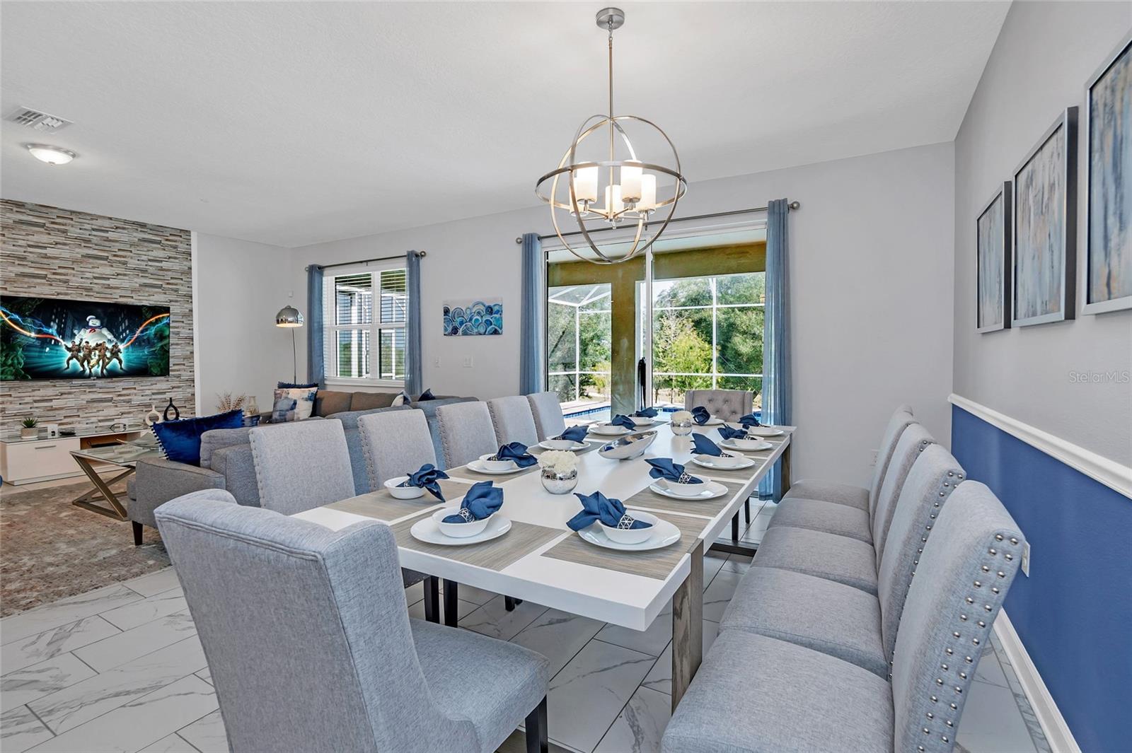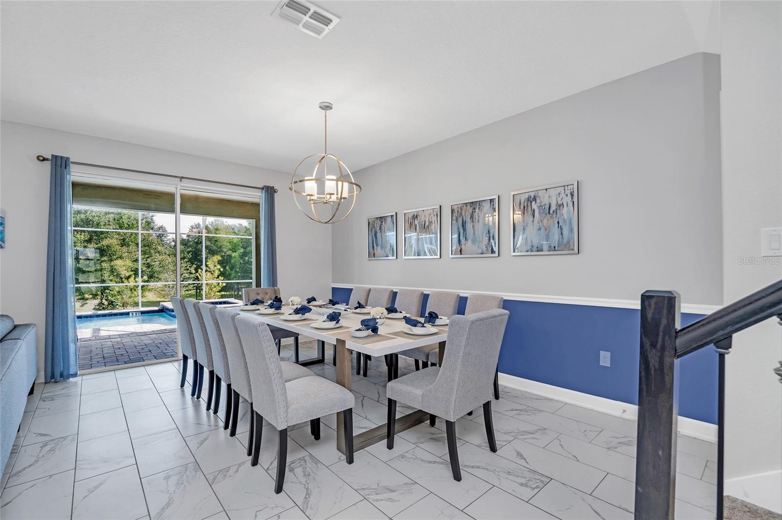 This exquisite 8-bedroom resort home in Champions Gate offers luxurious living just 15 minutes from the theme parks. Professionally designed furnishings grace this expansive 3,915 square foot property, which includes 8 beautifully decorated bedrooms and 5 bathrooms. The home features a large home theatre room, a screened pool and spa overlooking green space for privacy, and an open floor plan that encompasses a spacious kitchen with stone countertops, stainless steel appliances, and a large pantry. The first floor boasts tile throughout, with a master bedroom and a second bedroom providing direct access to the pool area. Upstairs, a second living room/loft, a home theatre, and six additional bedrooms await. The property is conveniently located near The Retreat Waterpark with slides, Lazy River, and an 18-hole golf course, as well as tennis courts, football courts, and soccer fields, etc and also close to The Oasis Clubhouse, a lavish 16,000 square foot complex offering a resort-style pool, lazy river, waterslide, cabanas, hot tub, volleyball courts, fitness centre, arcade, movie theatre, restaurant, and bars. Champions Gate area also features lots of options for dining, shopping etc as well as the OMNI hotel which has additional restaurants and amenities, there is so much to do in this area for Owners and their guests. List Agent is managing agent. Income details from rental opportunities can be provided by the managing agent upon request. Whilst we have given the most accurate data available to us, all measurements & HOA info are approximate/not guaranteed, any information MUST be verified by buyers /or buyer’s agent.