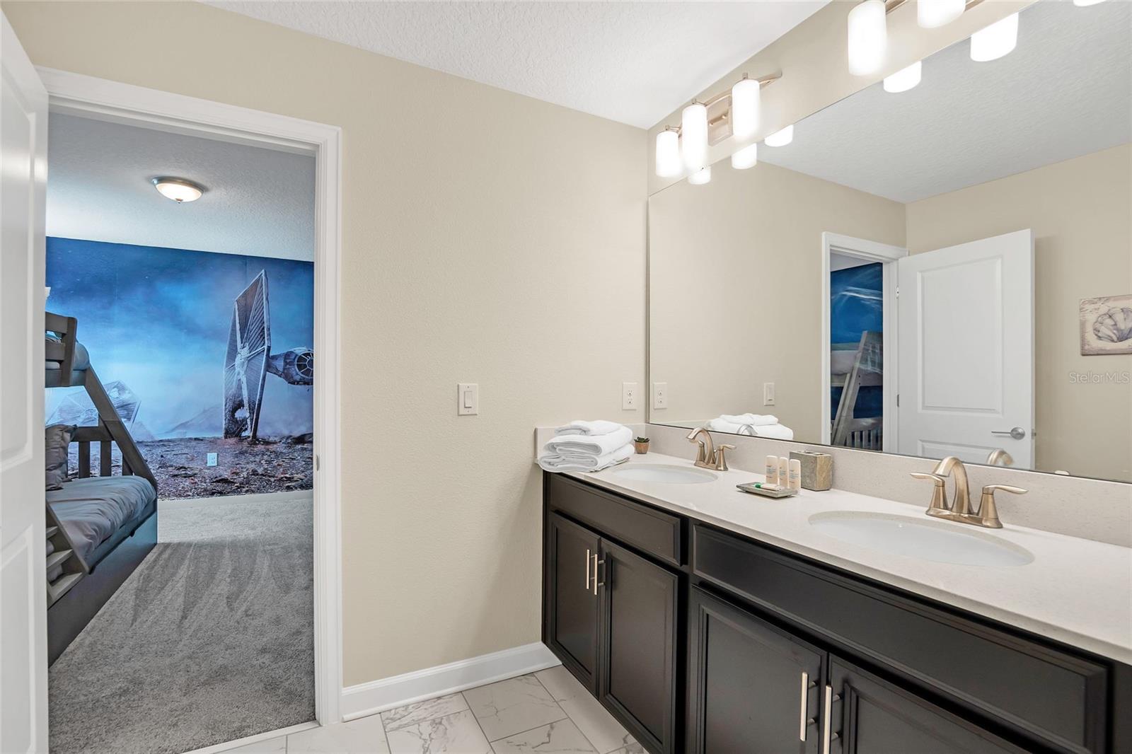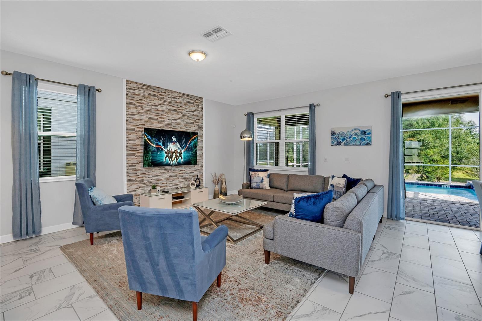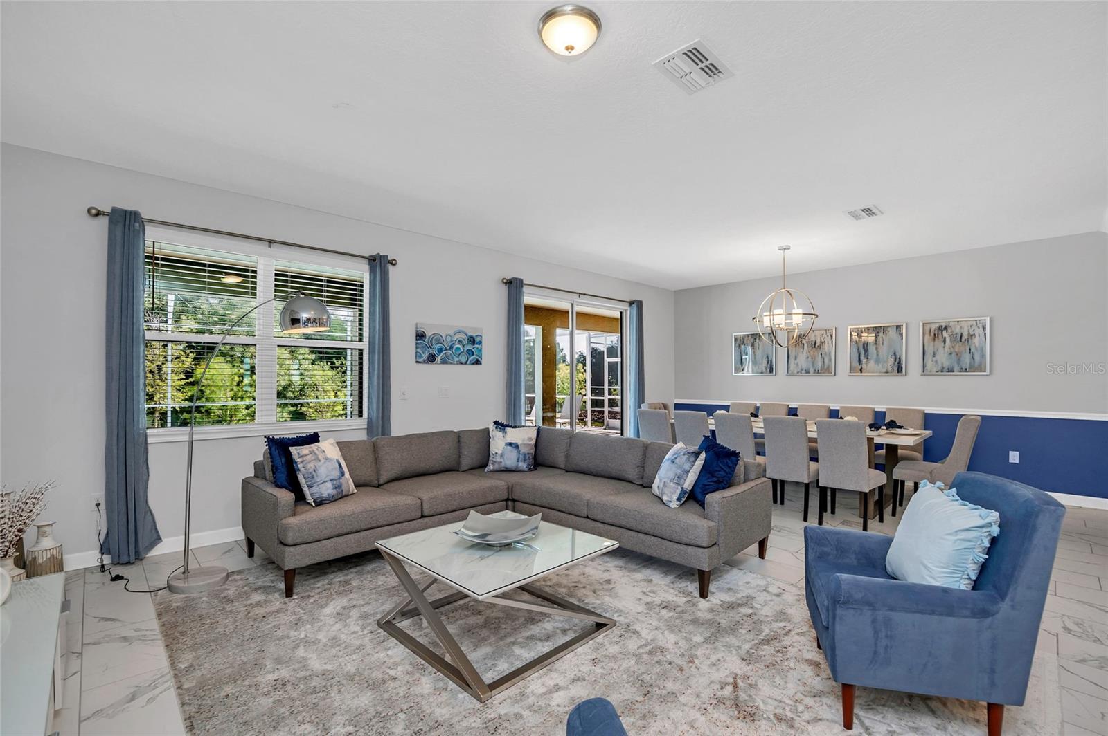 This exquisite 8-bedroom resort home in Champions Gate offers luxurious living just 15 minutes from the theme parks. Professionally designed furnishings grace this expansive 3,915 square foot property, which includes 8 beautifully decorated bedrooms and 5 bathrooms. The home features a large home theatre room, a screened pool and spa overlooking green space for privacy, and an open floor plan that encompasses a spacious kitchen with stone countertops, stainless steel appliances, and a large pantry. The first floor boasts tile throughout, with a master bedroom and a second bedroom providing direct access to the pool area. Upstairs, a second living room/loft, a home theatre, and six additional bedrooms await. The property is conveniently located near The Retreat Waterpark with slides, Lazy River, and an 18-hole golf course, as well as tennis courts, football courts, and soccer fields, etc and also close to The Oasis Clubhouse, a lavish 16,000 square foot complex offering a resort-style pool, lazy river, waterslide, cabanas, hot tub, volleyball courts, fitness centre, arcade, movie theatre, restaurant, and bars. Champions Gate area also features lots of options for dining, shopping etc as well as the OMNI hotel which has additional restaurants and amenities, there is so much to do in this area for Owners and their guests. List Agent is managing agent. Income details from rental opportunities can be provided by the managing agent upon request. Whilst we have given the most accurate data available to us, all measurements & HOA info are approximate/not guaranteed, any information MUST be verified by buyers /or buyer’s agent.