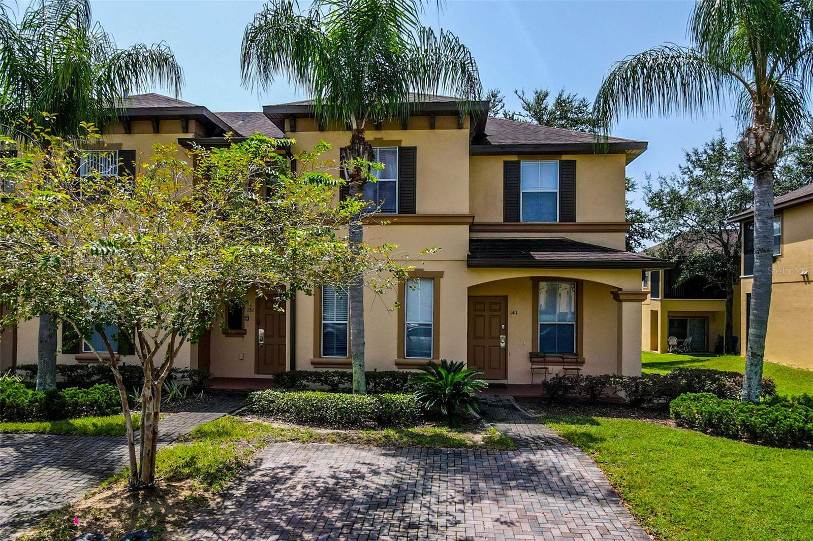 This townhome is situated in the sought-after vacation community of Regal Palms at Highland Reserve, offering convenient access to theme parks, shopping, and dining. The property features a modern open floor plan, complete with a balcony, lanai, and a first-floor bedroom with its own private entrance. The spacious layout seamlessly connects the kitchen, dining area, and living room, creating a versatile space for everyday living. The home is bathed in natural light, creating a warm and inviting atmosphere throughout. The master bedroom provides a peaceful retreat with a walk-in closet, balcony, and an en-suite bathroom for relaxation and privacy. Residents can take advantage of a range of luxurious amenities within the community clubhouse, including a spa, ice cream parlor, resort-style pool with a lazy river and slides, tiki bar, volleyball court, arcade room, and a fitness center with a sauna and steam room. The property's location also offers easy access to schools, shopping, restaurants, and beautiful beaches. Not to be missed! Additionally, the HOA fee covers 24-hour security, cable TV, community pool, internet, and exterior maintenance.