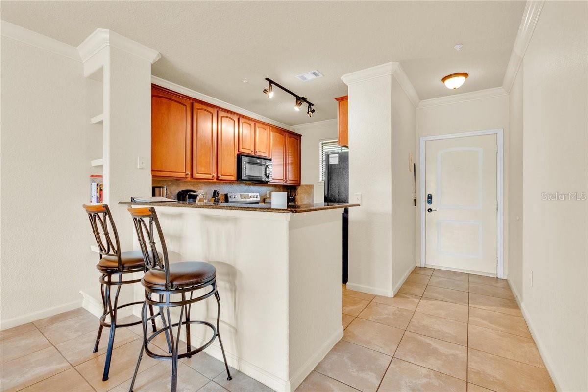 Beautiful luxury renovated highly desired 2nd floor condo in Mediterranean Accented Architecture Bella Piazza Community with a pool view!!! Turn-key, fully furnished and ready for Airbnb or your own unforgettable experience! Perfect fit for the buyer who wants the utmost in quality and impeccable attention. From the moment you walk inside you are wowed by the fashion to the fine details! Elegant 42" Maple wood cabinets with crown molding, tile backsplash, granite counter tops, matching Whirlpool appliances, stainless steel double sink and a breakfast bar opening up to a bright dining area and cozy living room. 16" tile throughout entry, kitchen, dining, living and both baths. Envision awakening in the Owner's Suite which offers an incredible view to the pool and private balcony to enjoy your morning coffee! Master bath features two vanity sinks, granite counter, SS faucets, garden tub and separate shower. Condo decorated and boasts an intimate owner’s retreat with a beautifully design furniture. Bella Piazza Resort is zoned for short term rental and includes a lot of amenities like a Clubhouse and Business center, 2 large pools, kiddies pool with splash pad, spa, fitness center, lounge area. Prime location close to Disney Theme Parks, several shopping plazas, fine and casual restaurants, nearby championship public golf courses and the famous Sunset Walk at Margaritaville, major HWY's I-4 and 429. Orlando International Airport only 30 min! Schedule your showing appointment today to enjoy an amazing lifestyle tomorrow!!! Room Feature: Linen Closet In Bath (Bedroom 2). Room Feature: Linen Closet In Bath (Primary Bedroom).