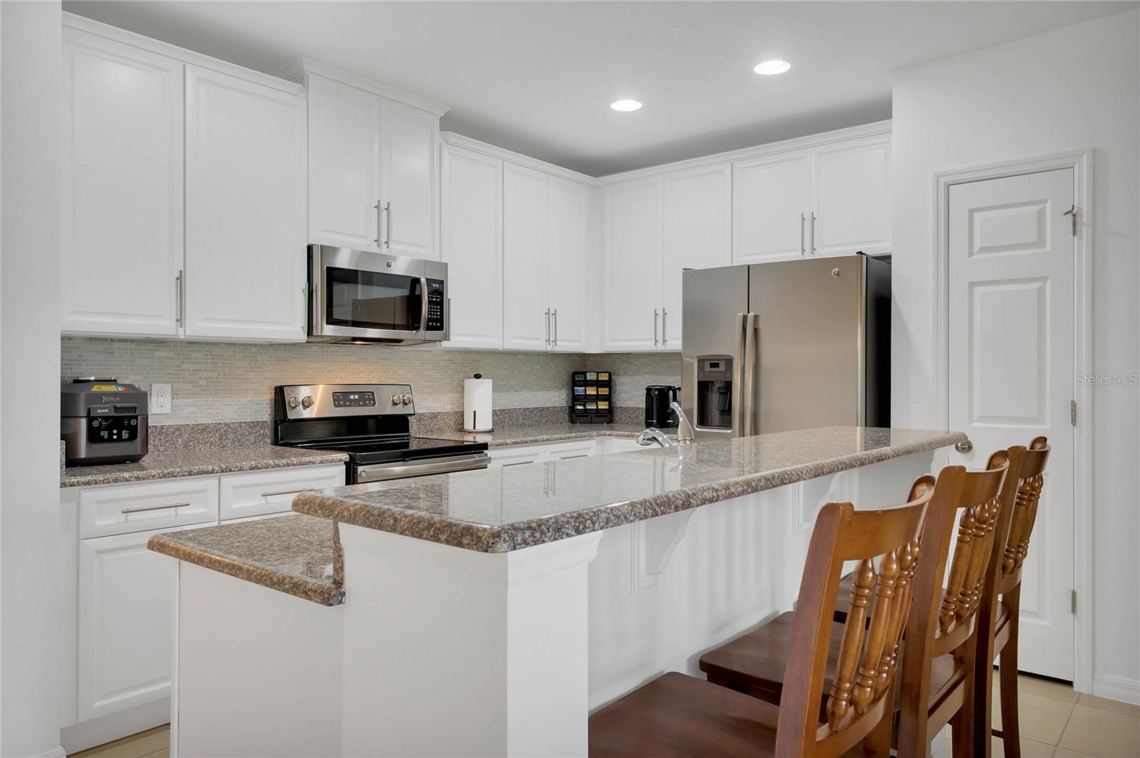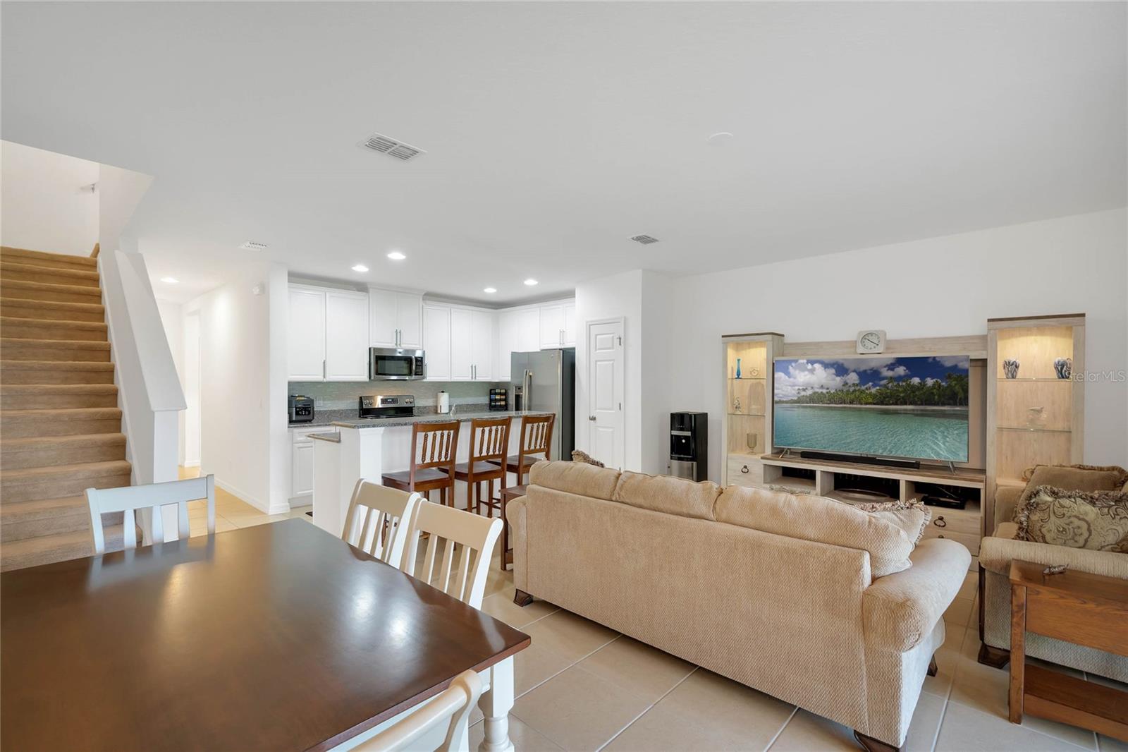 Welcome to this immaculate townhome located in the gated community of Williams Preserve in Davenport, just moments away from the magic of Disney. Perfect for a primary residence, vacation home, or investment property, this townhome is zoned for short-term rentals, making it ideal for investors. The layout is fantastic, featuring a rare first-floor bedroom and full bath. The large living area boasts upgraded kitchen cabinets, counters, and a stylish backsplash. Enjoy a private nature view from your screened lanai. Upstairs, you'll find a spacious primary bedroom with a walk-in closet and two additional generous bedrooms. This 4-bedroom, 3-full-bath townhome is a rare gem in pristine condition, offering both comfort and convenience in a sought-after location.