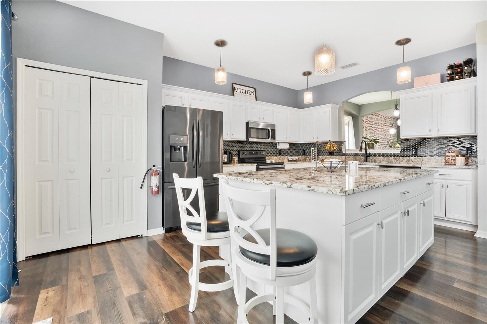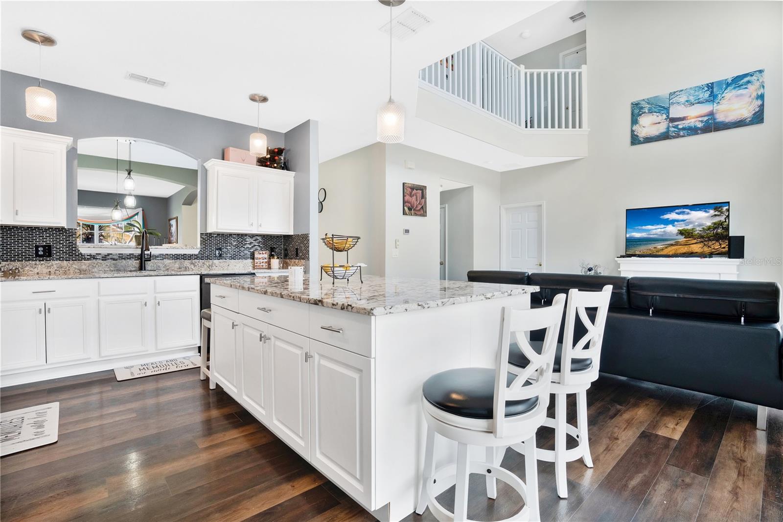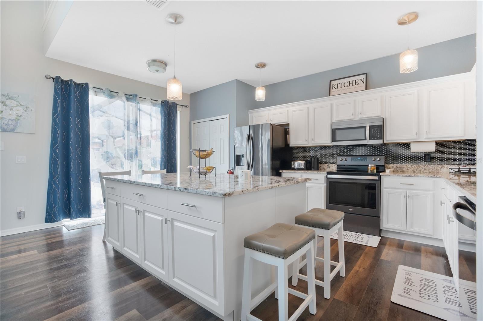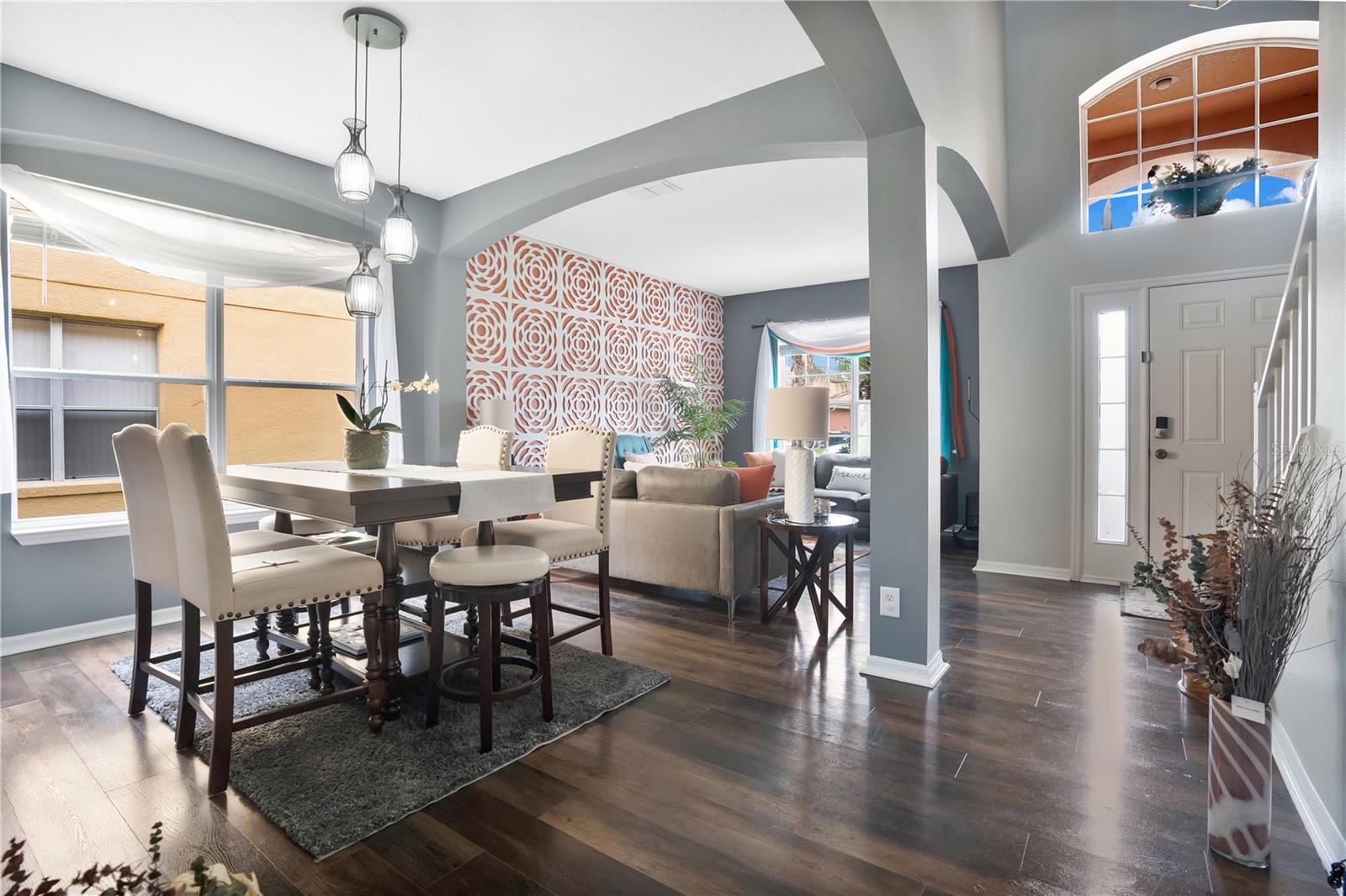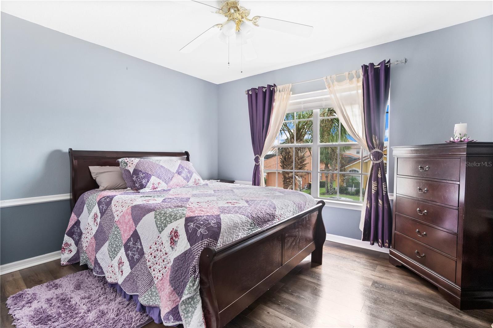 This beautiful single-family home has 6 spacious bedrooms and 5 luxurious bathrooms. Upon entering, you will be impressed by the open floor plan, which features high ceilings that create a welcoming and expansive atmosphere. The kitchen and family room are the focal point of the home, perfect for hosting guests or spending quality time with family. The chef's kitchen is fully equipped with stainless steel appliances, a pantry, and a generously sized island with a grand countertop. The primary bedroom and bathroom are conveniently situated on the first floor for added ease and comfort. Upstairs, you will find an additional primary bedroom and bathroom, offering extra privacy and convenience. There is also a loft space that can serve as a secondary family room or a game room. Outside, the backyard boasts a private pool with a screened patio, ideal for outdoor relaxation and entertainment. The Aviana community provides various amenities, including a pool, clubhouse, fitness center, volleyball courts, and a playground. This gated resort is suitable for short-term rentals or year-round living. Conveniently located just 2 miles from Publix Supermarket and only 15 minutes from Disney, this property is the perfect blend of luxury, comfort, and convenience.