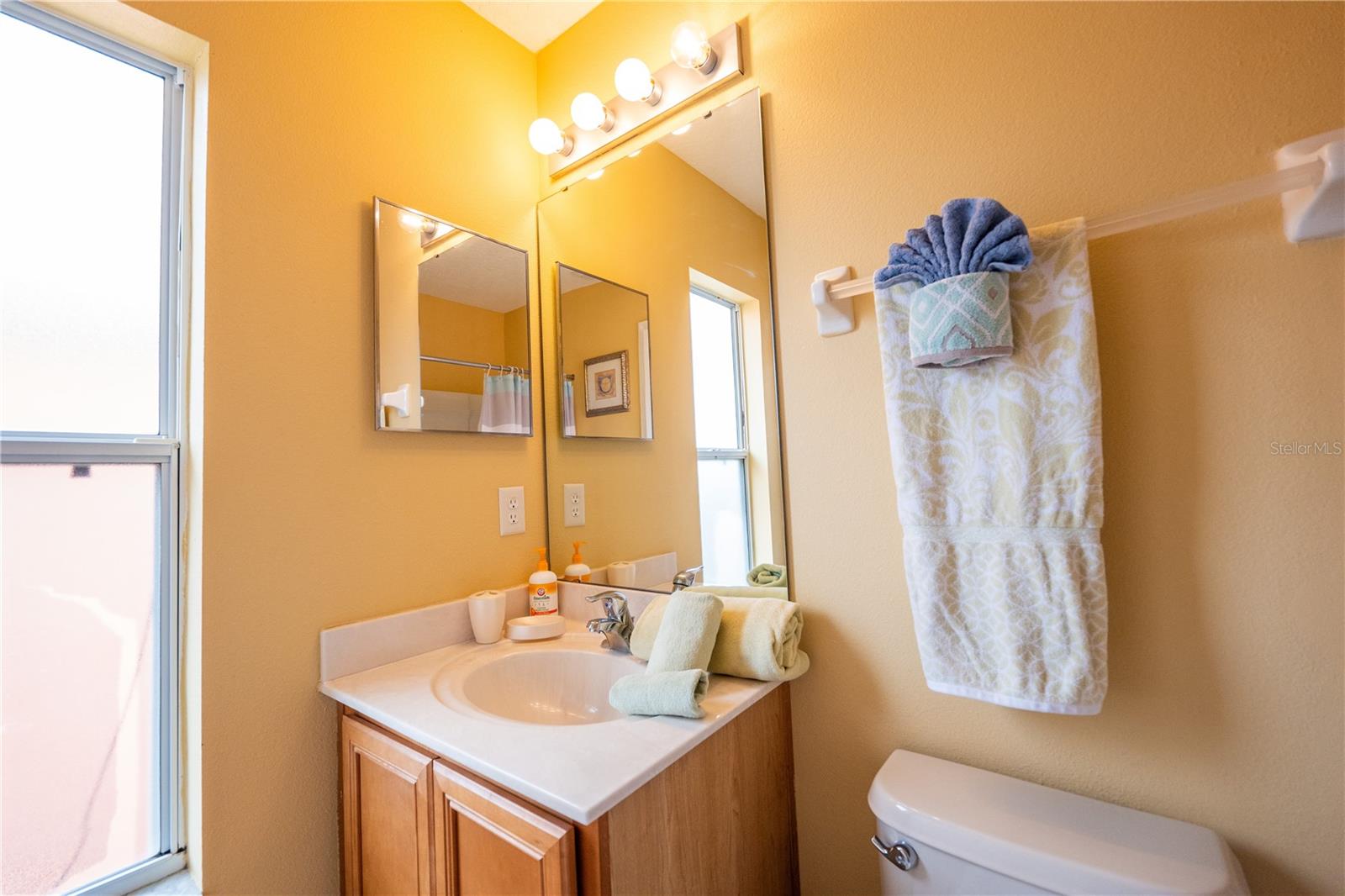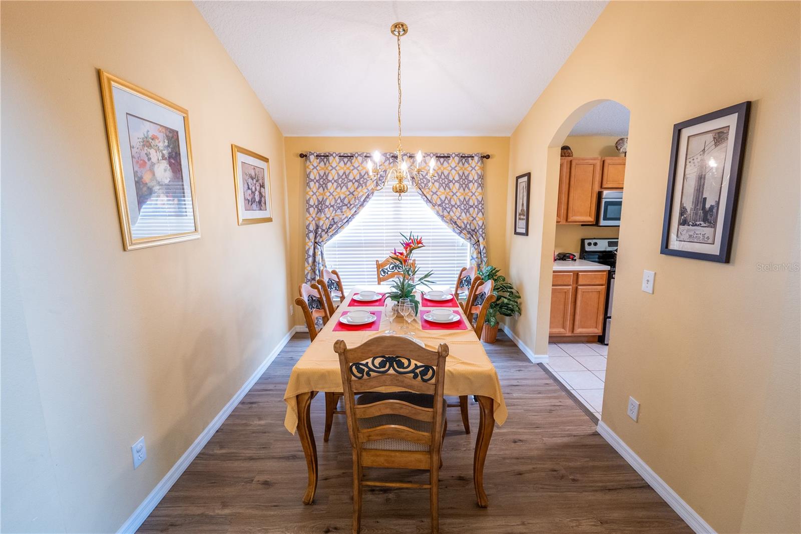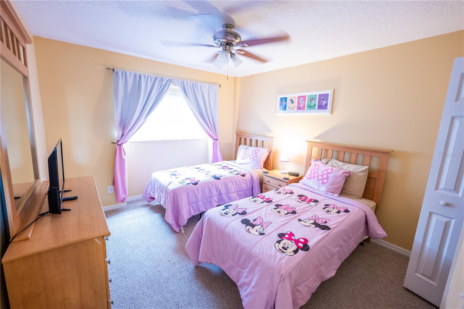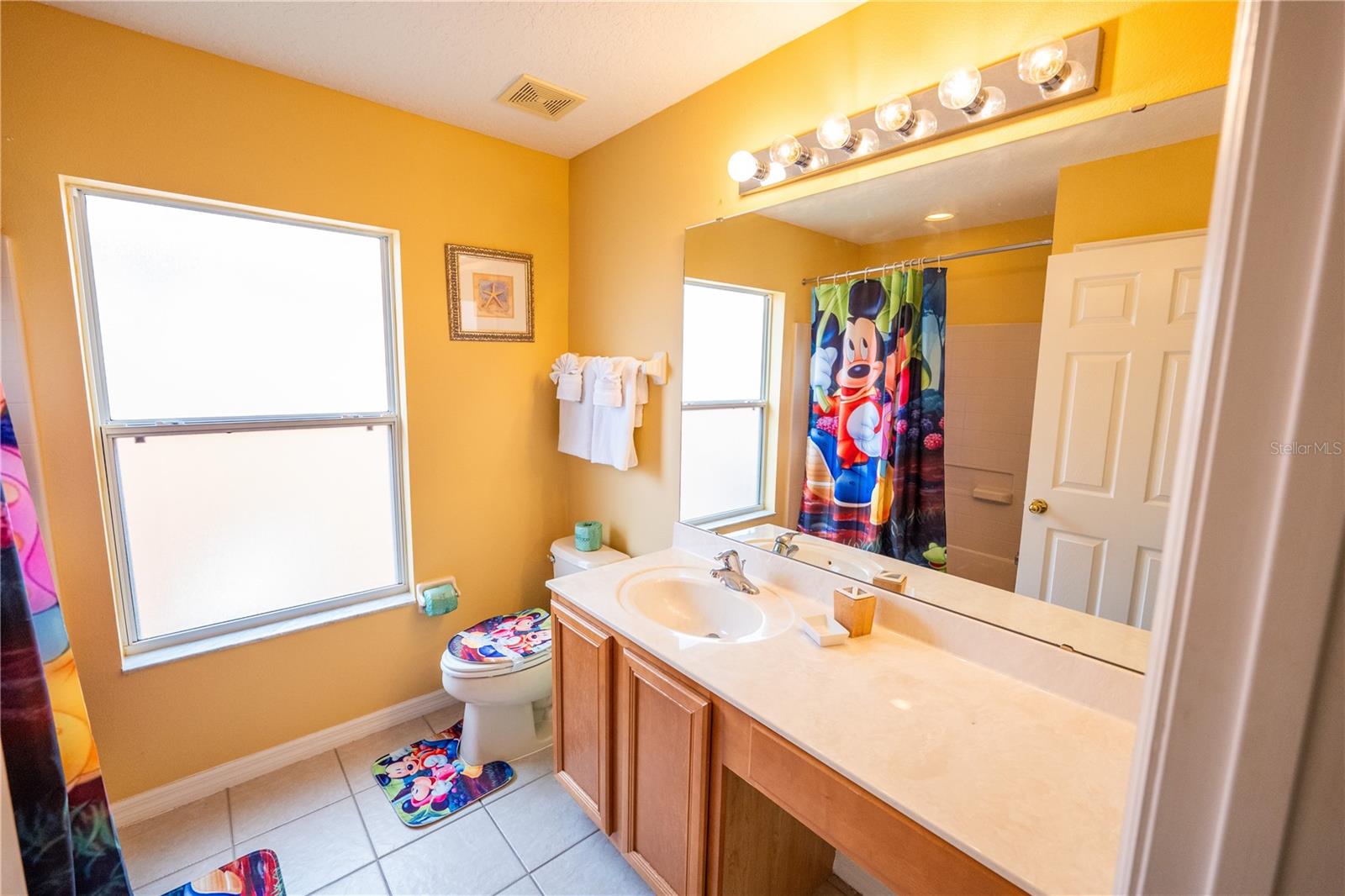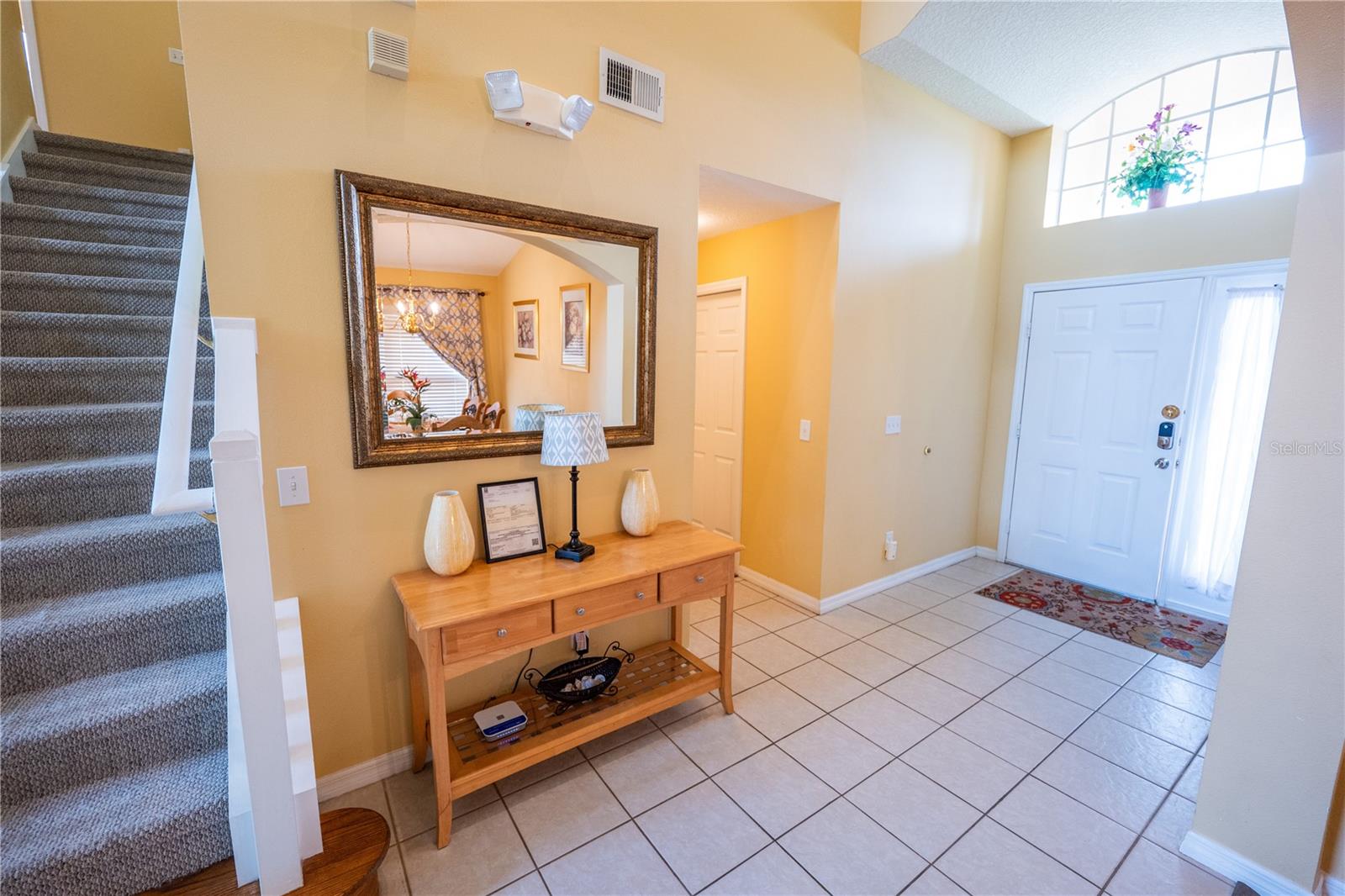 Live the Florida lifestyle in this charming, fully furnished five-bedroom, four-bath pool home in Solana's guard-gated resort community. Upon entering, embrace the soaring ceilings and natural light as you view the breathtaking floor plan of this Mediterranean-style home. Enjoy preparing your favorite meals in the fully equipped kitchen with stone countertops, and stainless steel appliances with a nook overlooking the pool area. The formal dining room off the kitchen is a true entertainer's dream. The impressive family room with warm natural light is a great place to relax and enjoy your favorite shows, game nights, or spend time with the family after a day at work or the parks. This 2-story home features a spacious first-floor primary room with a ceiling fan and a large walk-in closet with an ensuite bathroom. The primary bath features dual sinks, a garden tub, and a walk-in shower. An additional bedroom on the first floor adds convenience, and a bathroom with a walk-in shower with glass surround. This magnificent home offers further entertainment with a private game room with pool table and foosball. Three ample-sized bedrooms upstairs, one with two beds, and a third with bunk beds that share a full bath with extended vanity and shower. The fifth bedroom has a single queen bed with an en-suite bathroom with shower and tub. The covered lanai adjacent to the heated pool/spa with a screen enclosure and no rear neighbors, creates the perfect spot to relax & unwind while sipping your favorite drink or entertaining. Experience privacy and security in the Solana guard-gated Community while enjoying its featured amenities including a clubhouse, fitness center, playground, community pool and so much more. Located close to Disney World, and many other great tourist locations, this Home is prime for you to use year-round, a private vacation home, or short-term as an Airbnb. Don't miss out on this opportunity. Call for your private showing today.