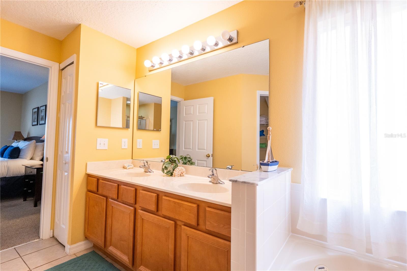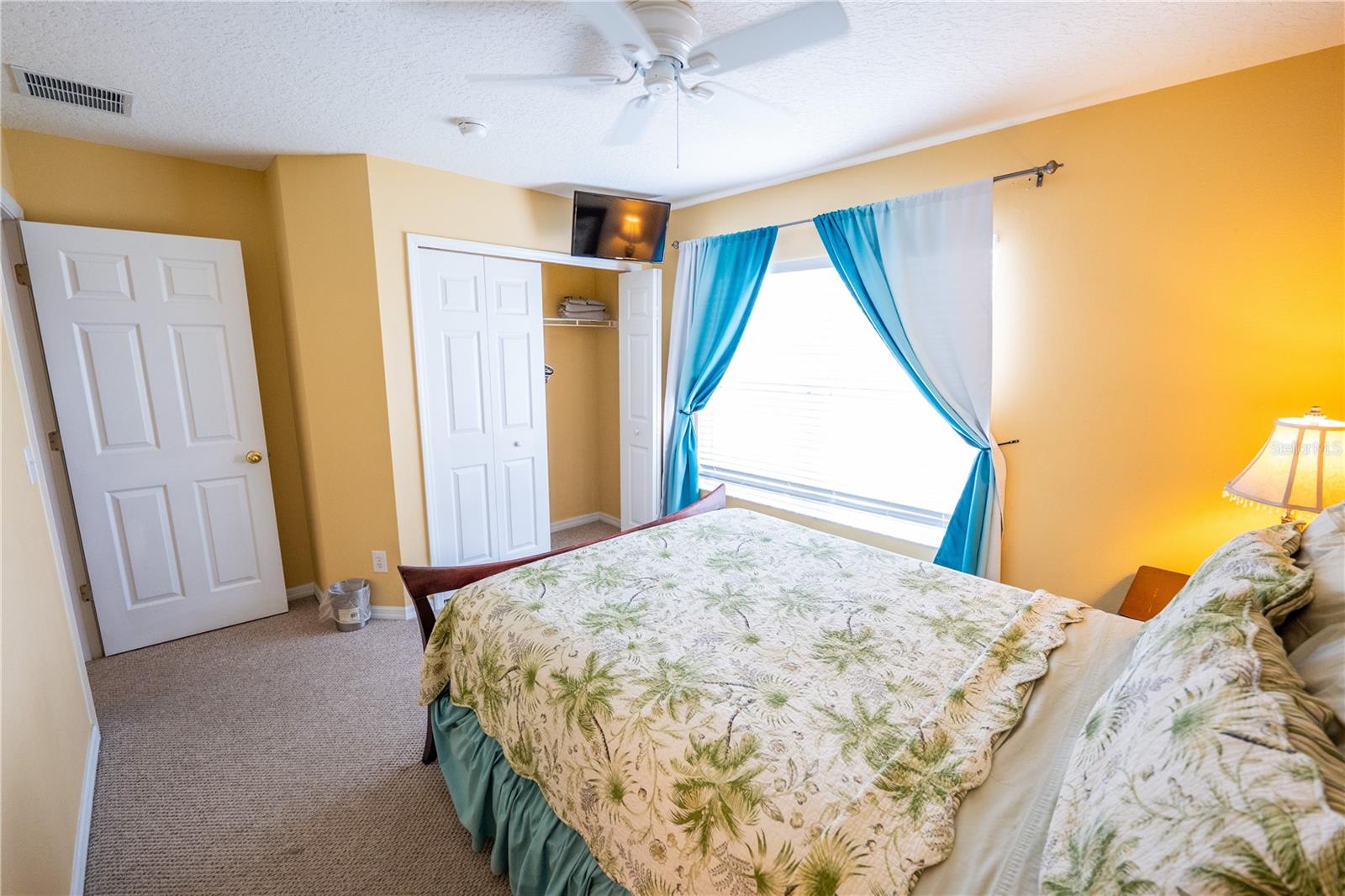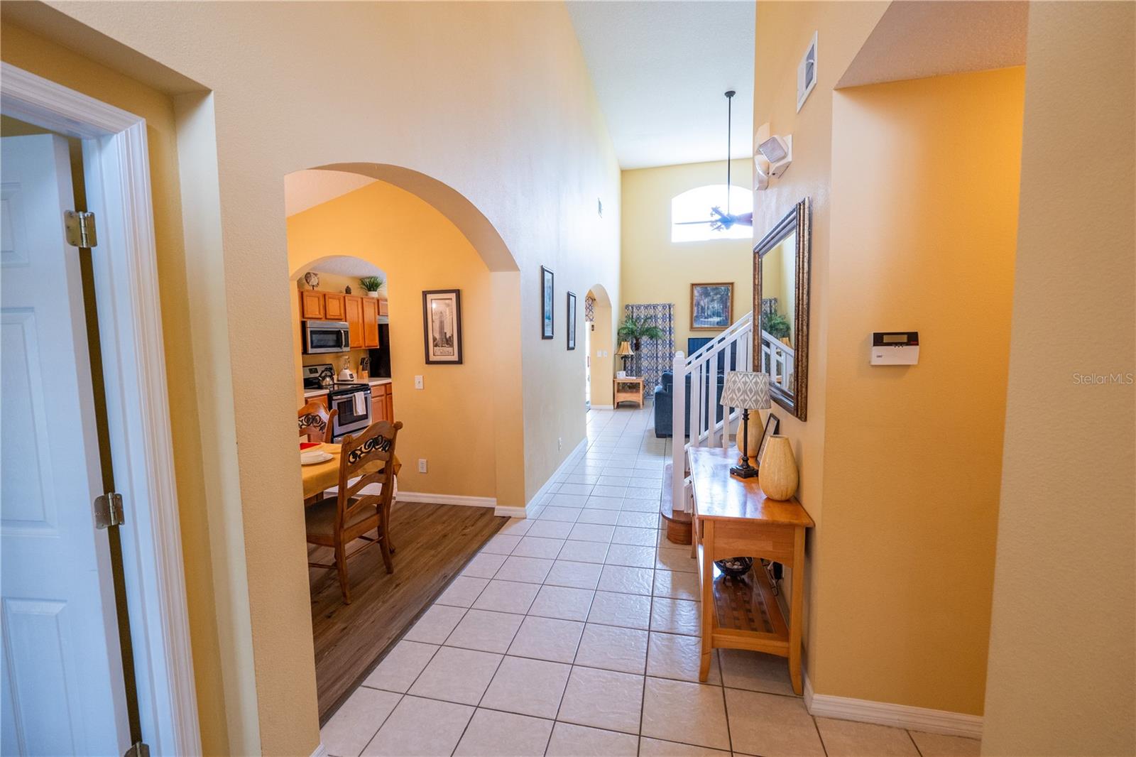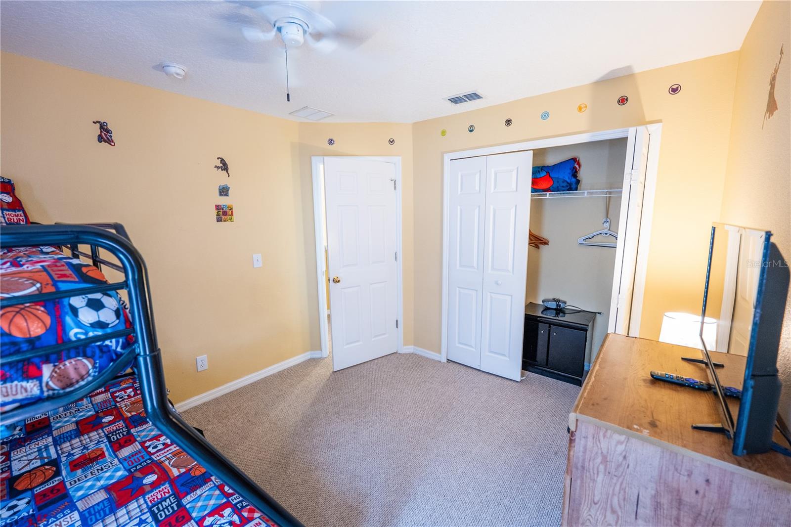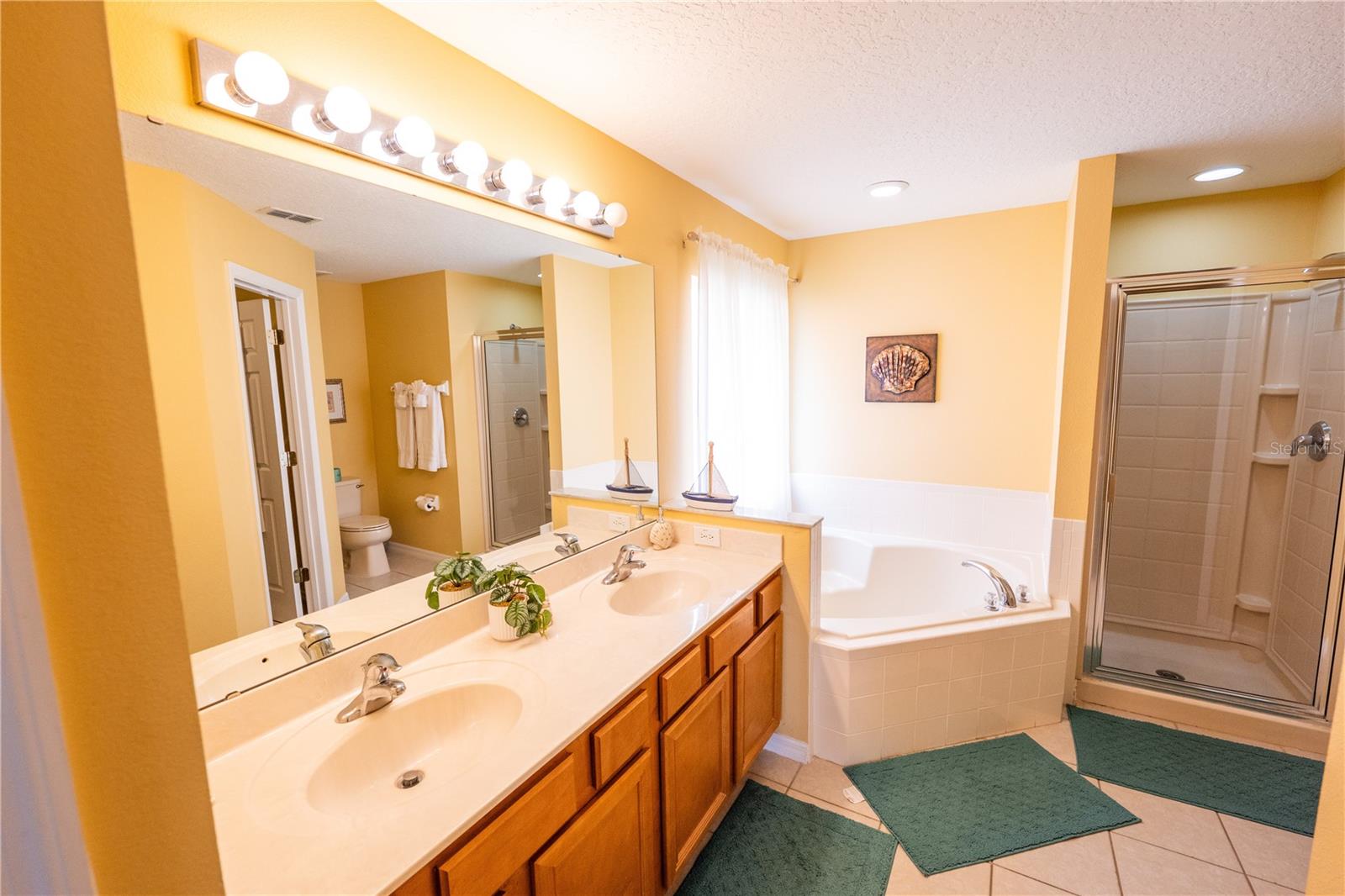 Live the Florida lifestyle in this charming, fully furnished five-bedroom, four-bath pool home in Solana's guard-gated resort community. Upon entering, embrace the soaring ceilings and natural light as you view the breathtaking floor plan of this Mediterranean-style home. Enjoy preparing your favorite meals in the fully equipped kitchen with stone countertops, and stainless steel appliances with a nook overlooking the pool area. The formal dining room off the kitchen is a true entertainer's dream. The impressive family room with warm natural light is a great place to relax and enjoy your favorite shows, game nights, or spend time with the family after a day at work or the parks. This 2-story home features a spacious first-floor primary room with a ceiling fan and a large walk-in closet with an ensuite bathroom. The primary bath features dual sinks, a garden tub, and a walk-in shower. An additional bedroom on the first floor adds convenience, and a bathroom with a walk-in shower with glass surround. This magnificent home offers further entertainment with a private game room with pool table and foosball. Three ample-sized bedrooms upstairs, one with two beds, and a third with bunk beds that share a full bath with extended vanity and shower. The fifth bedroom has a single queen bed with an en-suite bathroom with shower and tub. The covered lanai adjacent to the heated pool/spa with a screen enclosure and no rear neighbors, creates the perfect spot to relax & unwind while sipping your favorite drink or entertaining. Experience privacy and security in the Solana guard-gated Community while enjoying its featured amenities including a clubhouse, fitness center, playground, community pool and so much more. Located close to Disney World, and many other great tourist locations, this Home is prime for you to use year-round, a private vacation home, or short-term as an Airbnb. Don't miss out on this opportunity. Call for your private showing today.