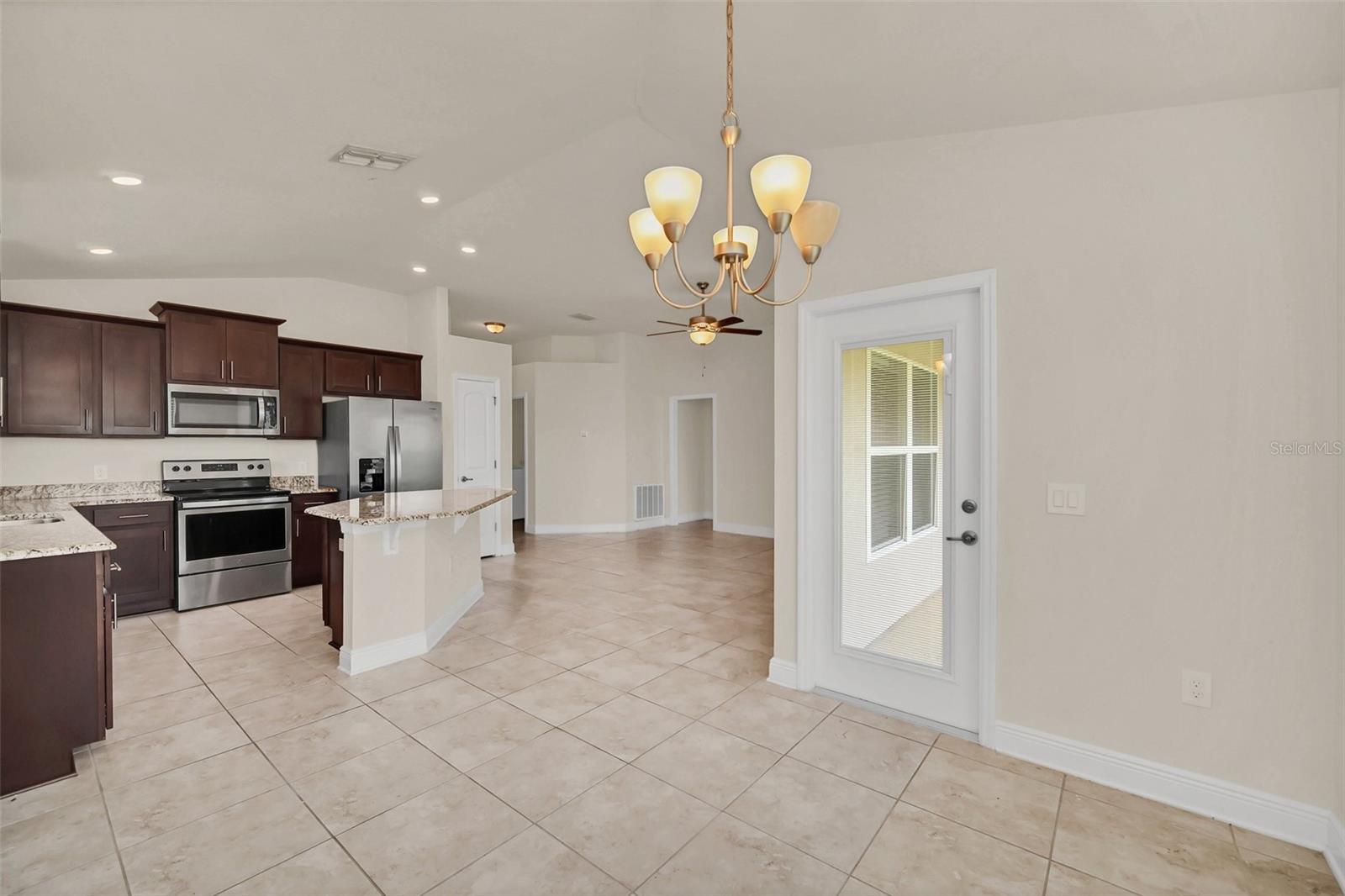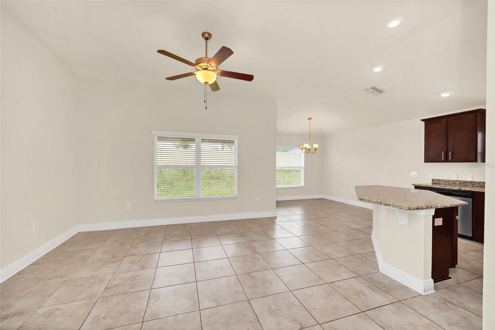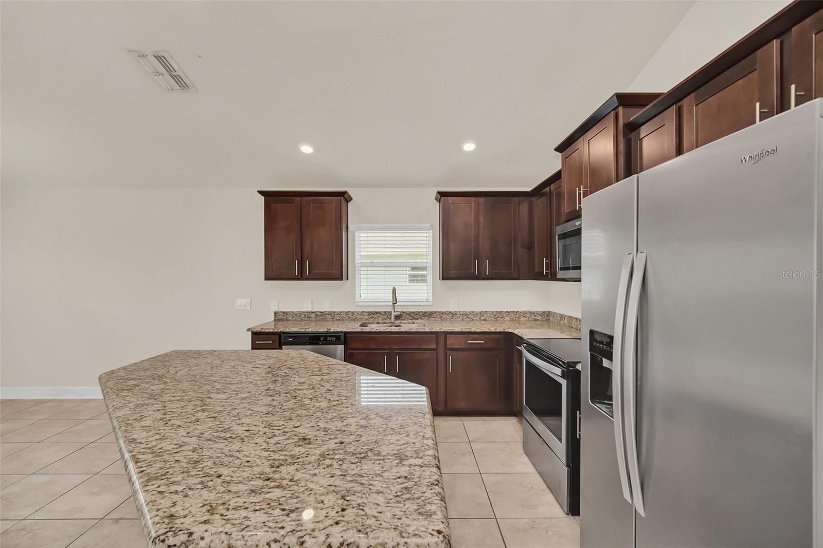 Come view this 3 bed 2 bath home located in the Adams Homes Community of North Ridge Estates in Davenport very close to 27 and I-4. This home features an upgraded kitchen with premium wood cabinets, stainless steel appliances and granite countertops. These upgrades include 5 1/4" baseboards, 36" Kitchen Cabinets with crown-molding and custom bump, brushed nickel cabinets knobs in the kitchen and all bathrooms, Craftsman style interior and closet doors with brushed nickel lever handles. The large owner's suite includes a large bathroom with a separate toilet room. The huge finished garage can house two large vehicles. New upgraded flooring throughout the home as well! This home is excellent for investors and for those who want to use as their personal home.