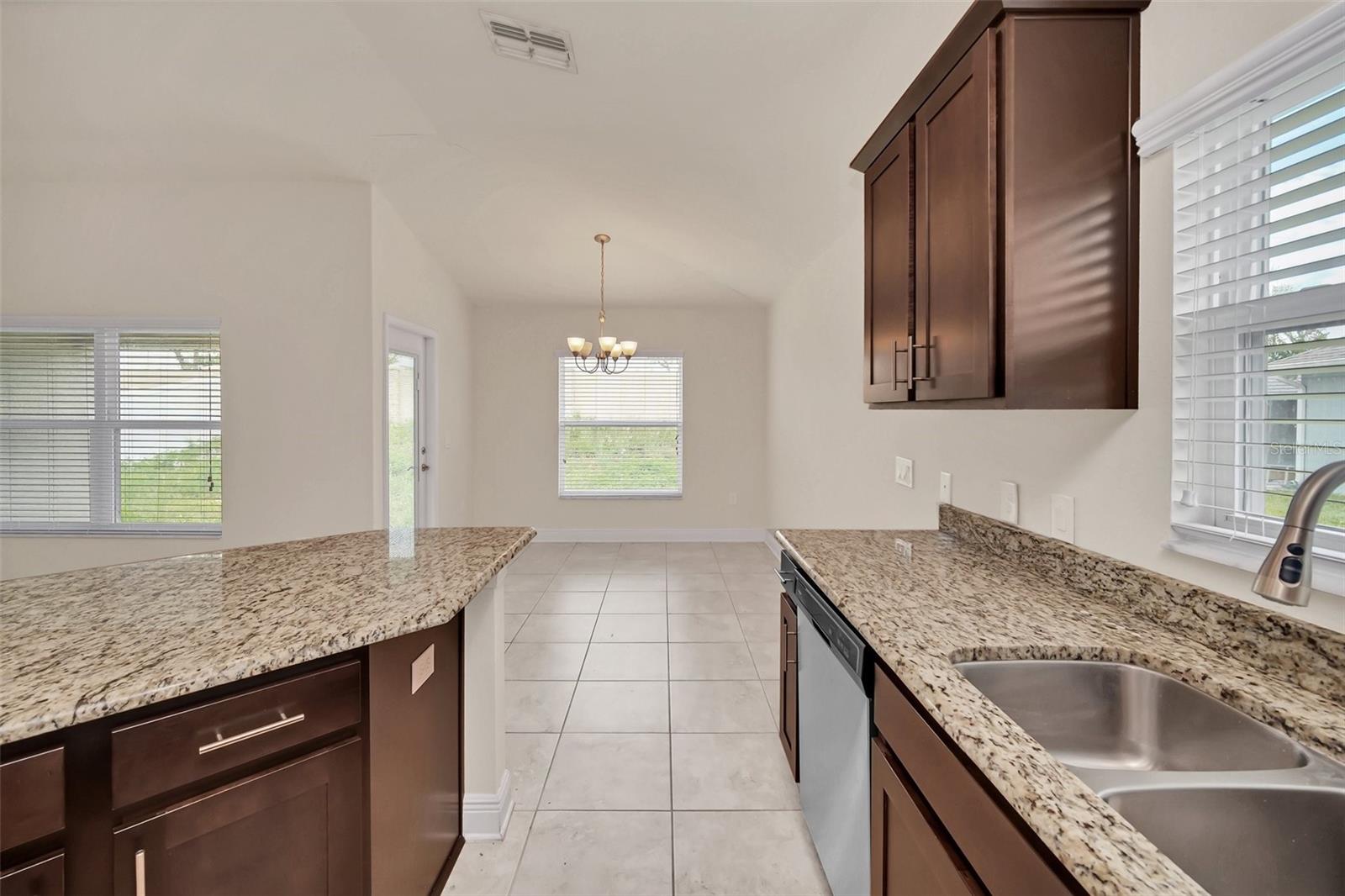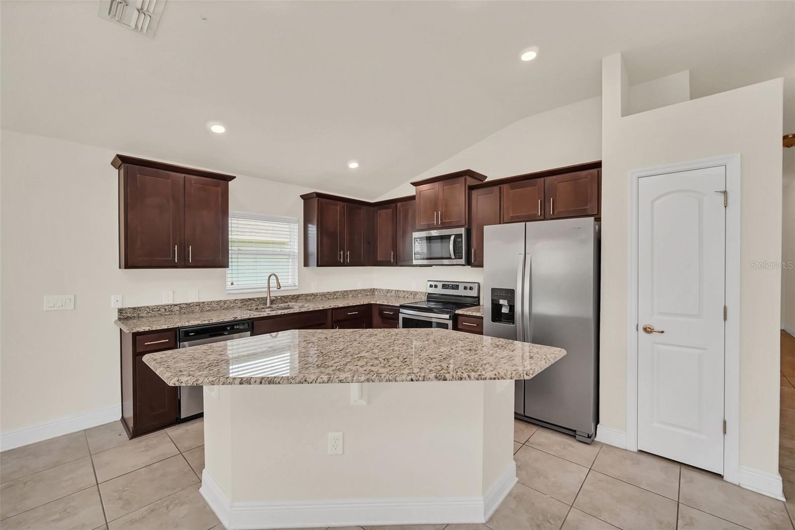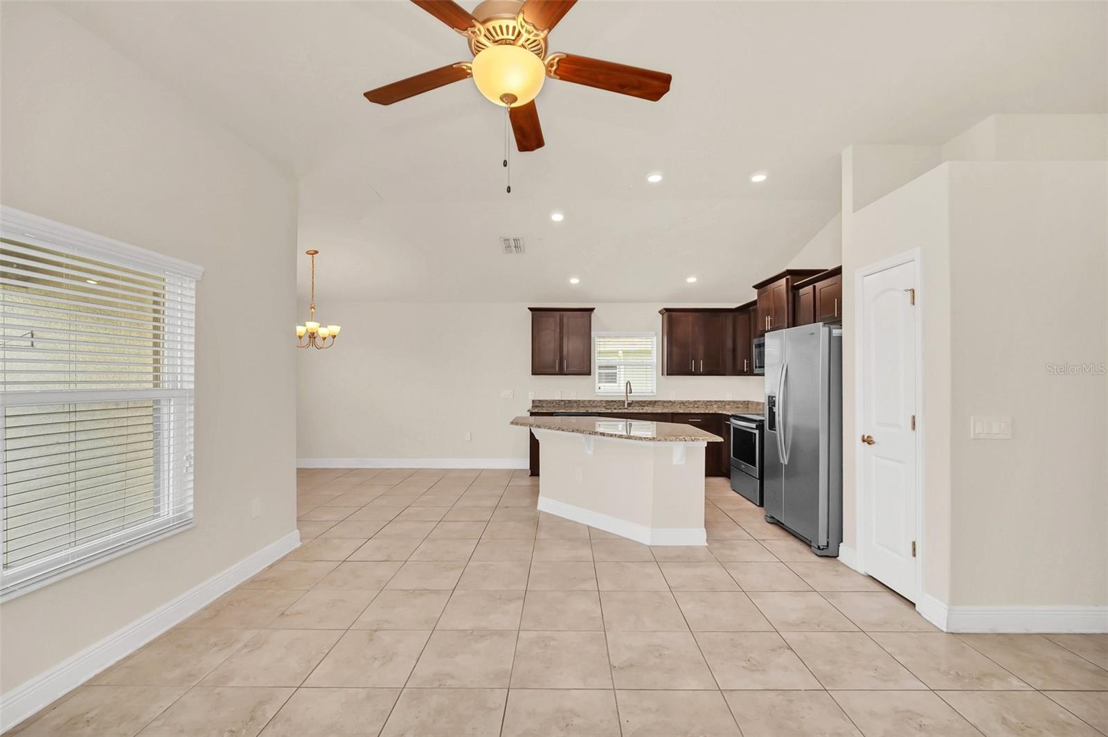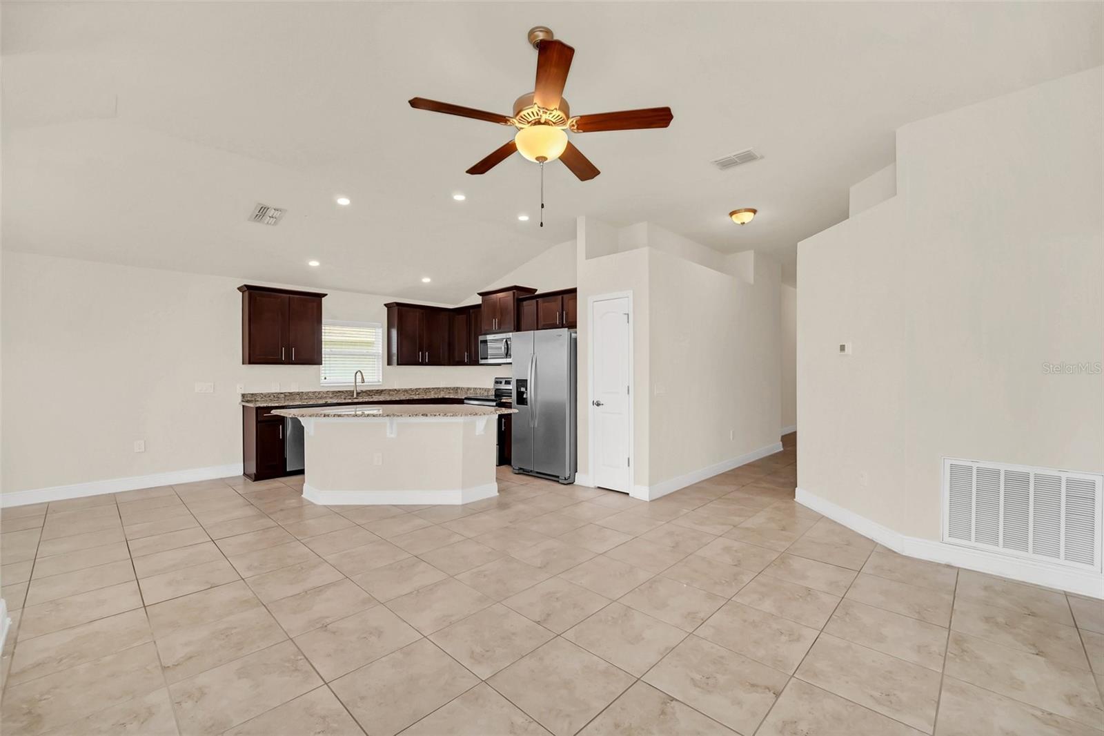 Come view this 3 bed 2 bath home located in the Adams Homes Community of North Ridge Estates in Davenport very close to 27 and I-4. This home features an upgraded kitchen with premium wood cabinets, stainless steel appliances and granite countertops. These upgrades include 5 1/4" baseboards, 36" Kitchen Cabinets with crown-molding and custom bump, brushed nickel cabinets knobs in the kitchen and all bathrooms, Craftsman style interior and closet doors with brushed nickel lever handles. The large owner's suite includes a large bathroom with a separate toilet room. The huge finished garage can house two large vehicles. New upgraded flooring throughout the home as well! This home is excellent for investors and for those who want to use as their personal home.