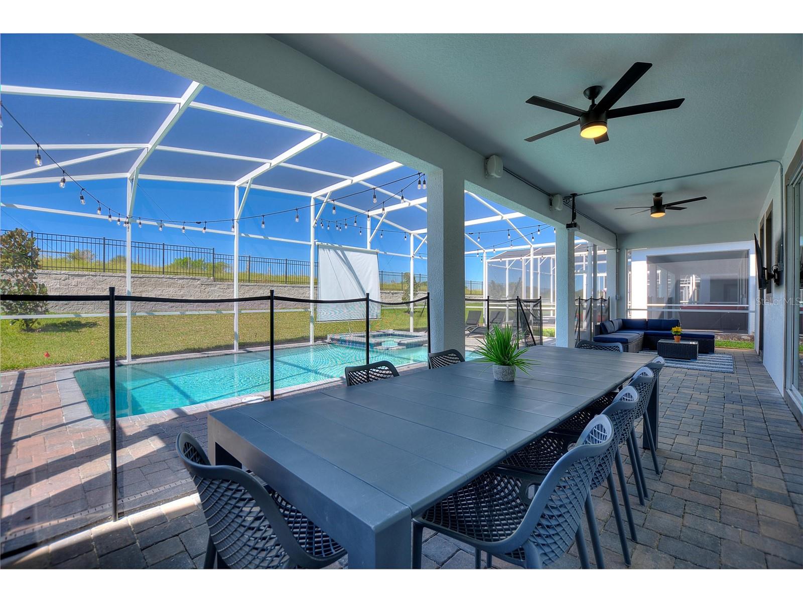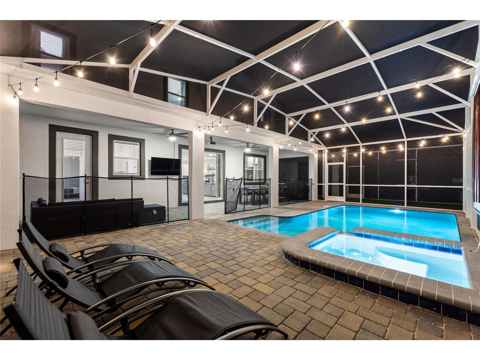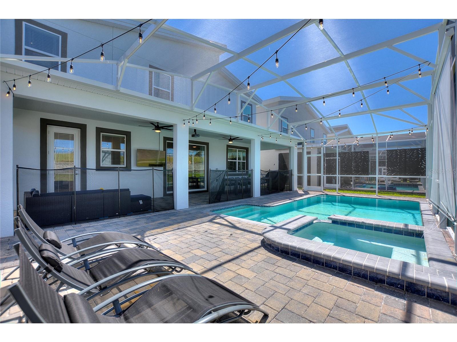 Don't miss this amazing opportunity to be proud owners of this beautiful 4000+ sqft home with no back neighbors, FULLY furnished short-term friendly home. This home includes a beautiful POOL + SPA full screened for the best experience for your guests. This home is 1 of the most profitable homes with amazing property management company with bookings till April 2025 confirmed. Gross revenue exceeds over 100k/year. You will not find a GEM like this where you can be cash flow positive all year round and be able to enjoy it during the slow seasons as your own home away home. 5 star Airbnb/VRBO ratings and a water park steps away for guests to enjoy. Accommodates up to 20 guests comfortably. Gated 24/7 community with access to the resort all year round where you can golf, play tennis, work-out or just enjoy some water slides.