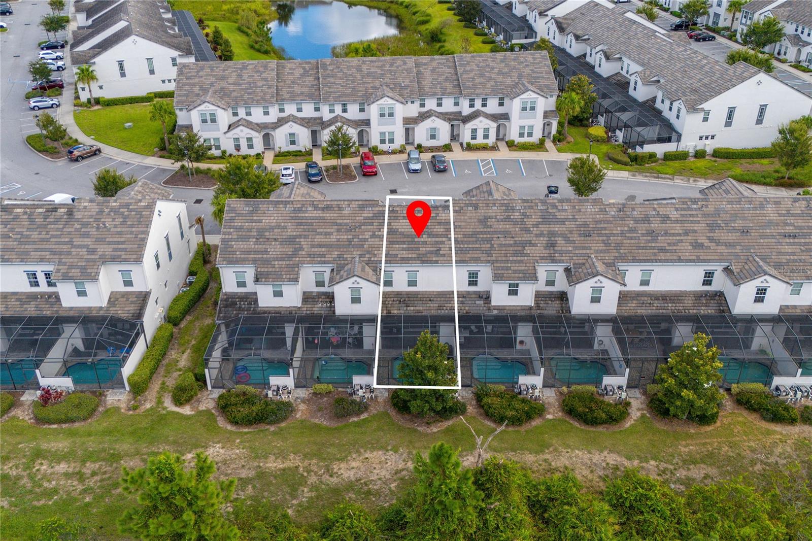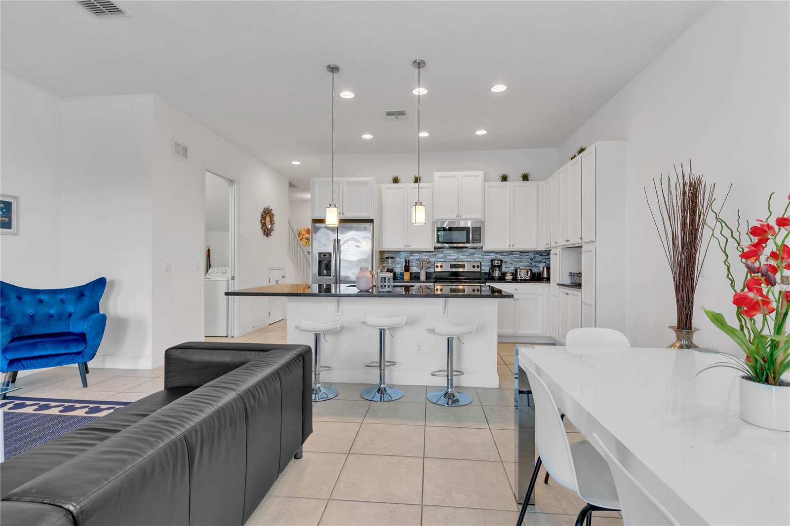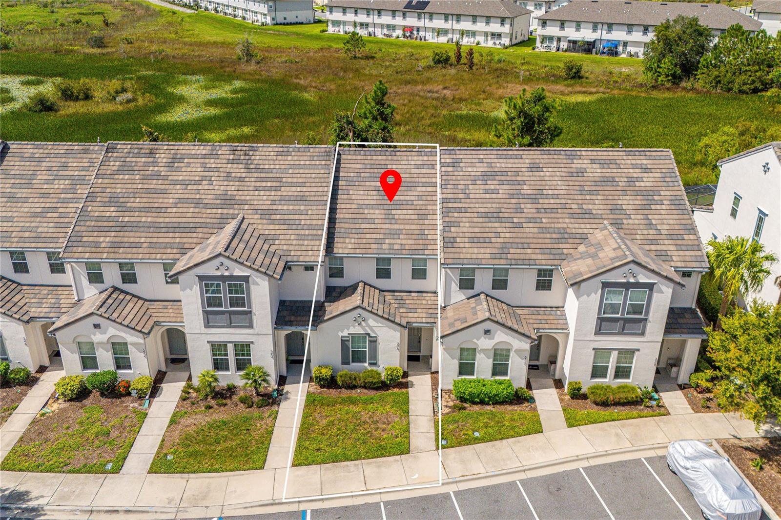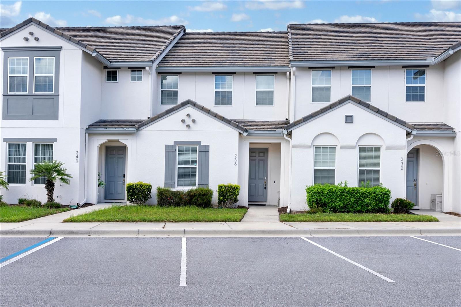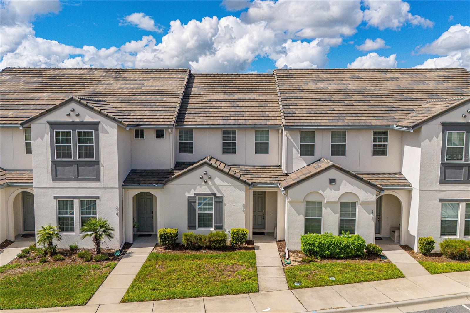 FULLY FURNISHED! Beautiful townhouse FOR SALE. 3 bedrooms, 2.5 bathrooms. The house's design and furniture reflect a modern and contemporary style. Located at Festival Bay Resort, 10 minutes from Disney World, 16 minutes from SeaWorld, 22 minutes from Universal Studios, close to top restaurants, convenience stores and pharmacy. Perfect location for visiting Orlando and Central Florida. Stunning gourmet kitchen, modern décor with stainless steel appliances, granite countertops, huge island, 42" cabinets with custom moldings and backsplash. Laundry room conveniently located on the ground floor. The common living area features an open living and dining space. The living room has a 55" TV for family entertainment and relaxation on comfortable furniture. Dining room furniture for up to 6. The space is bright and airy thanks to a wall of sliding doors that bathe the area in light and provide direct access to the covered patio, perfect for outdoor dining and enjoying Florida's tropical climate, heated pool (with jacuzzi), privacy walls on both sides of the patio, convenient storage closet, and a beautiful conservation view in the back. Upstairs, you have a flex room with a sofa bed amidst two other fully furnished rooms for your guests, with a beautiful bathroom featuring double sinks and granite countertops. The master suite is on the ground floor and includes a king-size bed and private bathroom with a shower. This private bathroom includes a sliding door that divides the washroom, providing convenient access to the bathroom for all those enjoying the amenities on the ground floor. HOA fees include internet, cable, garbage, pest control, water, exterior/ground maintenance. Amenities: fitness center, poolside restaurant, resort-style pool, water park for the younger ones, game room, and more! You will be thoroughly impressed with everything this property offers. This home is a great investment opportunity. It can be rented for both SHORT and LONG TERM ensuring profitability for the investor. Come and see everything this special home has!