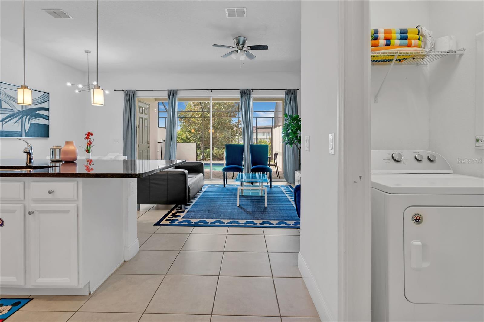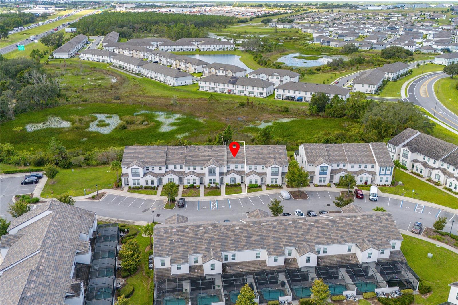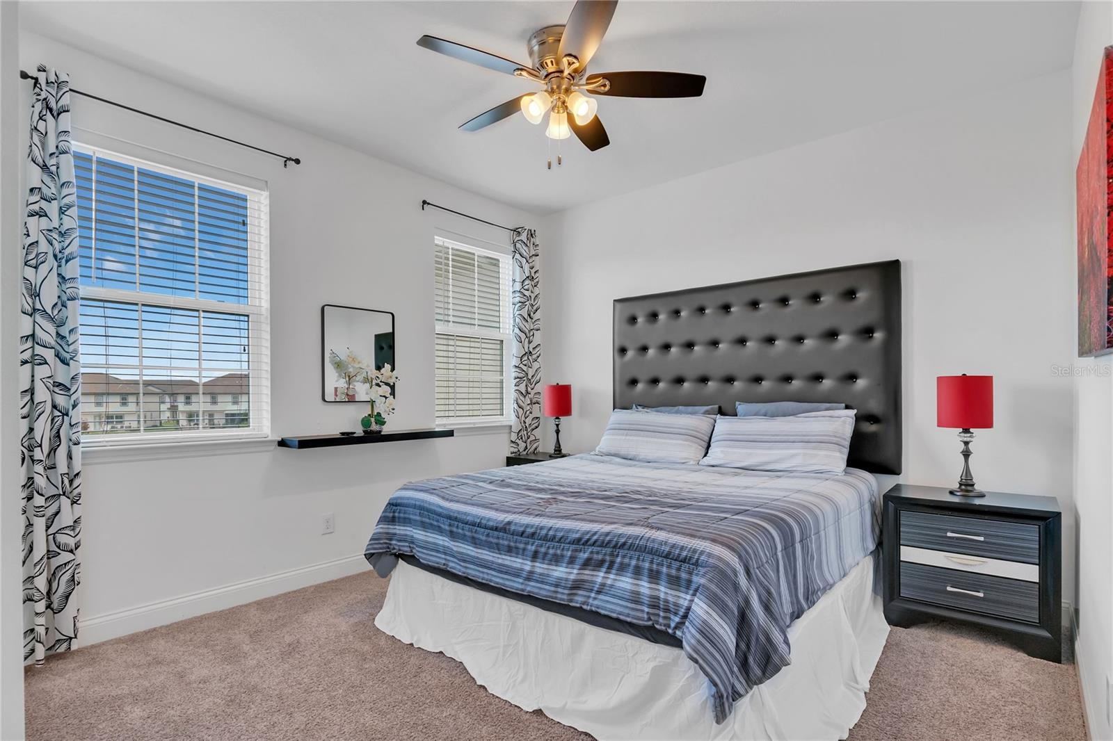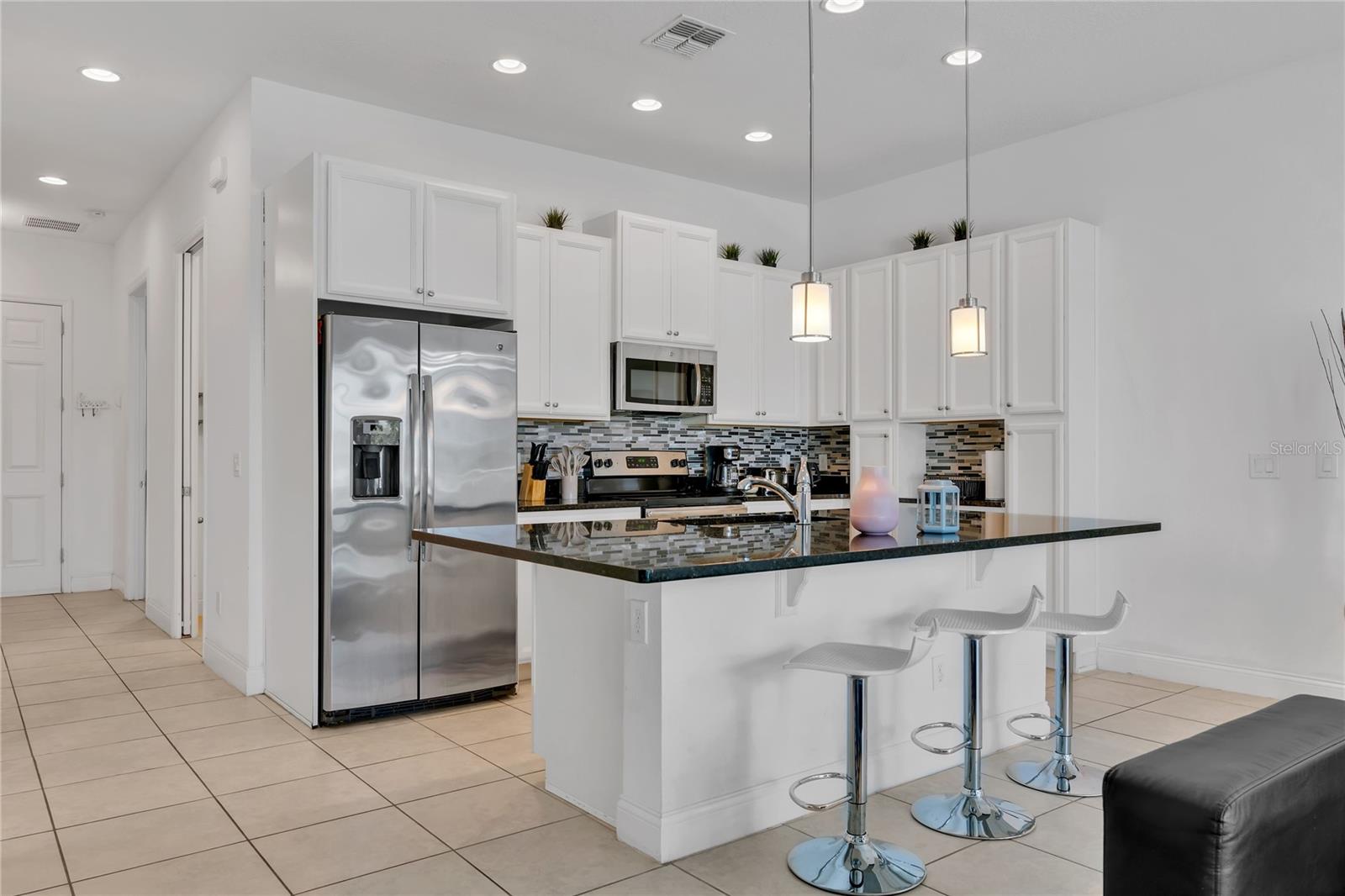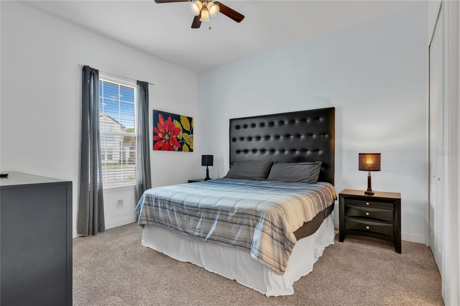 FULLY FURNISHED! Beautiful townhouse FOR SALE. 3 bedrooms, 2.5 bathrooms. The house's design and furniture reflect a modern and contemporary style. Located at Festival Bay Resort, 10 minutes from Disney World, 16 minutes from SeaWorld, 22 minutes from Universal Studios, close to top restaurants, convenience stores and pharmacy. Perfect location for visiting Orlando and Central Florida. Stunning gourmet kitchen, modern décor with stainless steel appliances, granite countertops, huge island, 42" cabinets with custom moldings and backsplash. Laundry room conveniently located on the ground floor. The common living area features an open living and dining space. The living room has a 55" TV for family entertainment and relaxation on comfortable furniture. Dining room furniture for up to 6. The space is bright and airy thanks to a wall of sliding doors that bathe the area in light and provide direct access to the covered patio, perfect for outdoor dining and enjoying Florida's tropical climate, heated pool (with jacuzzi), privacy walls on both sides of the patio, convenient storage closet, and a beautiful conservation view in the back. Upstairs, you have a flex room with a sofa bed amidst two other fully furnished rooms for your guests, with a beautiful bathroom featuring double sinks and granite countertops. The master suite is on the ground floor and includes a king-size bed and private bathroom with a shower. This private bathroom includes a sliding door that divides the washroom, providing convenient access to the bathroom for all those enjoying the amenities on the ground floor. HOA fees include internet, cable, garbage, pest control, water, exterior/ground maintenance. Amenities: fitness center, poolside restaurant, resort-style pool, water park for the younger ones, game room, and more! You will be thoroughly impressed with everything this property offers. This home is a great investment opportunity. It can be rented for both SHORT and LONG TERM ensuring profitability for the investor. Come and see everything this special home has!