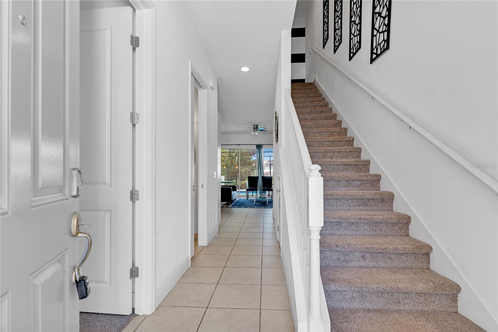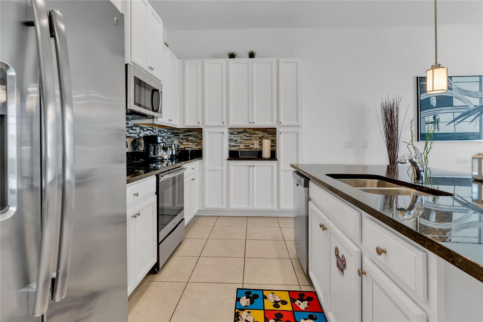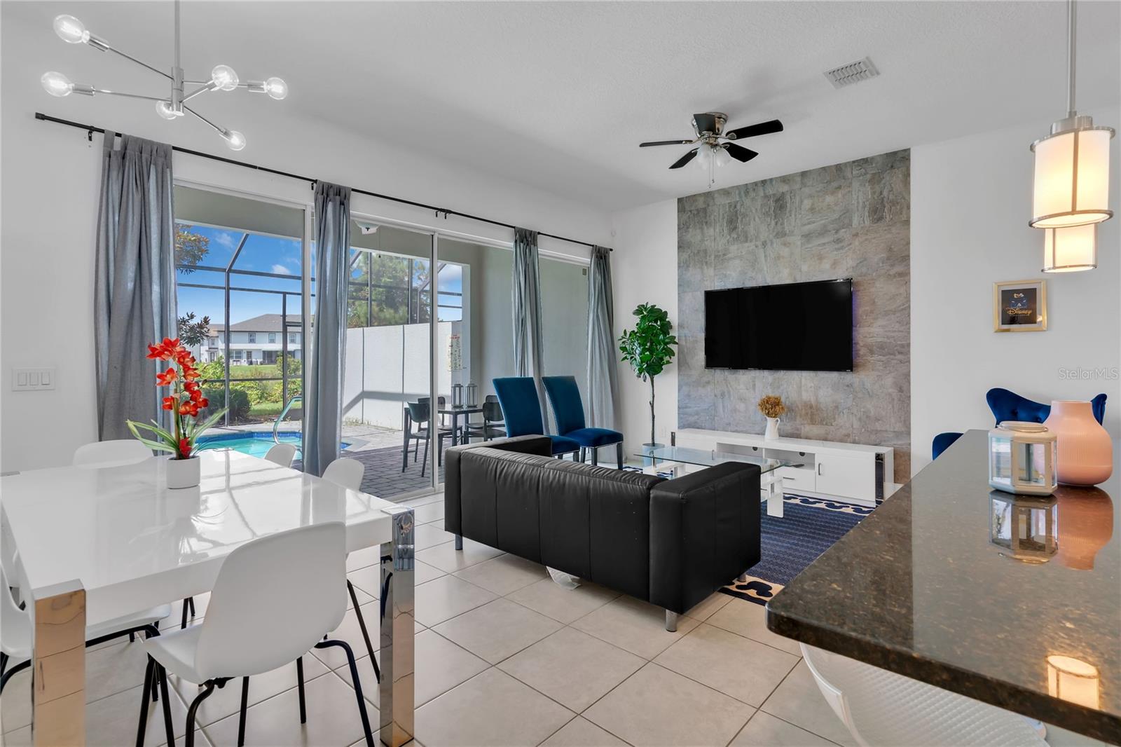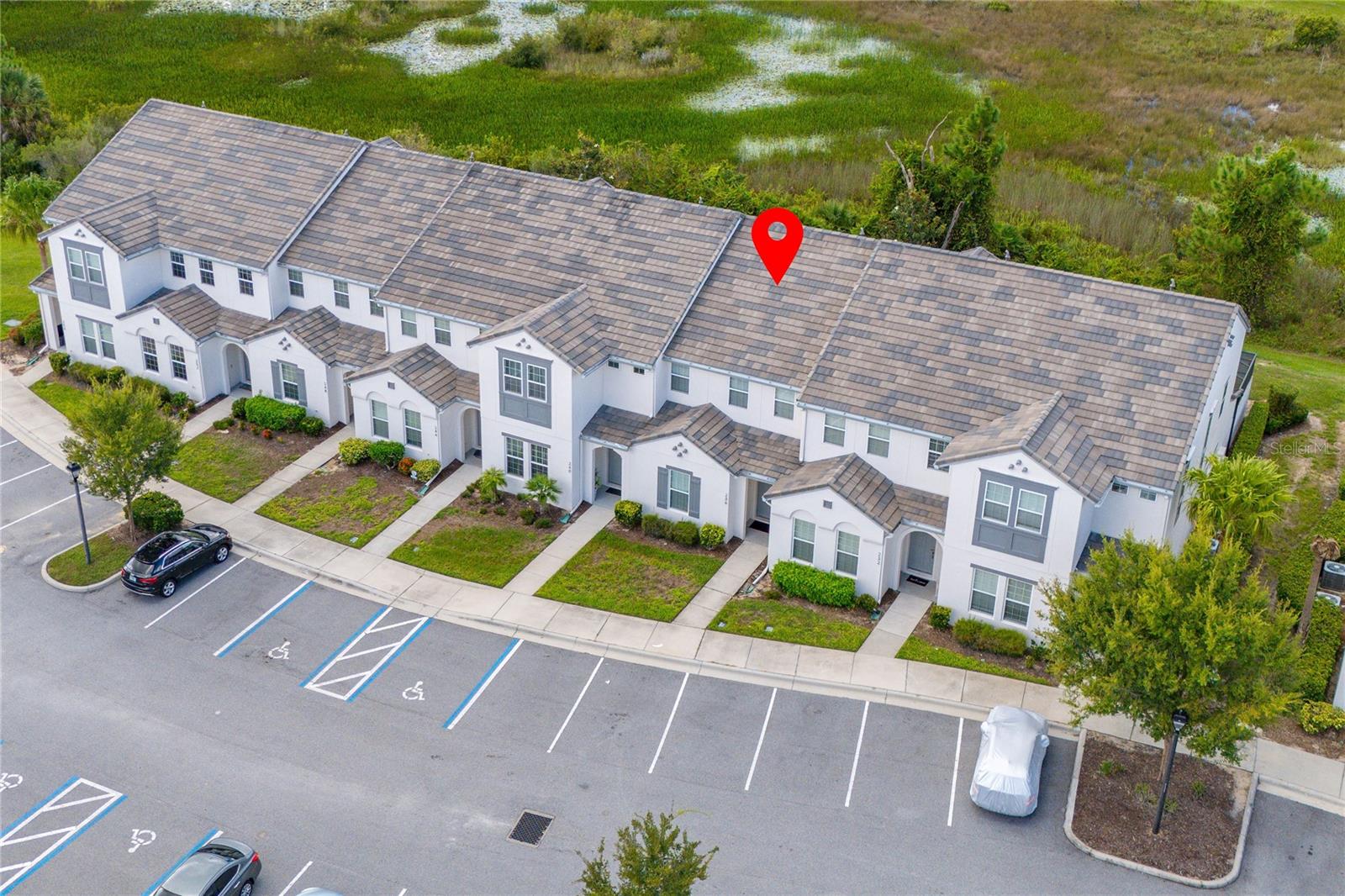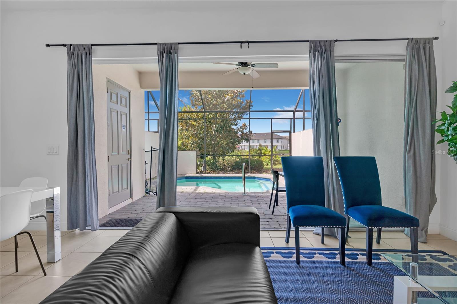 FULLY FURNISHED! Beautiful townhouse FOR SALE. 3 bedrooms, 2.5 bathrooms. The house's design and furniture reflect a modern and contemporary style. Located at Festival Bay Resort, 10 minutes from Disney World, 16 minutes from SeaWorld, 22 minutes from Universal Studios, close to top restaurants, convenience stores and pharmacy. Perfect location for visiting Orlando and Central Florida. Stunning gourmet kitchen, modern décor with stainless steel appliances, granite countertops, huge island, 42" cabinets with custom moldings and backsplash. Laundry room conveniently located on the ground floor. The common living area features an open living and dining space. The living room has a 55" TV for family entertainment and relaxation on comfortable furniture. Dining room furniture for up to 6. The space is bright and airy thanks to a wall of sliding doors that bathe the area in light and provide direct access to the covered patio, perfect for outdoor dining and enjoying Florida's tropical climate, heated pool (with jacuzzi), privacy walls on both sides of the patio, convenient storage closet, and a beautiful conservation view in the back. Upstairs, you have a flex room with a sofa bed amidst two other fully furnished rooms for your guests, with a beautiful bathroom featuring double sinks and granite countertops. The master suite is on the ground floor and includes a king-size bed and private bathroom with a shower. This private bathroom includes a sliding door that divides the washroom, providing convenient access to the bathroom for all those enjoying the amenities on the ground floor. HOA fees include internet, cable, garbage, pest control, water, exterior/ground maintenance. Amenities: fitness center, poolside restaurant, resort-style pool, water park for the younger ones, game room, and more! You will be thoroughly impressed with everything this property offers. This home is a great investment opportunity. It can be rented for both SHORT and LONG TERM ensuring profitability for the investor. Come and see everything this special home has!