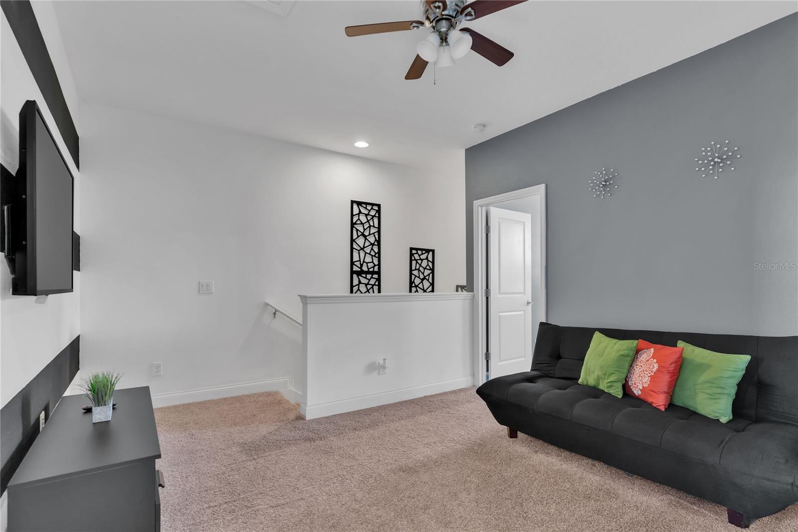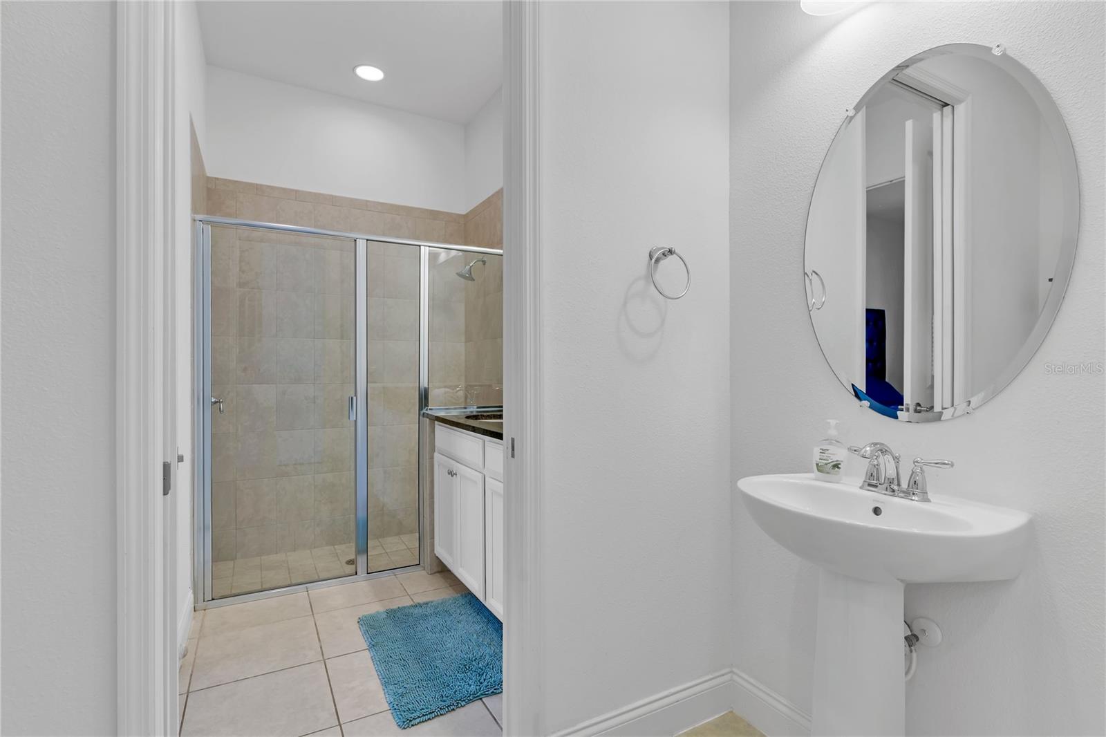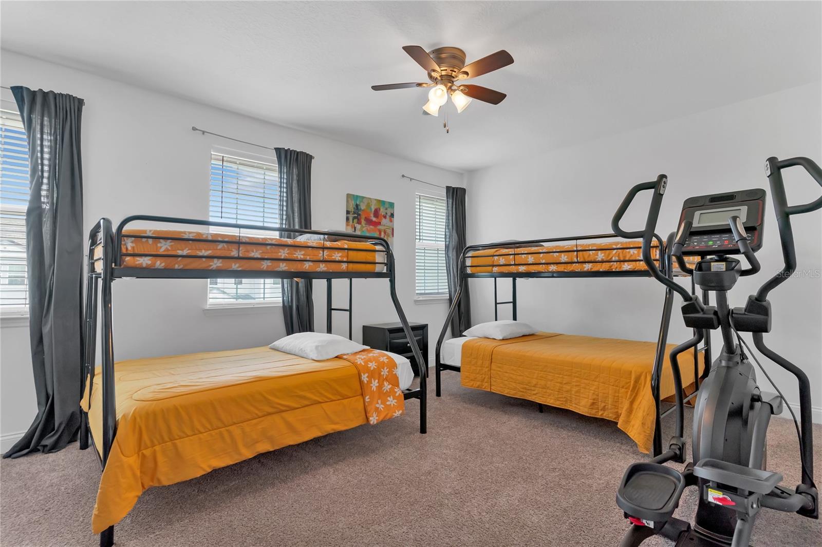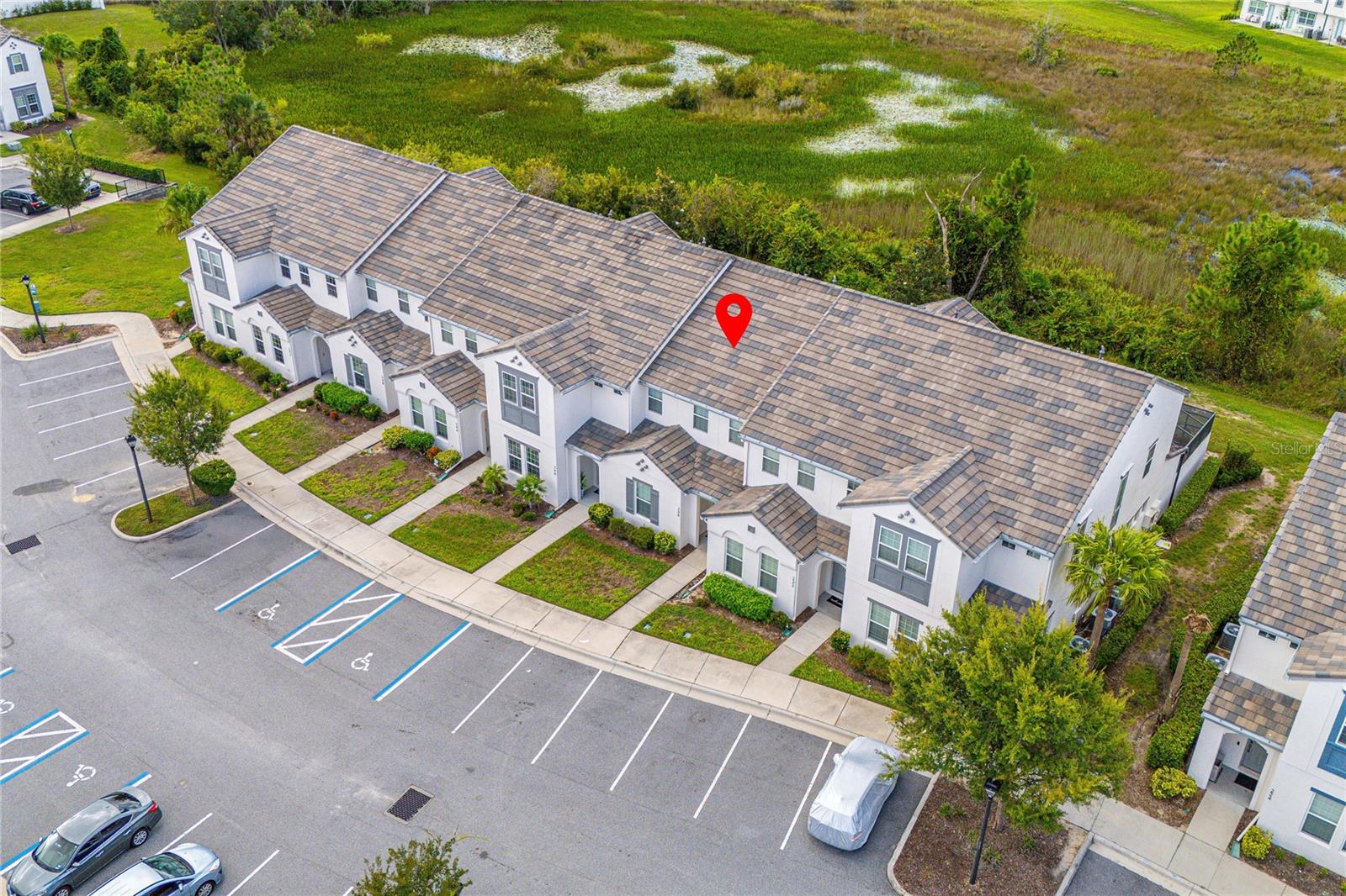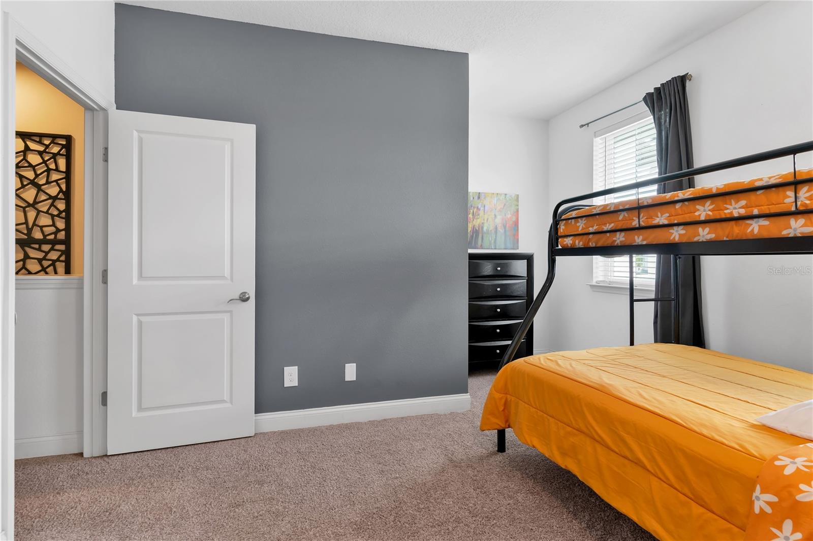 FULLY FURNISHED! Beautiful townhouse FOR SALE. 3 bedrooms, 2.5 bathrooms. The house's design and furniture reflect a modern and contemporary style. Located at Festival Bay Resort, 10 minutes from Disney World, 16 minutes from SeaWorld, 22 minutes from Universal Studios, close to top restaurants, convenience stores and pharmacy. Perfect location for visiting Orlando and Central Florida. Stunning gourmet kitchen, modern décor with stainless steel appliances, granite countertops, huge island, 42" cabinets with custom moldings and backsplash. Laundry room conveniently located on the ground floor. The common living area features an open living and dining space. The living room has a 55" TV for family entertainment and relaxation on comfortable furniture. Dining room furniture for up to 6. The space is bright and airy thanks to a wall of sliding doors that bathe the area in light and provide direct access to the covered patio, perfect for outdoor dining and enjoying Florida's tropical climate, heated pool (with jacuzzi), privacy walls on both sides of the patio, convenient storage closet, and a beautiful conservation view in the back. Upstairs, you have a flex room with a sofa bed amidst two other fully furnished rooms for your guests, with a beautiful bathroom featuring double sinks and granite countertops. The master suite is on the ground floor and includes a king-size bed and private bathroom with a shower. This private bathroom includes a sliding door that divides the washroom, providing convenient access to the bathroom for all those enjoying the amenities on the ground floor. HOA fees include internet, cable, garbage, pest control, water, exterior/ground maintenance. Amenities: fitness center, poolside restaurant, resort-style pool, water park for the younger ones, game room, and more! You will be thoroughly impressed with everything this property offers. This home is a great investment opportunity. It can be rented for both SHORT and LONG TERM ensuring profitability for the investor. Come and see everything this special home has!