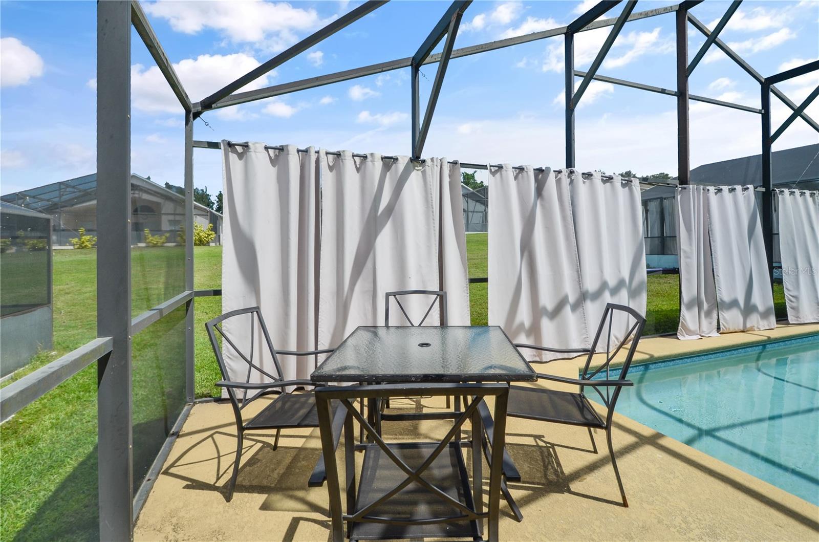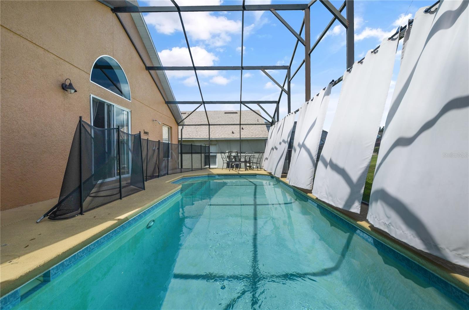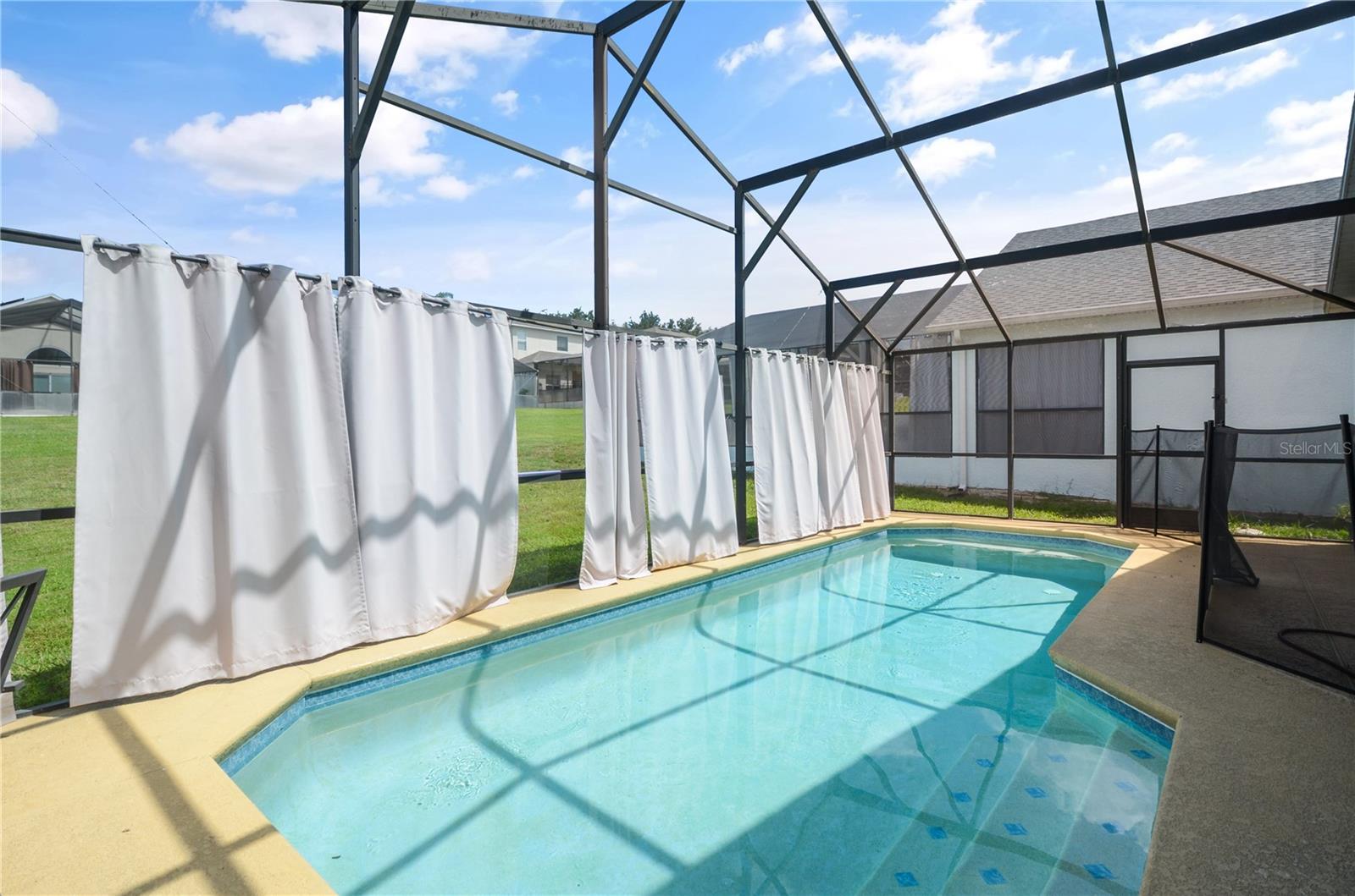 PRICE DROP! Your new home with a BRAND NEW ROOF (installed 5/20/25)! This well maintained 3 bedroom 2 bathroom FULLY FURNISHED POOL home is move in ready. RECENTLY REPLACED HVAC UNIT, POOL PUMP AND POOL HEATER. Perfect as a primary residence, vacation home or investment property. With consistent bookings in place throughout the year this home is a true turnkey property with immediate cash flow. As soon as you enter you are welcomed by the warm, inviting open floorpan with a view of the pool and spacious backyard. This home offers a desirable split bedroom floor plan with high ceilings and ceramic tile throughout the living areas. You will find a spacious Master Bedroom and a Master Bathroom that features dual sinks, a glass enclosed stand up shower, and a garden soaking tub. The awesome and sought after community of Legacy Parc offers multiple amenities, including lawn care, tennis courts, and a playground. This gated community is in close proximity of multiple great shopping and dining options. Orlando's theme parks are just a short distance away as well as some of the finest beaches in Florida. Priced to sell, DON'T MISS OUT! Call today! (Room sizes are approximate)