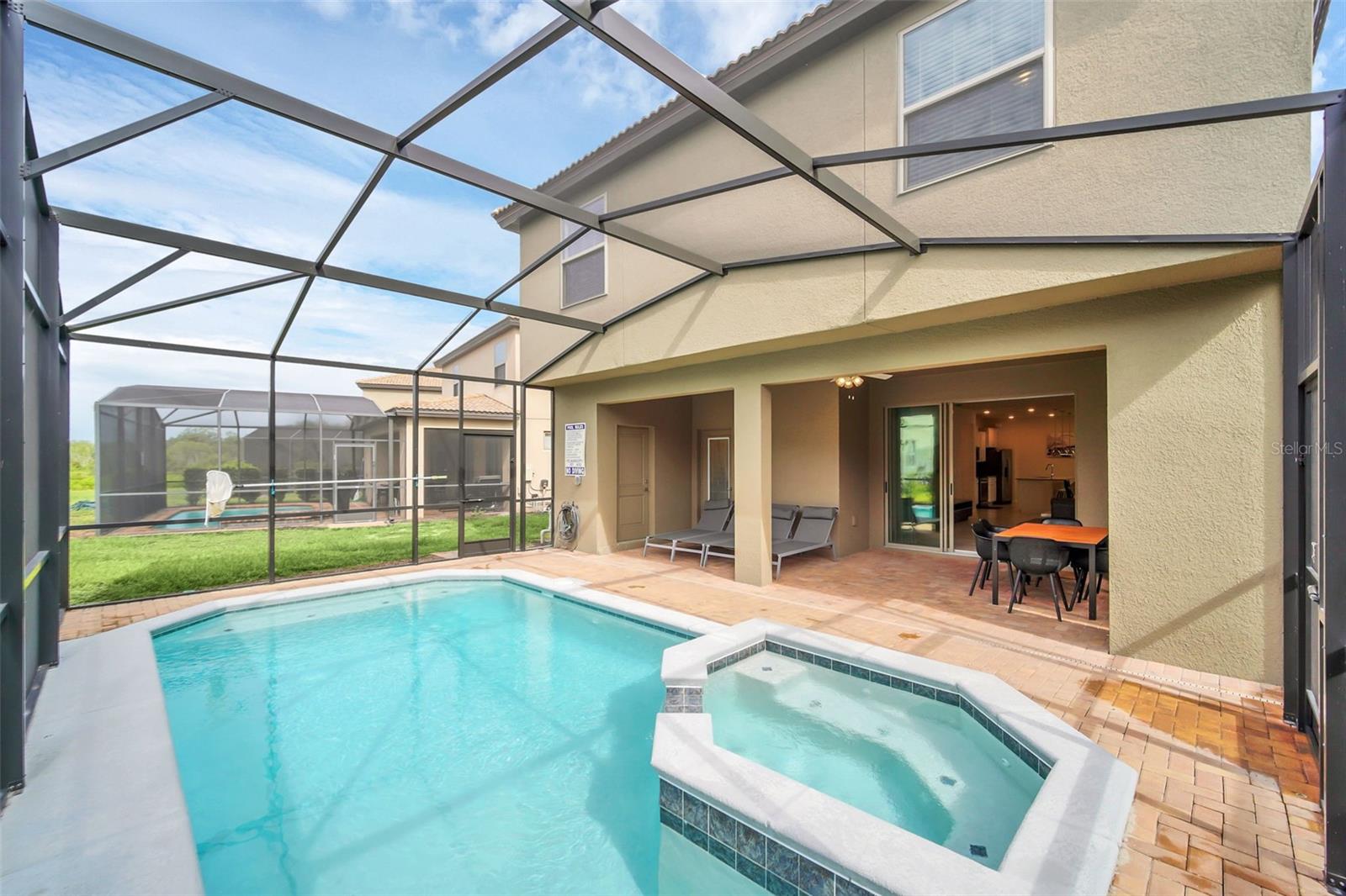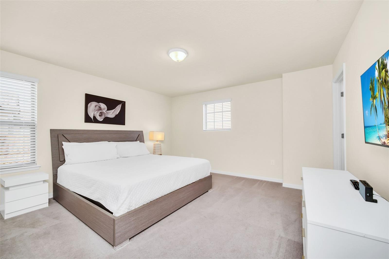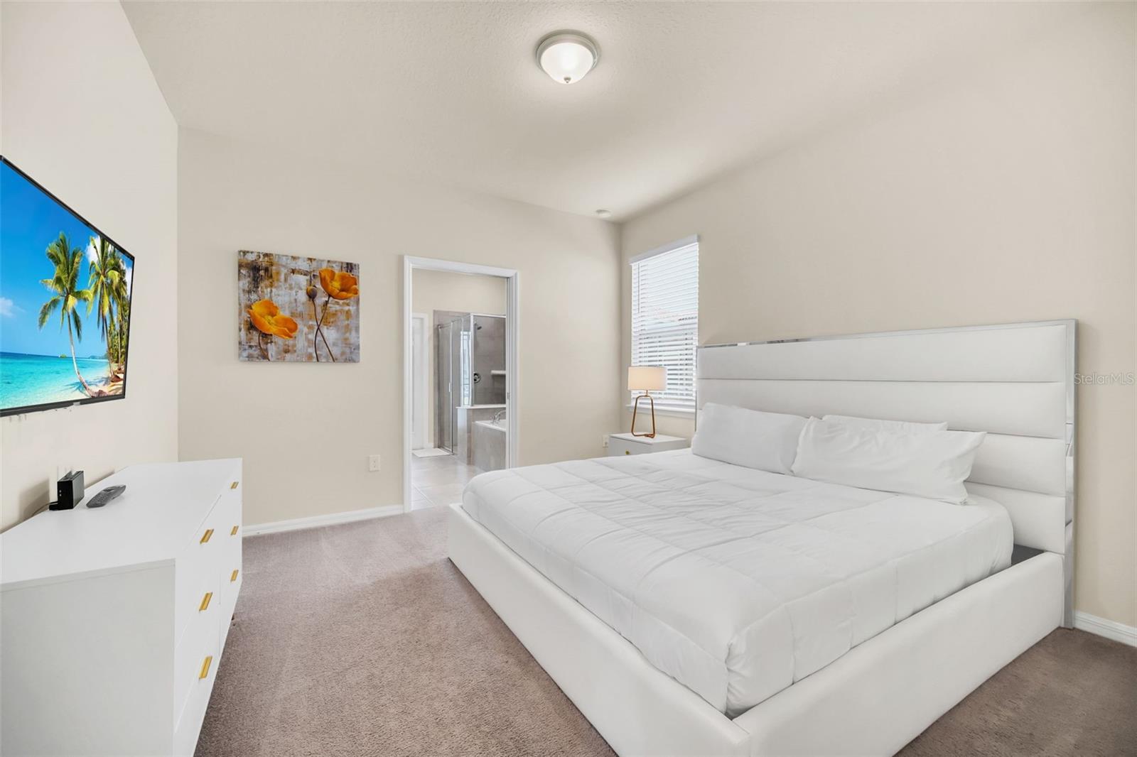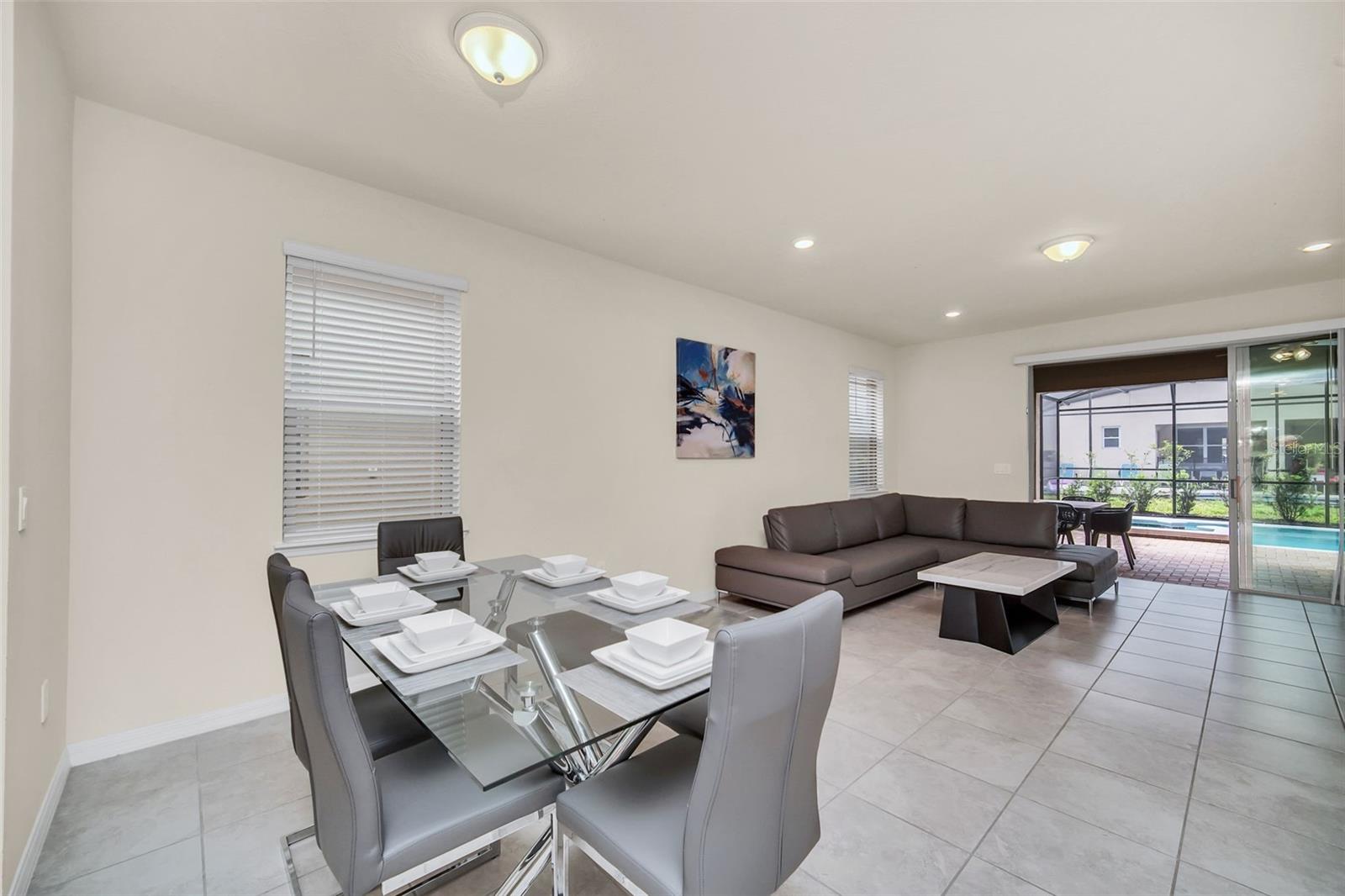 Welcome to 5473 Misty Oak Cir an exquisite retreat nestled in the prestigious Solterra Resort community. This magnificent 6-bedroom, 4.5-bathroom home with over 3,100 SqFt offers an unparalleled blend of luxury and comfort, making it an ideal investment opportunity or personal sanctuary. From the moment you arrive, you'll be captivated by the grand entrance and meticulously landscaped grounds that set the stage for the elegance within. Step inside this practically brand new, fully furnished, turnkey property, and be greeted by a spacious open-concept layout adorned with modern finishes and high-end touches. The expansive living area, with its tasteful decor and abundant natural light, flows seamlessly into the gourmet kitchen, a chef's delight featuring top-of-the-line stainless steel appliances, gleaming granite countertops, and a large center island perfect for both cooking and gathering. The living space extends outdoors through stackable sliding doors, leading to a stunning screened lanai with a private pool and spa, offering the perfect setting for relaxation and entertainment. Each bedroom in this home is thoughtfully designed to provide a restful haven, with plush carpeting and ample storage. The first-floor owner's suite boasts a king-sized bed, a luxurious en-suite bathroom, and direct access to the outdoor patio. Upstairs, a second master suite offers a private retreat with a spa-like bathroom, complete with a standing shower and double-sink vanity. An additional four spacious bedrooms, each uniquely designed and thoughtfully furnished, provide comfort and style throughout the home. Beyond the beauty of the home itself, the Solterra Resort community offers a wealth of amenities that enhance the lifestyle experience. Residents and guests can enjoy a resort-style pool with a lazy river, a state-of-the-art fitness center, a playground, and a clubhouse with a poolside restaurant and bar. This property is ideally located near Central Florida's world-renowned attractions, shopping, dining, and entertainment options, making it a perfect vacation destination. This property not only promises a luxurious living experience but also offers significant rental income potential. Don't miss the chance to own a slice of paradise at 5473 Misty Oak Cir. Schedule your showing today and start living the dream!