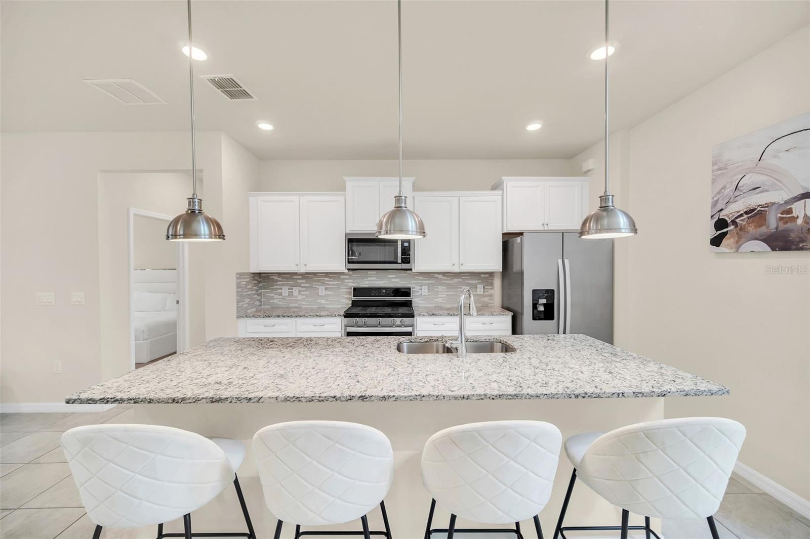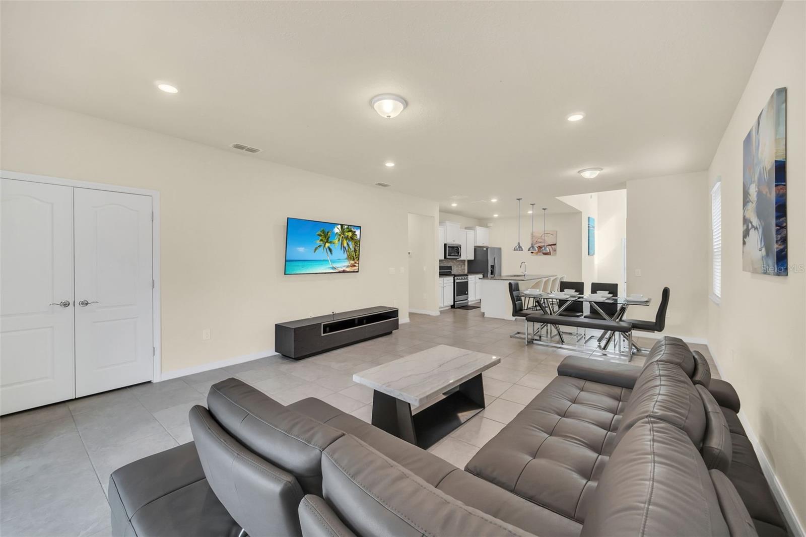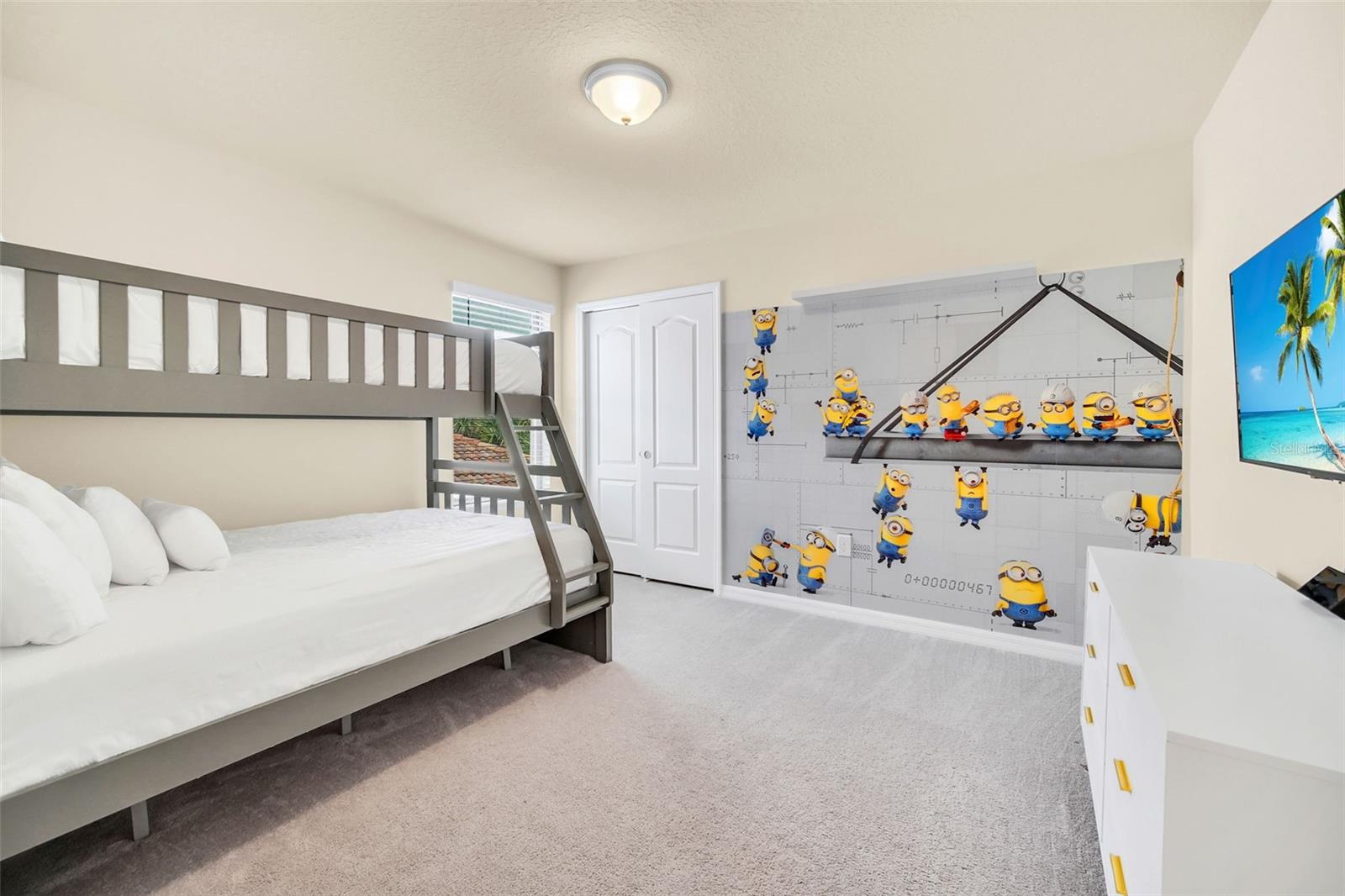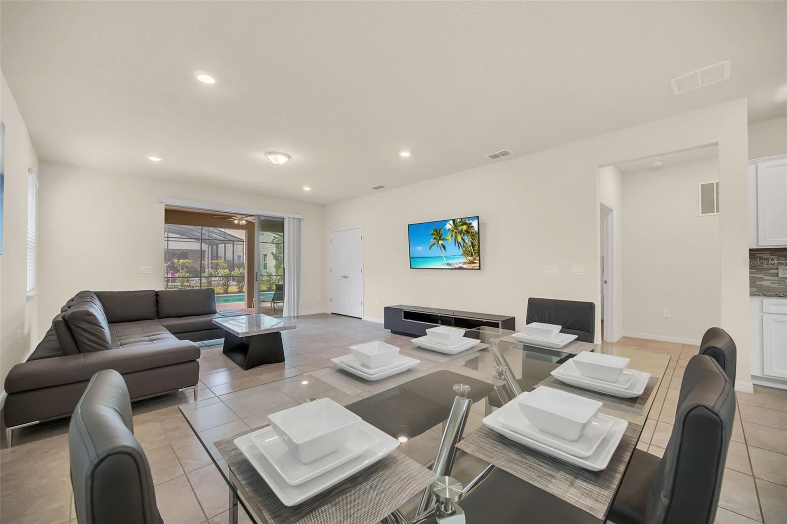 Welcome to 5473 Misty Oak Cir an exquisite retreat nestled in the prestigious Solterra Resort community. This magnificent 6-bedroom, 4.5-bathroom home with over 3,100 SqFt offers an unparalleled blend of luxury and comfort, making it an ideal investment opportunity or personal sanctuary. From the moment you arrive, you'll be captivated by the grand entrance and meticulously landscaped grounds that set the stage for the elegance within. Step inside this practically brand new, fully furnished, turnkey property, and be greeted by a spacious open-concept layout adorned with modern finishes and high-end touches. The expansive living area, with its tasteful decor and abundant natural light, flows seamlessly into the gourmet kitchen, a chef's delight featuring top-of-the-line stainless steel appliances, gleaming granite countertops, and a large center island perfect for both cooking and gathering. The living space extends outdoors through stackable sliding doors, leading to a stunning screened lanai with a private pool and spa, offering the perfect setting for relaxation and entertainment. Each bedroom in this home is thoughtfully designed to provide a restful haven, with plush carpeting and ample storage. The first-floor owner's suite boasts a king-sized bed, a luxurious en-suite bathroom, and direct access to the outdoor patio. Upstairs, a second master suite offers a private retreat with a spa-like bathroom, complete with a standing shower and double-sink vanity. An additional four spacious bedrooms, each uniquely designed and thoughtfully furnished, provide comfort and style throughout the home. Beyond the beauty of the home itself, the Solterra Resort community offers a wealth of amenities that enhance the lifestyle experience. Residents and guests can enjoy a resort-style pool with a lazy river, a state-of-the-art fitness center, a playground, and a clubhouse with a poolside restaurant and bar. This property is ideally located near Central Florida's world-renowned attractions, shopping, dining, and entertainment options, making it a perfect vacation destination. This property not only promises a luxurious living experience but also offers significant rental income potential. Don't miss the chance to own a slice of paradise at 5473 Misty Oak Cir. Schedule your showing today and start living the dream!