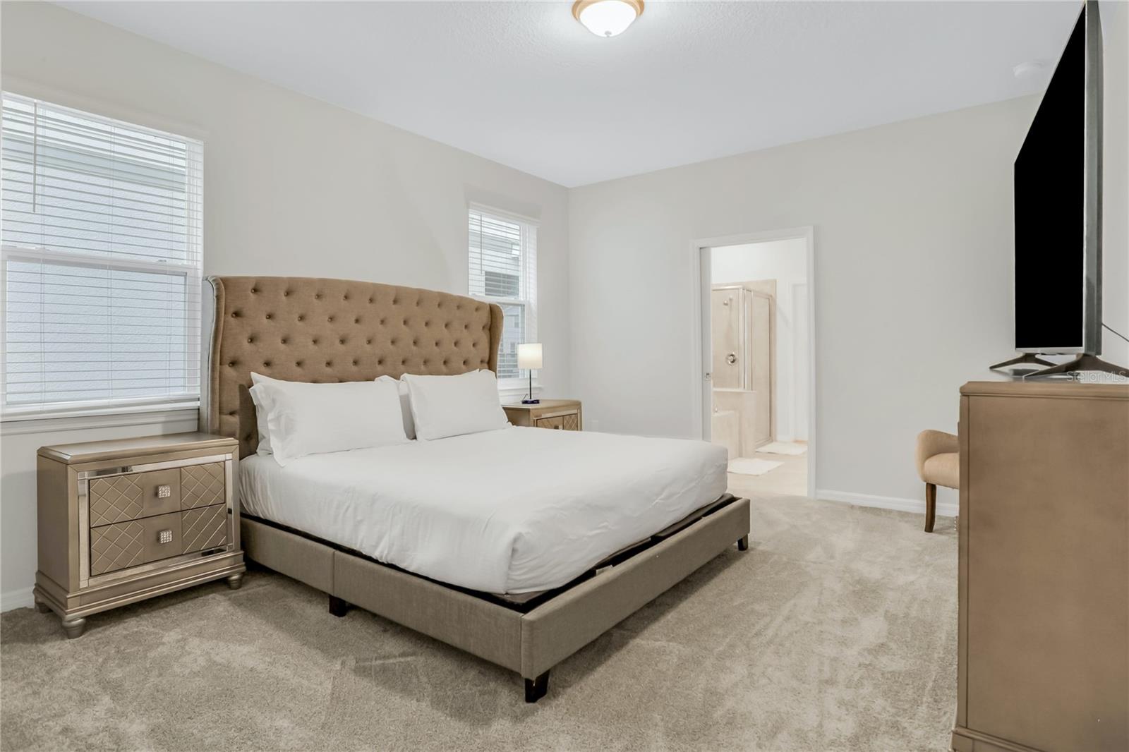 Seller motivated, Price improvement!!! Don't miss this opportunity. The best investment generating $40,000 a year of net income, 70% occupancy rate and the best location, all of this for less price better than new construction. Discover the ultimate opportunity in Windsor Island Resort with this freshly delivered, fully furnished, enchanting pool and spa home. Boasting this luxurious property offers a grand 2-story foyer, a well-appointed kitchen, and an expansive gathering room. Enjoy the outdoor space with a private pool, jacuzzi, and a luxurious covered lanai. The first floor features the primary suite and an additional guest suite, while upstairs includes 3 private suites, 2 sets of Jack-n-Jill suites. Meticulously crafted in 2023, this stunning home is located in a secure, gated resort community with amenities like a clubhouse, fitness center, lazy river, waterslides, and various sports courts. The Homeowners Association covers lawn maintenance, internet, cable, and daily valet trash service. Just minutes away from shopping, dining, and world-renowned attractions, this property is perfectly positioned for both relaxation and adventure. Whether you choose to make it your second home or a vacation rental investment or both, you will love this as-new luxury property close to Disney Parks, golf courses, and family-friendly activities. The resort amenities include a tavern/grill, tiki bar, fitness room, lazy river, mini-golf course, resort pool, hot tub, splash zone, and fire pit. Schedule your showing appointment now and turn this home into your dream-come-true!