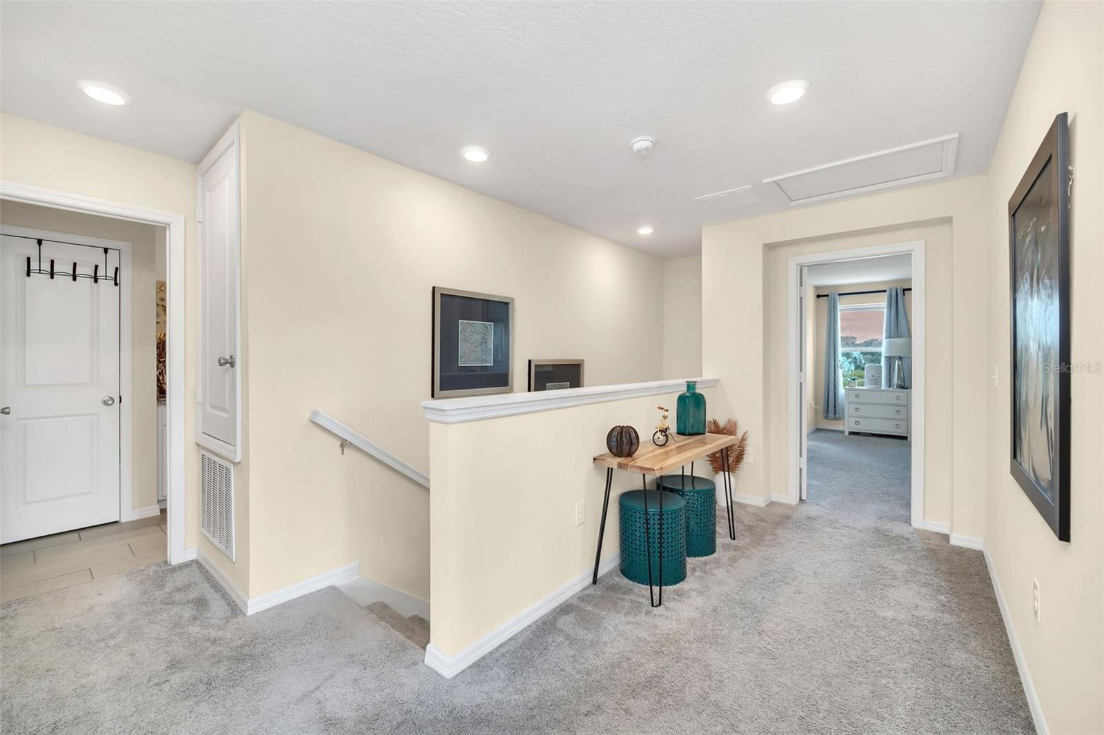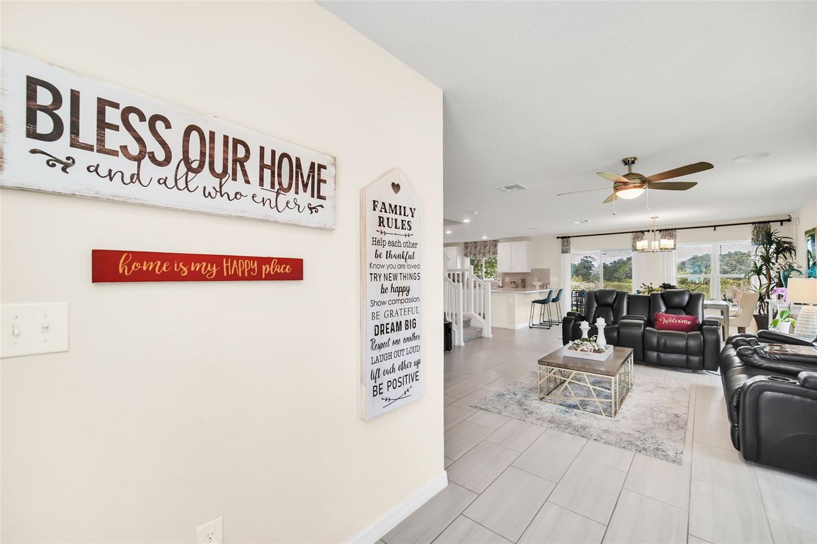 This beautiful 4-bedroom, 2.5-bath home with a loft is now available in the Preservation Pointe community! Built in 2019 and situated on a premium lot with no rear neighbors, you'll enjoy peaceful conservation area views from your covered lanai. The home boasts over 2,207 square feet of living space, perfectly green landscaping, and a low HOA of just $30 monthly. The first floor features modern recessed lighting and stunning tile flooring. The bright and spacious kitchen comes with extra cabinets and all the modern touches you need. Inside, you'll find a built-in Sonos music system, smart electrical outlets, and a security system. There's also a convenient interior laundry room and a large walk-in pantry leading to the two-car garage. The second-floor loft provides additional space and includes extra closets. All the bedrooms are generously sized and feature walk-in closets. The large master bedroom includes a sitting area and an en-suite bathroom with a huge walk-in closet. The other bathrooms are also spacious, with the second bathroom offering a shower, tub, and double sinks. Located in the growing city of Davenport, this home is across from Davenport High School and the award-winning Davenport School of Arts. It's also centrally located to Champions Gate, Margaritaville, Reunion, and plenty of new restaurants and entertainment options. This home is move-in ready and waiting for you to make it yours. Contact us today for a private showing!