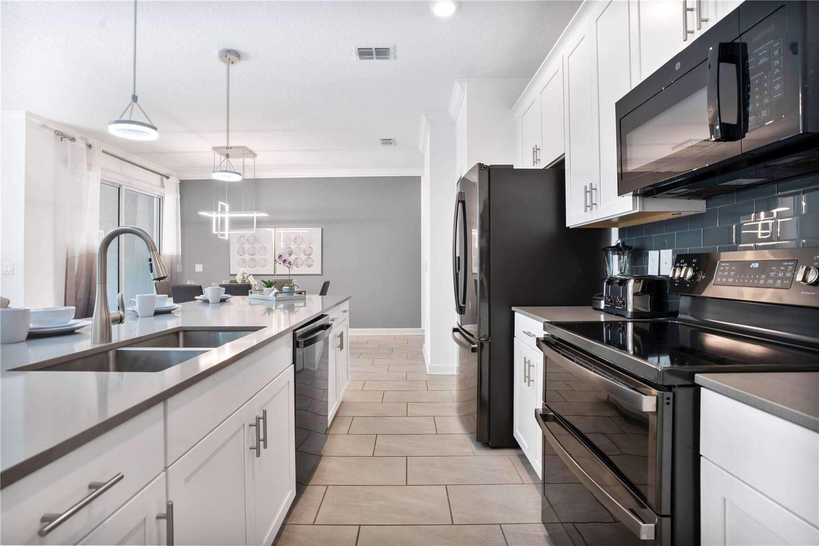 Discover the epitome of luxury living in this fully furnished 4-bedroom, 3-bathroom townhouse, featuring a private heated pool and a cozy porch, located in the coveted Stoneybrook at Champions Gate community. This prime vacation retreat is just minutes away from Orlando's world-famous theme parks. Upon entering, you're welcomed by an expansive open floor plan, highlighted by a spacious, upgraded kitchen with stainless steel appliances, premium cabinetry, and a large island perfect for family gatherings. The ground floor also features a comfortable living and dining area, ideal for entertaining. HOA fees encompass essential services including high-speed internet, HD basic cable, trash removal, exterior maintenance, roof care, and pest control, ensuring a hassle-free lifestyle. Indulge in a plethora of amenities within the community, such as a resort-style pool, tennis and basketball courts, a fully-equipped fitness center, and on-site concierge services. Residents also enjoy exclusive access to the opulent Champions Gate Resort Orlando Oasis Clubhouse and Waterpark, featuring a lazy river, thrilling water slides, a swim-up bar, a serene spa, and various entertainment options including a theater and games room. Security is paramount in this gated community, with 24/7 security service and a championship golf course. Additionally, enjoy convenient access to Disney Parks, major highways (I-4, Highway 27, 429, and 417), shopping centers, and a variety of restaurants. Don’t miss out on the opportunity to own this exceptional property. Schedule your showing today before it’s gone!