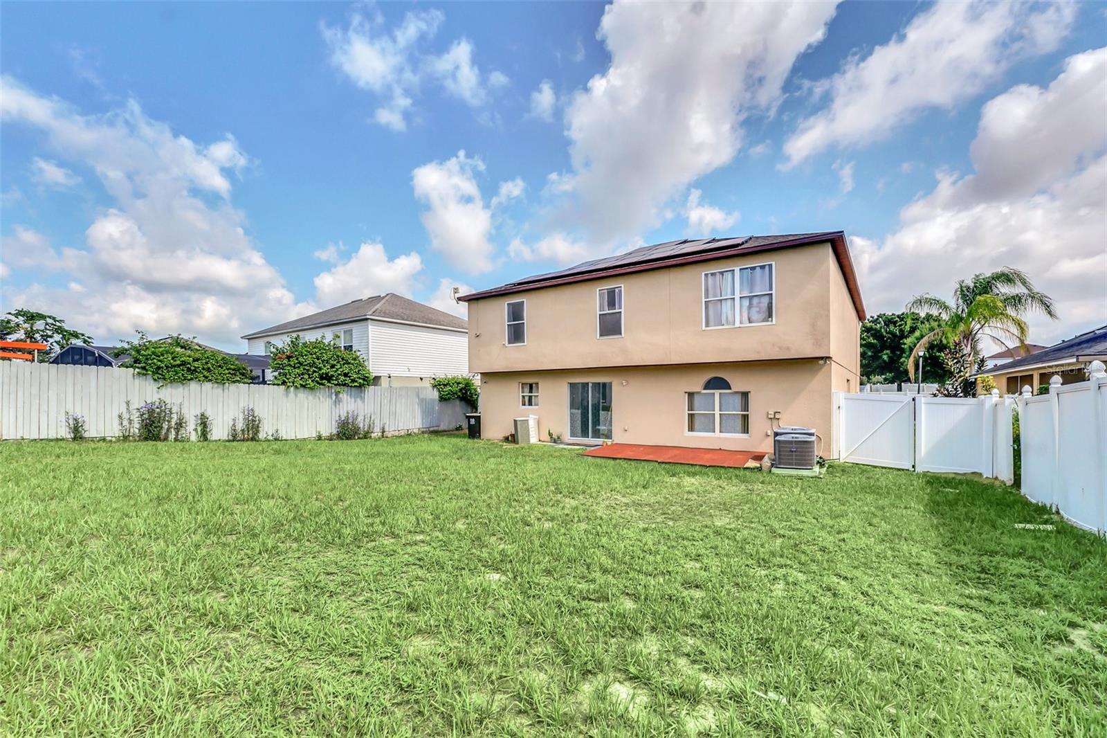 The house of your dreams does exist and is waiting for you! This beautiful house with 4 spacious bedrooms and 2.5 bathrooms is located in Holly Hill Estates, in Davenport. Upon entering you will find a living room, perfect for meetings. Do you need extra space? On one side of the living room is a space that can be used as an office or simply for a guest room. Its large and open kitchen, which joins with another living room, will allow you to share with your family or friends while enjoying a TV show or simply relaxing. On the second floor, your master bedroom will surprise you. It is large and super spacious and includes a spa-like bathroom with double sinks, a large jacuzzi and shower. Another 3 large bedrooms are part of the second floor and a wonderful loft which can have multiple uses. The backyard is large, allowing you to have plenty of space to let your imagination fly and recreate your own oasis, combining rest and entertainment. The location of this wonderful house allows you to be close to Posner Park, restaurants, shopping malls, car dealers, hospitals, medical offices, and supermarkets. Easy access to the main roads and highways and approximately 30 minutes from the theme parks. Don't miss the opportunity to come see your future home, it's waiting for you. Schedule your appointment today, don't let it be too late! Solar panels will be paid by seller on closing