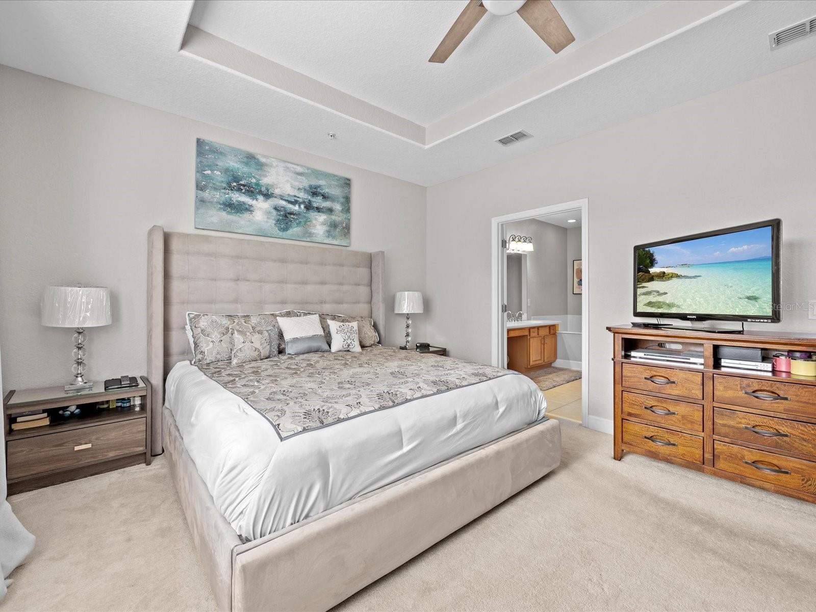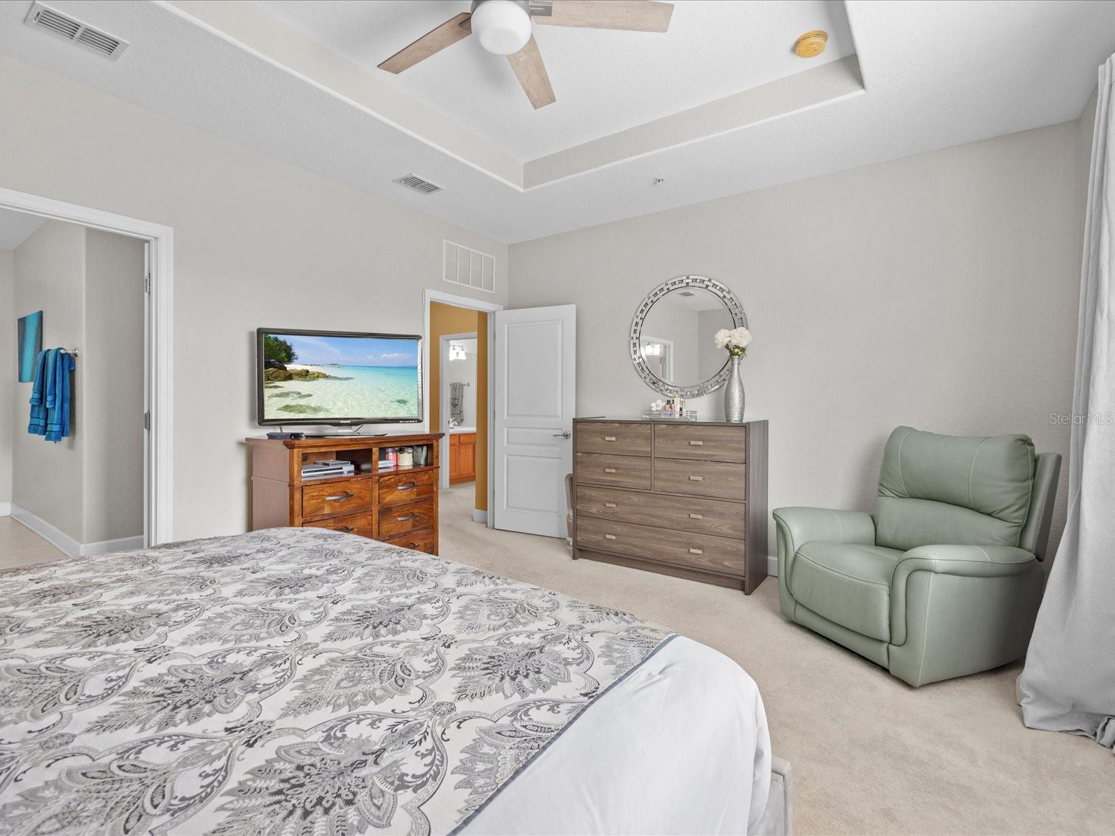 Welcome to this exquisite 3-bedroom townhome situated in the gated community of Bella Trae! The main floor features an inviting open floor plan that seamlessly integrates the dining area, living room, and kitchen, all enhanced by charming wainscoting and upgraded wood-look tile. The modern kitchen is equipped with sleek granite countertops and stainless steel appliances, perfect for culinary enthusiasts. The primary bedroom is a haven of relaxation with its tray ceilings, expansive walk-in closet, and an en-suite bathroom that includes dual sinks and a spacious walk-in shower. One guest bedroom also offers a generous walk-in closet, while the second floor guest bathroom ensures comfort and privacy for visitors. A convenient half bath is located on the first floor. Enjoy the peaceful pond views from the enclosed patio, which is equipped with a ceiling fan for added comfort. Additional features include a laundry room and an attached two-car garage. The community of Bella Trae has a stunning clubhouse that includes a state of the art gym, fitness studio, zero entry saltwater pool, media room, billiards room, bocce ball court, a putting green, social activities for all, and much more. Conveniently located close to world class entertainment, shopping, dining and in between 2 international airports this home will make you feel like you are on a permanent vacation. The monthly HOA dues includes basic cable, internet and pest control. Experience the best of Bella Trae living in this beautiful townhome!