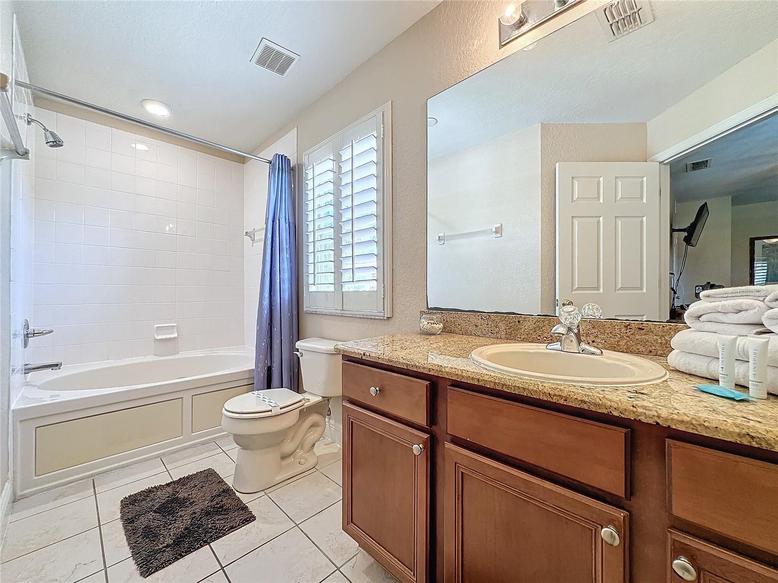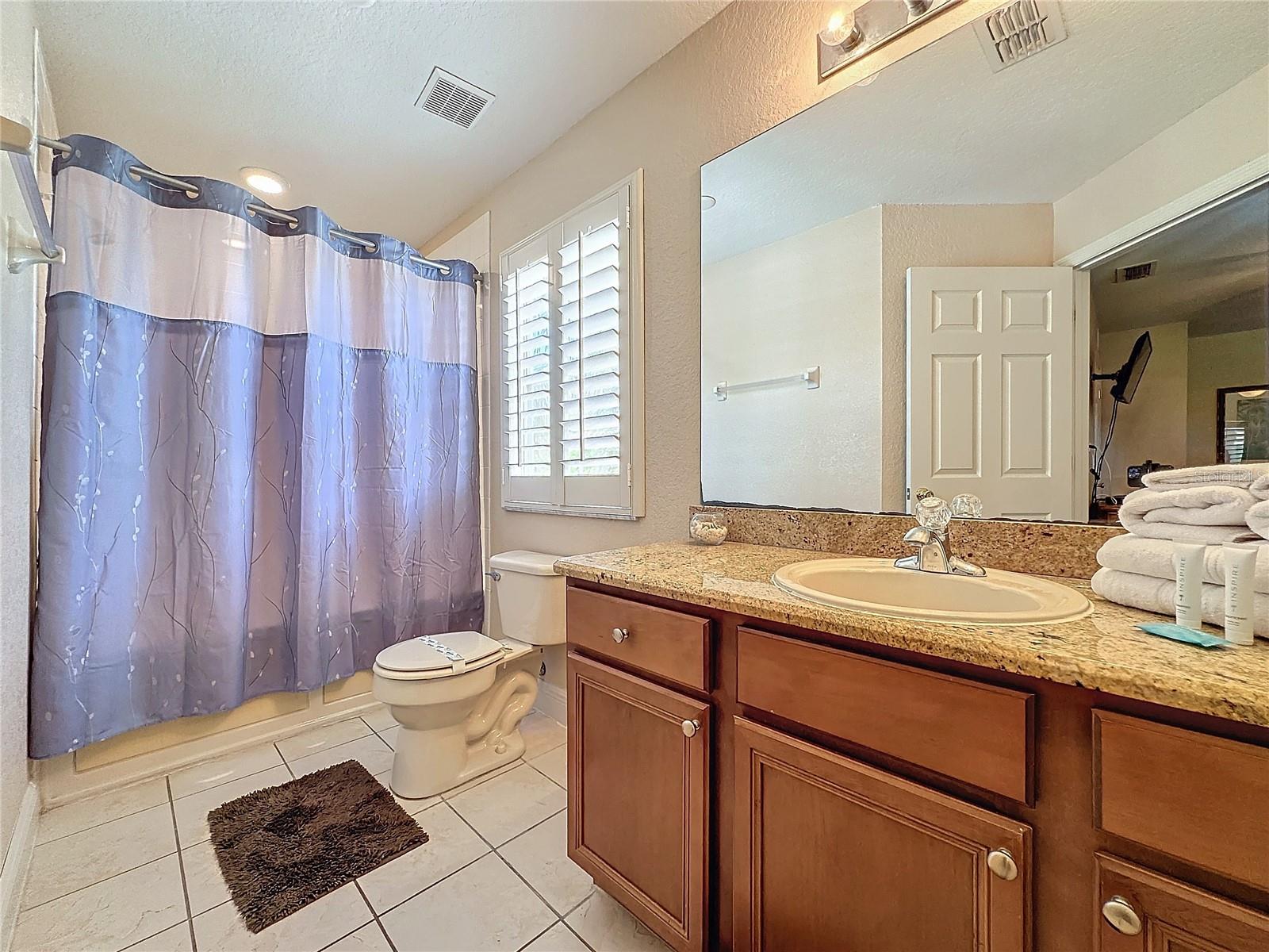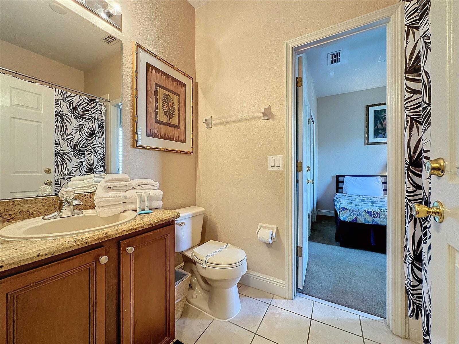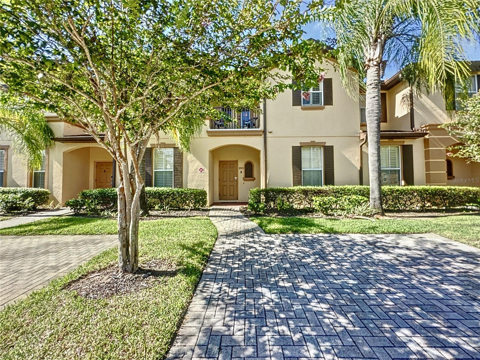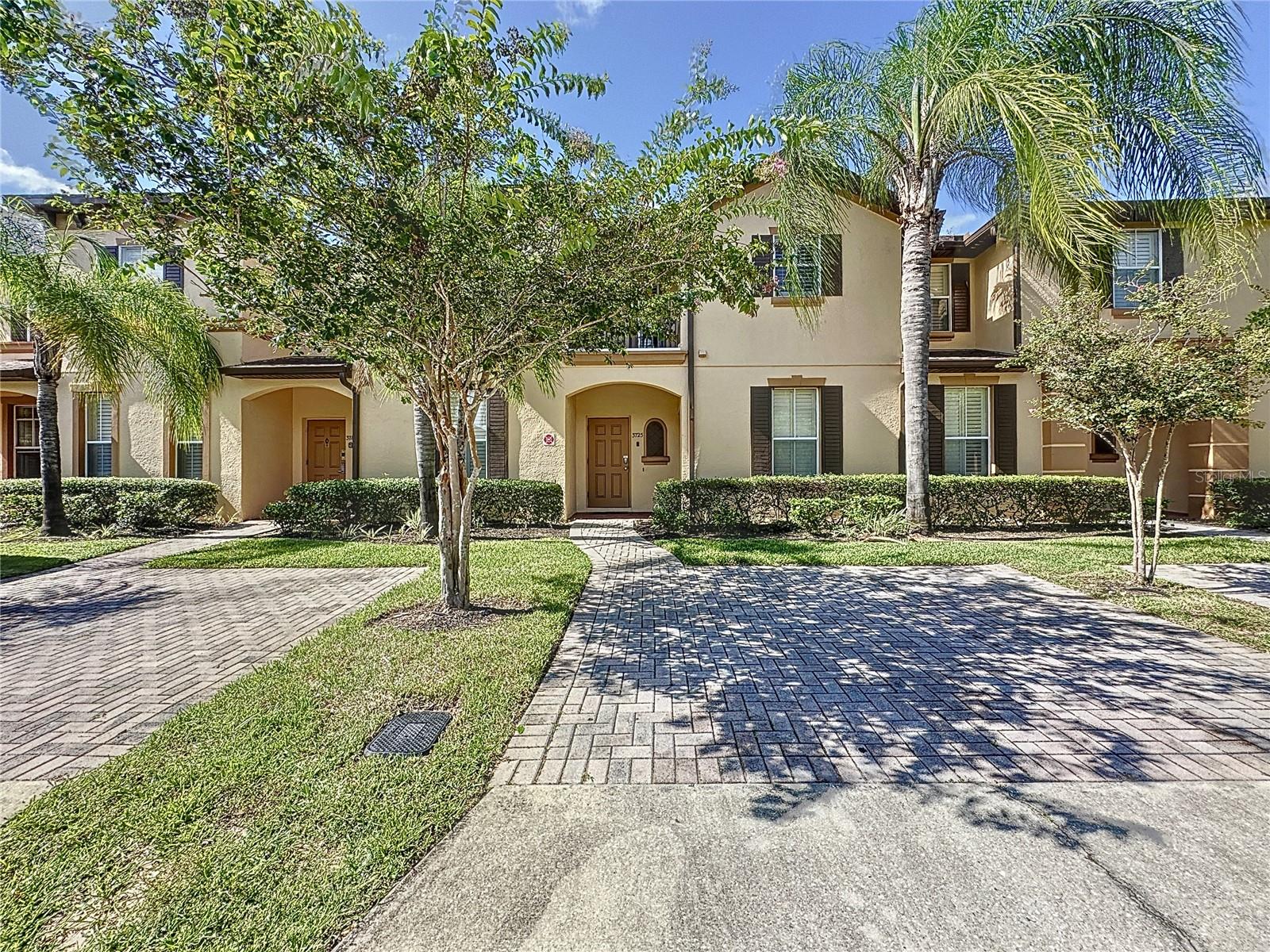 Beautiful 2 story townhome with 3 bedrooms, 2 that have ensuite bathrooms, there is an additional full bathroom upstairs. Sold FULLY FURNISHED The downstairs primary bedroom has a private entrance which can be used as a lockout / office. Kitchen has granite counters, stainless appliances, everything required to prepare meals. The HOA fee includes a 24/7 security guarded gate, internet, basic cable, exterior maintenance (including roof), trash service, pest control and exterior insurance. Regal Palms has amazing amenities that include resort-style pools, a lazy river, water slide, jacuzzi, poolside tiki bar, an arcade, restaurant and ice cream shop. The amenities also include a fully equipped fitness center, sauna, volleyball court and playground.