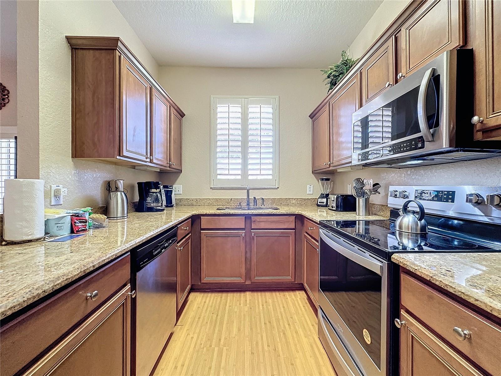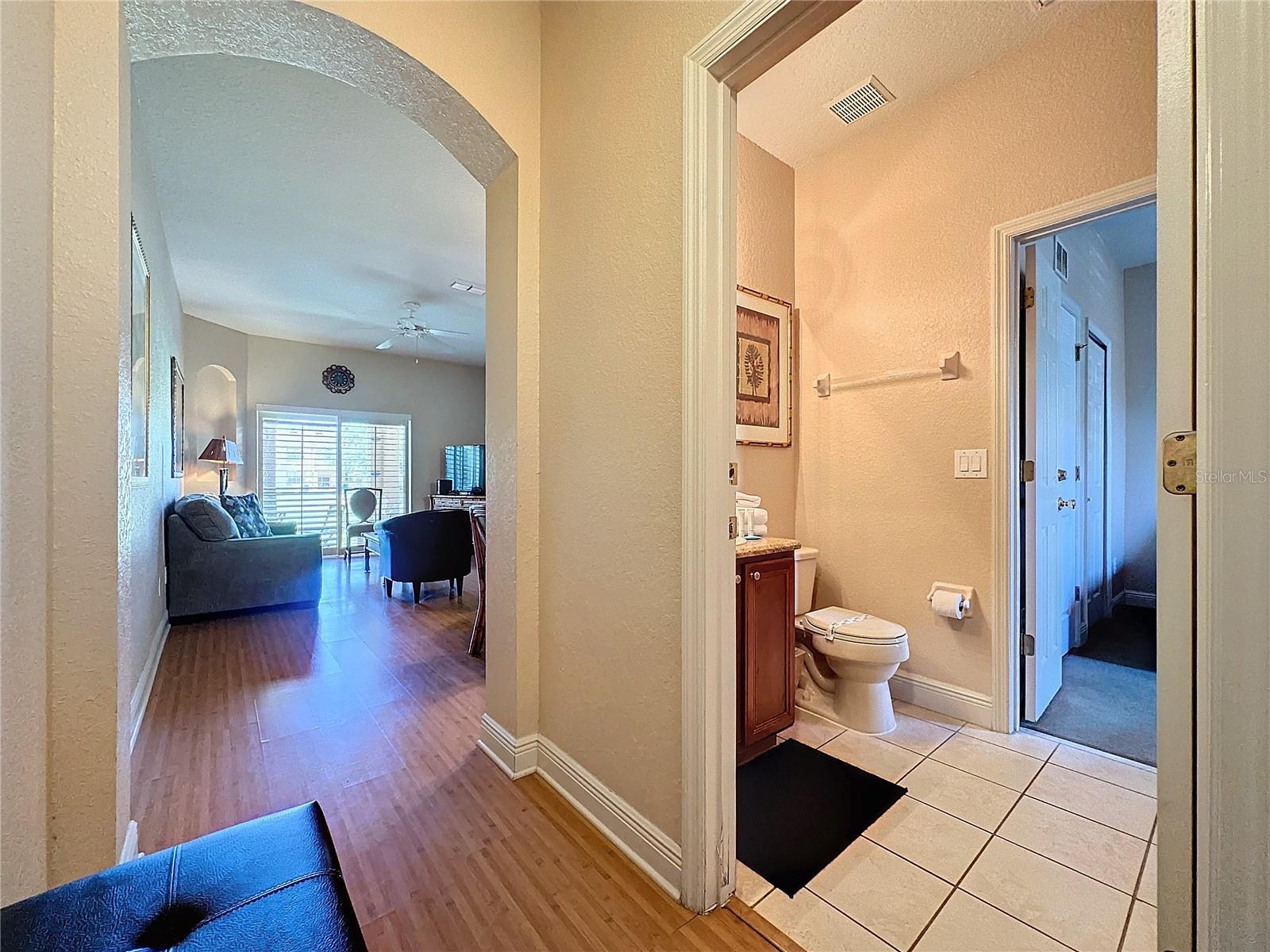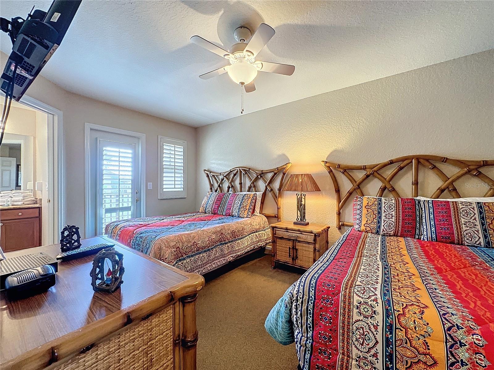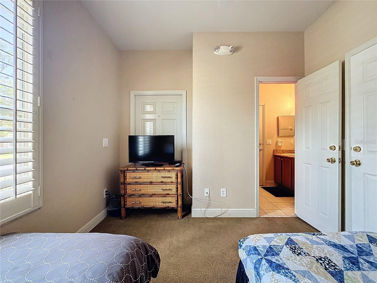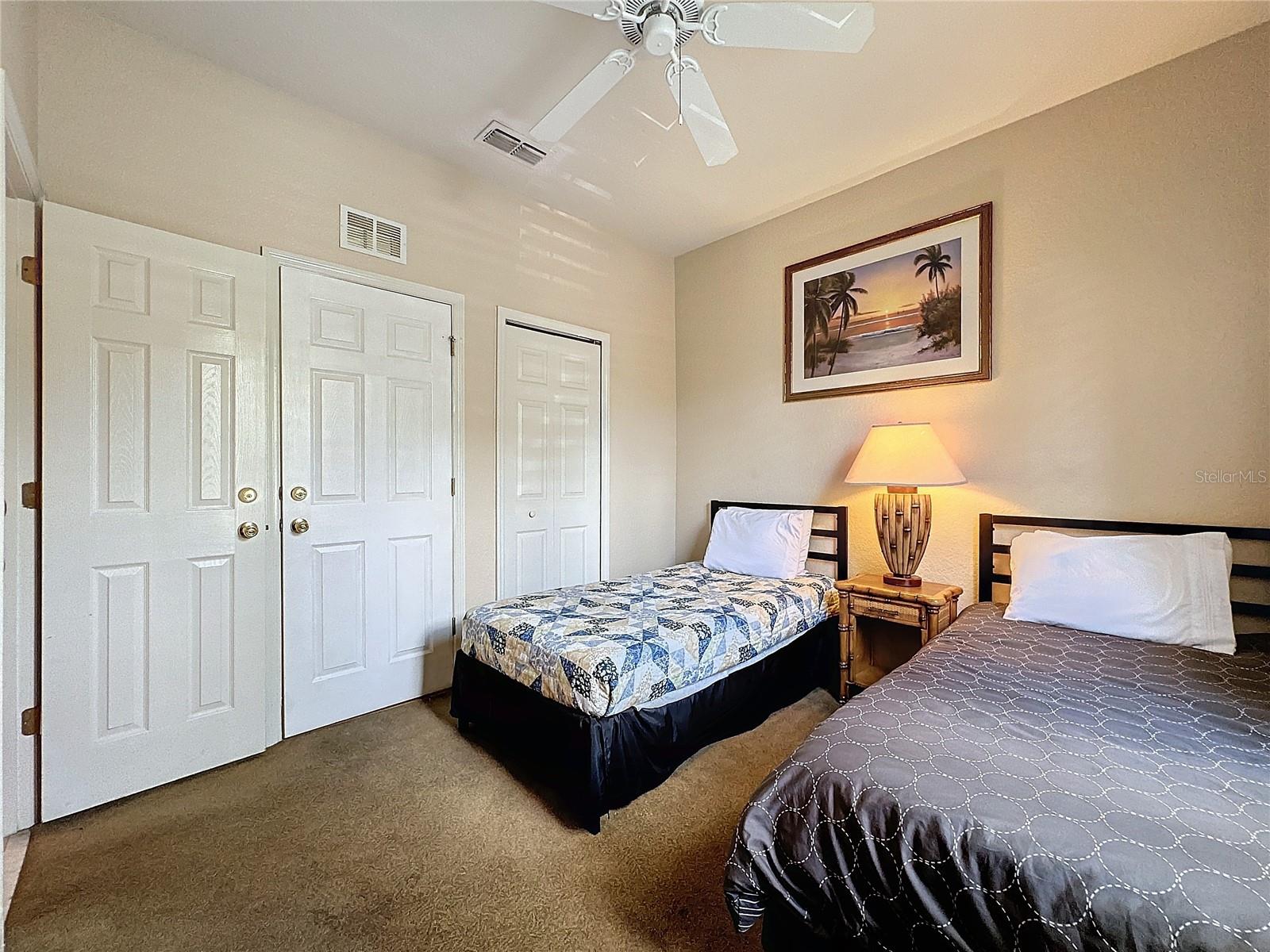 Beautiful 2 story townhome with 3 bedrooms, 2 that have ensuite bathrooms, there is an additional full bathroom upstairs. Sold FULLY FURNISHED The downstairs primary bedroom has a private entrance which can be used as a lockout / office. Kitchen has granite counters, stainless appliances, everything required to prepare meals. The HOA fee includes a 24/7 security guarded gate, internet, basic cable, exterior maintenance (including roof), trash service, pest control and exterior insurance. Regal Palms has amazing amenities that include resort-style pools, a lazy river, water slide, jacuzzi, poolside tiki bar, an arcade, restaurant and ice cream shop. The amenities also include a fully equipped fitness center, sauna, volleyball court and playground.