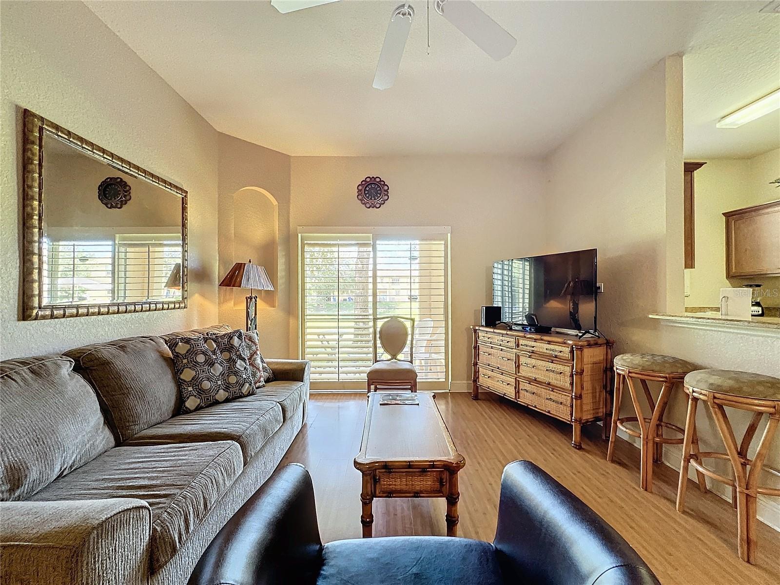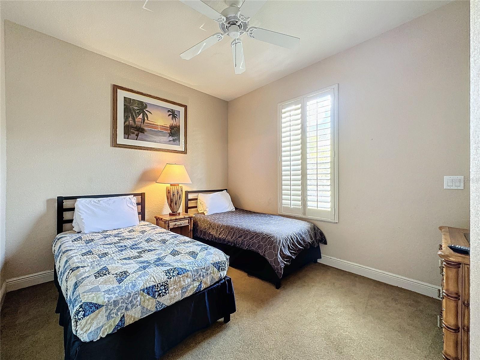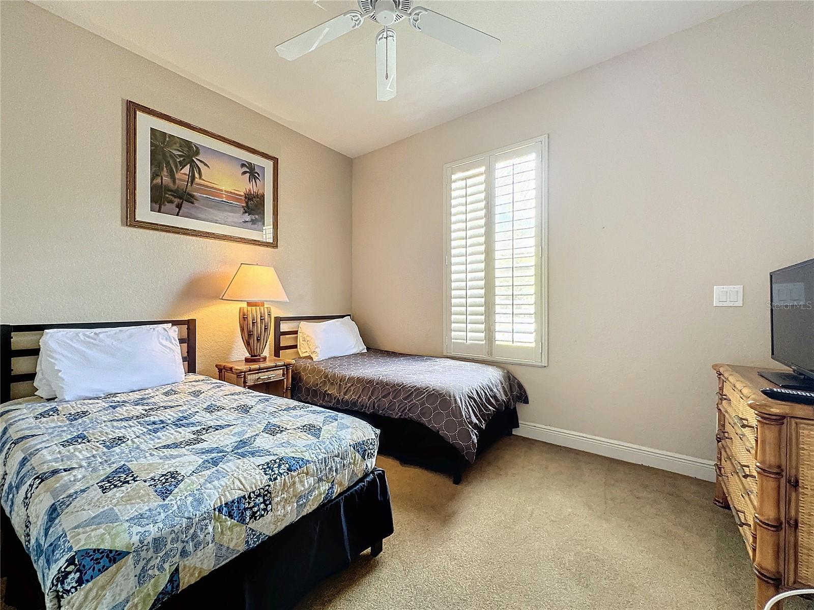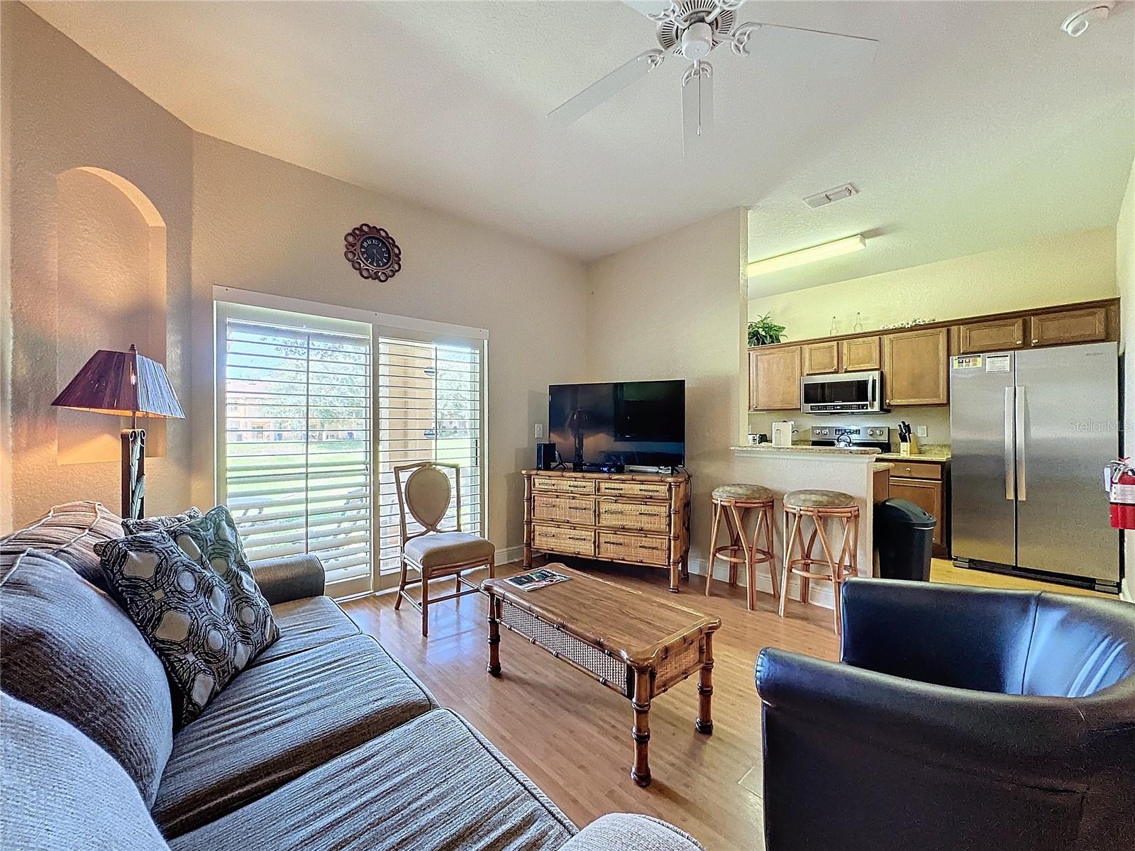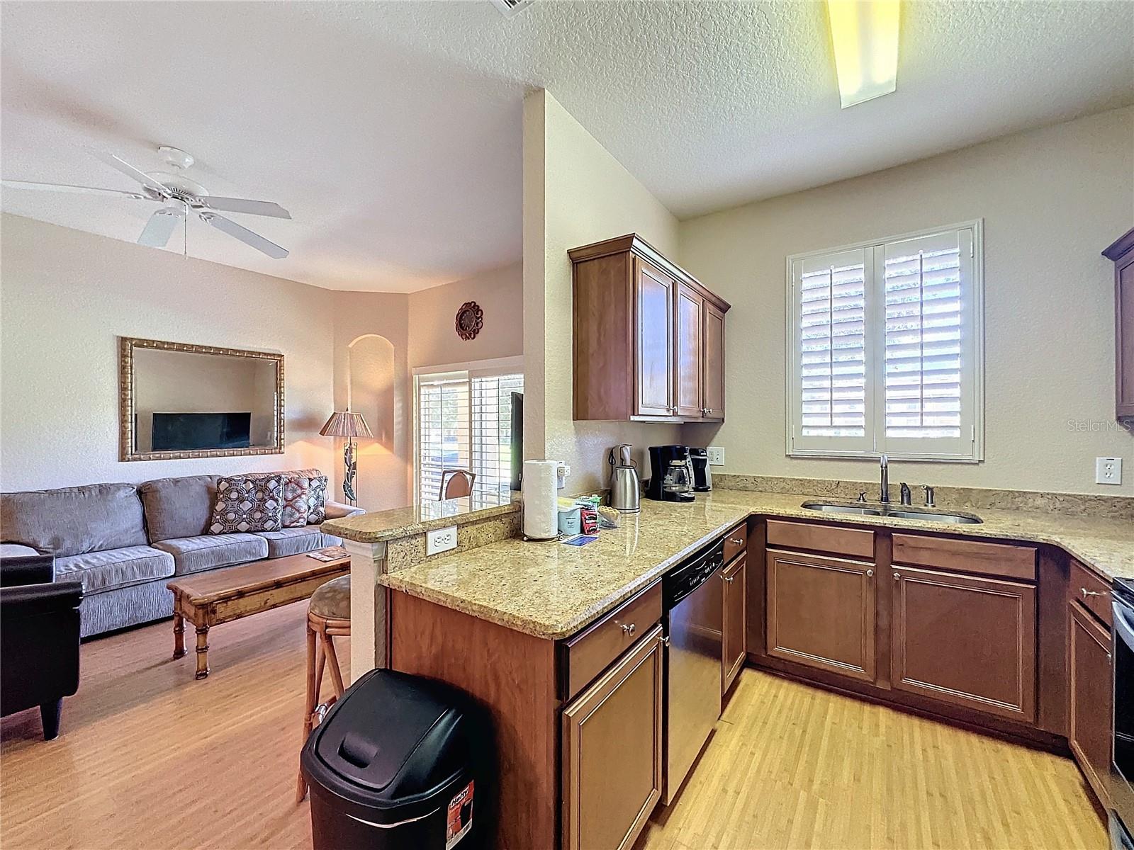Beautiful 2 story townhome with 3 bedrooms, 2 that have ensuite bathrooms, there is an additional full bathroom upstairs. Sold FULLY FURNISHED The downstairs primary bedroom has a private entrance which can be used as a lockout / office. Kitchen has granite counters, stainless appliances, everything required to prepare meals. The HOA fee includes a 24/7 security guarded gate, internet, basic cable, exterior maintenance (including roof), trash service, pest control and exterior insurance. Regal Palms has amazing amenities that include resort-style pools, a lazy river, water slide, jacuzzi, poolside tiki bar, an arcade, restaurant and ice cream shop. The amenities also include a fully equipped fitness center, sauna, volleyball court and playground.