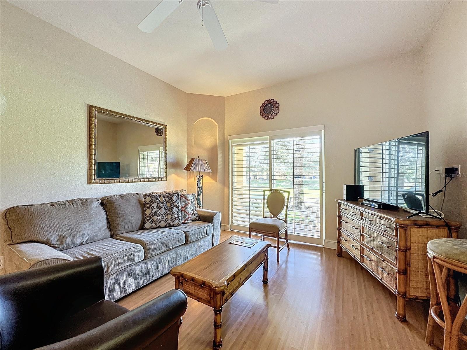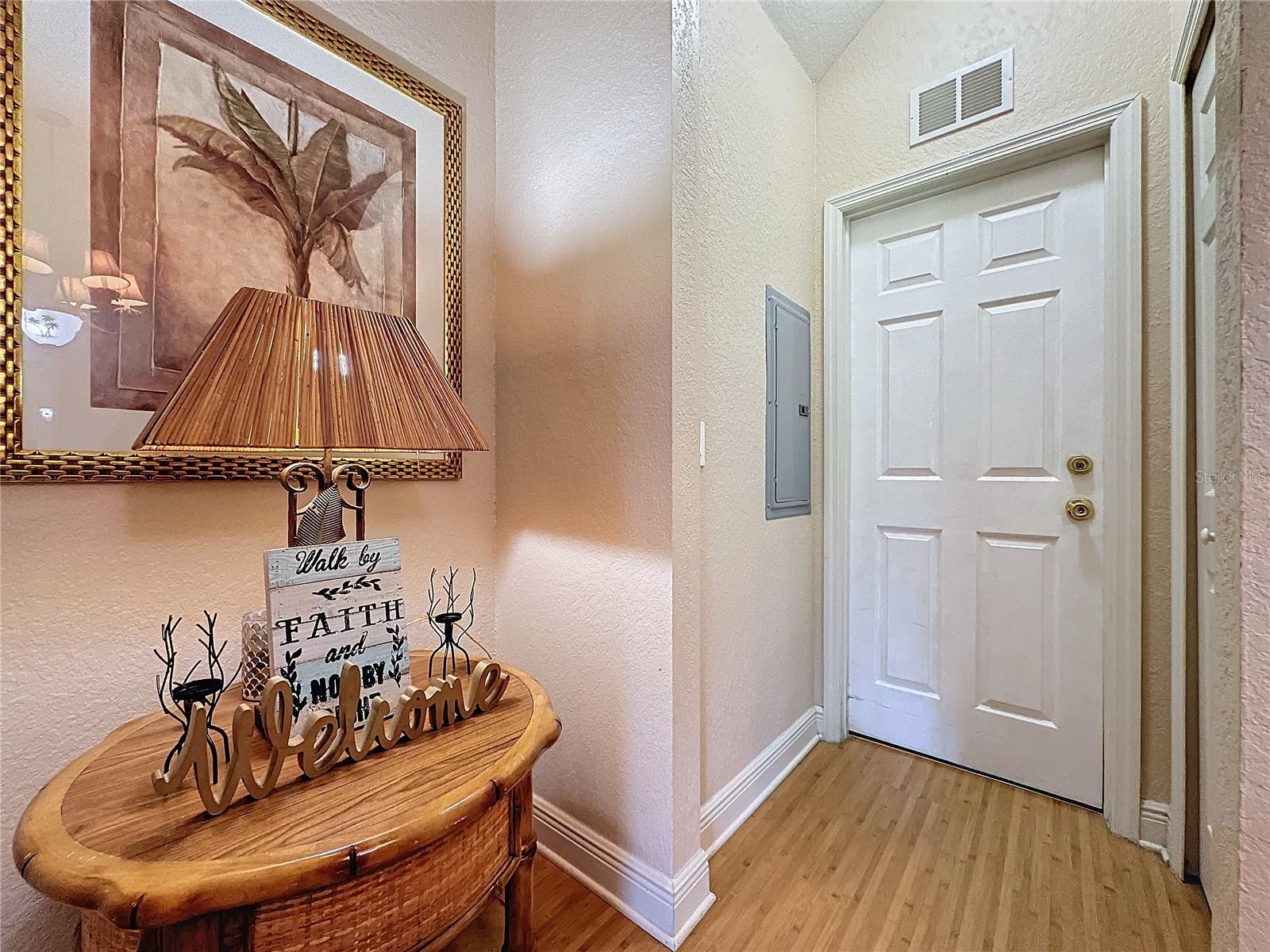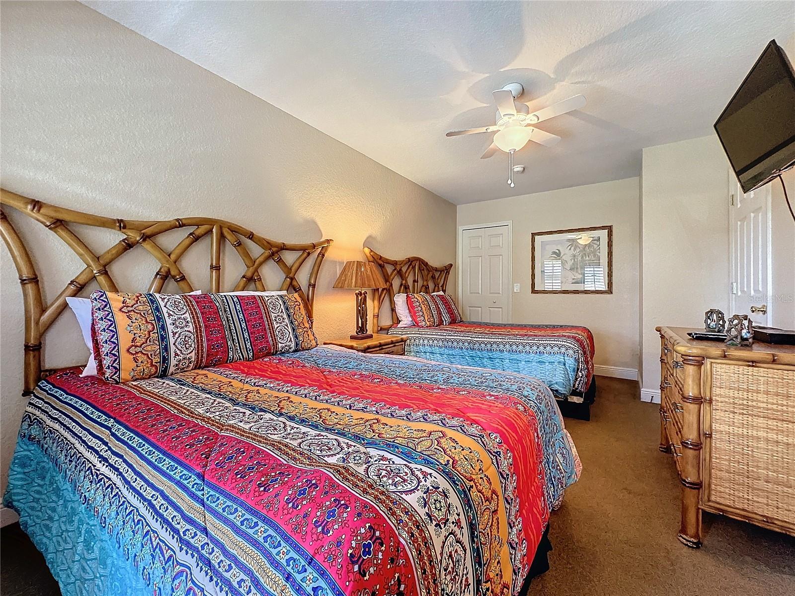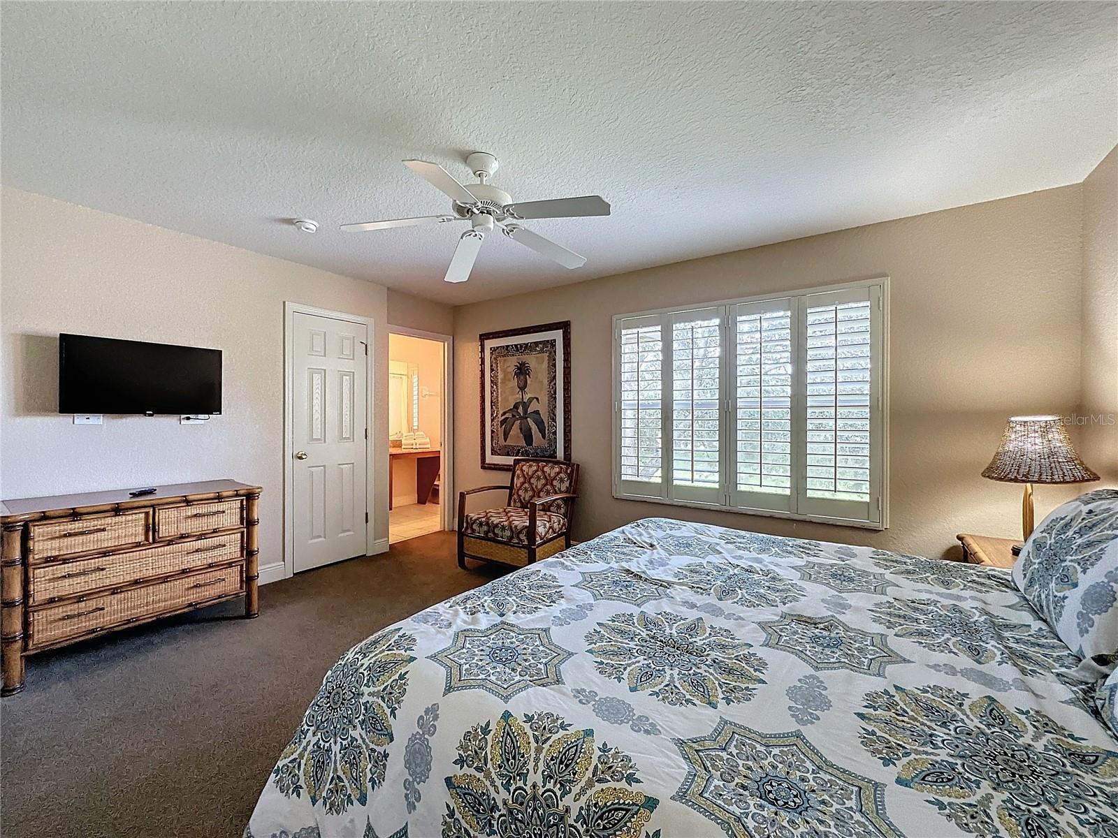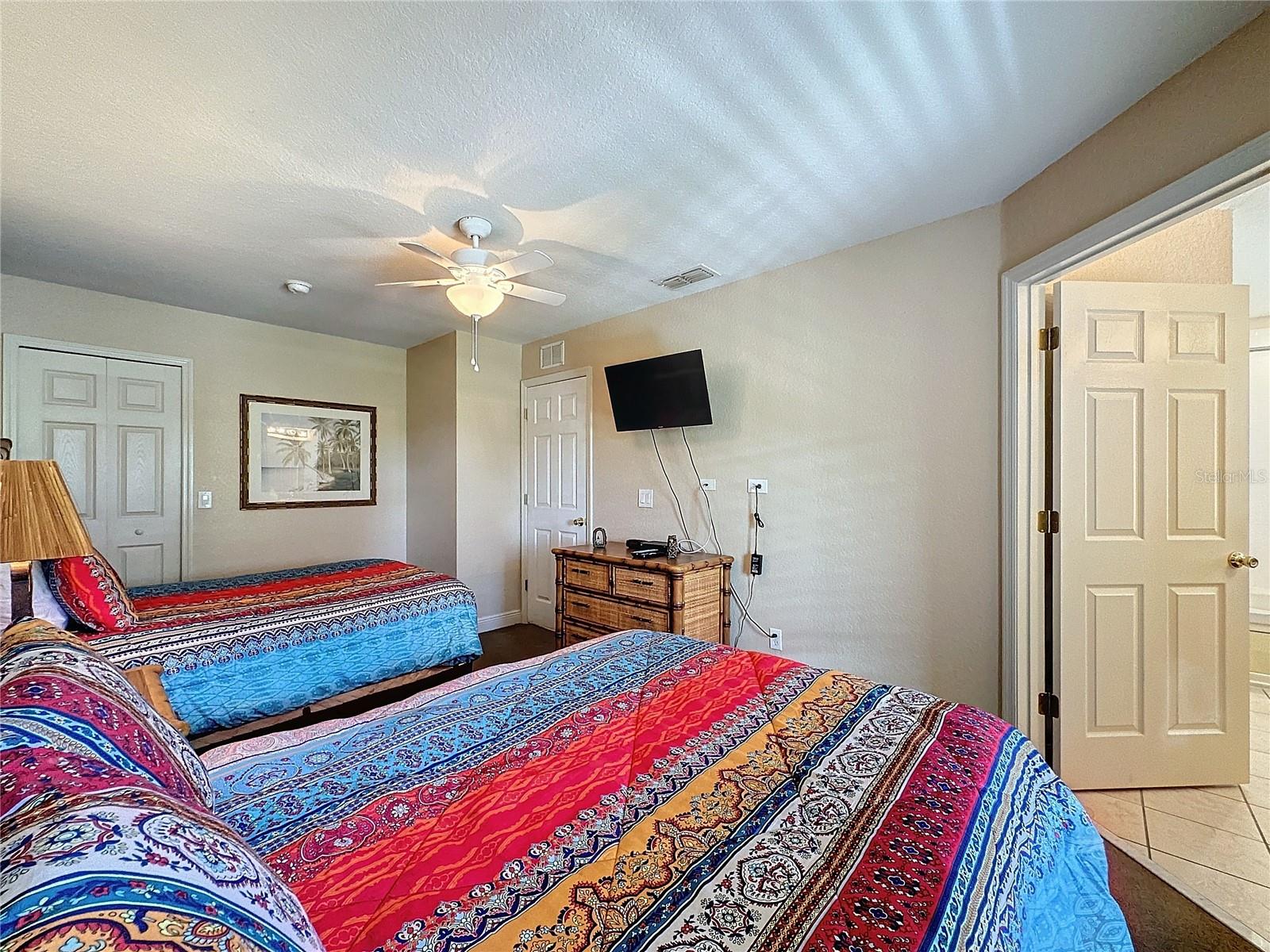 Beautiful 2 story townhome with 3 bedrooms, 2 that have ensuite bathrooms, there is an additional full bathroom upstairs. Sold FULLY FURNISHED The downstairs primary bedroom has a private entrance which can be used as a lockout / office. Kitchen has granite counters, stainless appliances, everything required to prepare meals. The HOA fee includes a 24/7 security guarded gate, internet, basic cable, exterior maintenance (including roof), trash service, pest control and exterior insurance. Regal Palms has amazing amenities that include resort-style pools, a lazy river, water slide, jacuzzi, poolside tiki bar, an arcade, restaurant and ice cream shop. The amenities also include a fully equipped fitness center, sauna, volleyball court and playground.