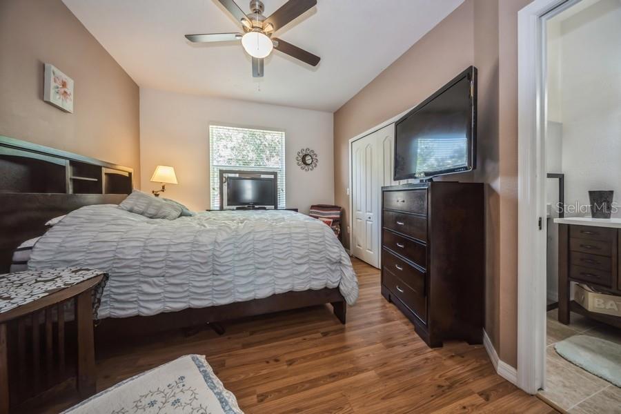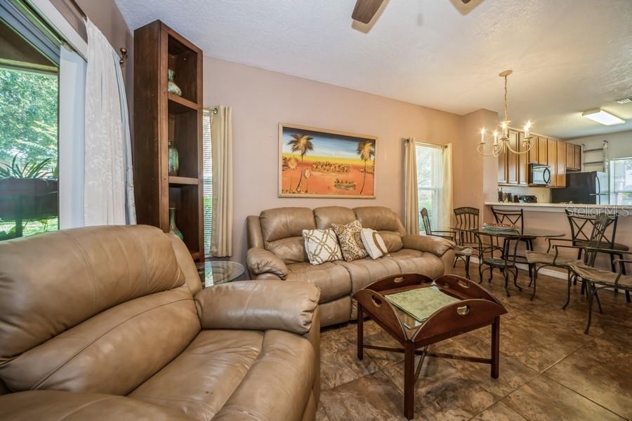 WELCOME HOME! This well-cared-for END-UNIT townhome is ready for its next loving owner. Perfect for investors with a tenant already in place! As you step inside, you are greeted with an OPEN FLOORPLAN, with the kitchen area open to the dining and living rooms, ideal for entertaining. The kitchen has solid counters, tall wood cabinets, and an elevated bar area for seating or hosting. The large living and dining area opens up to the SCREENED PATIO, with a lovely garden view and privacy screen. There is also a half bathroom downstairs conveniently located for guests. Upstairs you will find the master suite, complete with a large closet, updated bathroom vanity, and WALK-IN SHOWER. The guest bedroom is complete with its own large closet and attached guest bathroom, allowing for complete privacy. The GATED Towns at Legacy Park community allows residents to enjoy a community pool and hot tub, and has a supreme location right off US-27 with easy access to shopping, dining, and nearby attractions. Come see this home before it is gone!