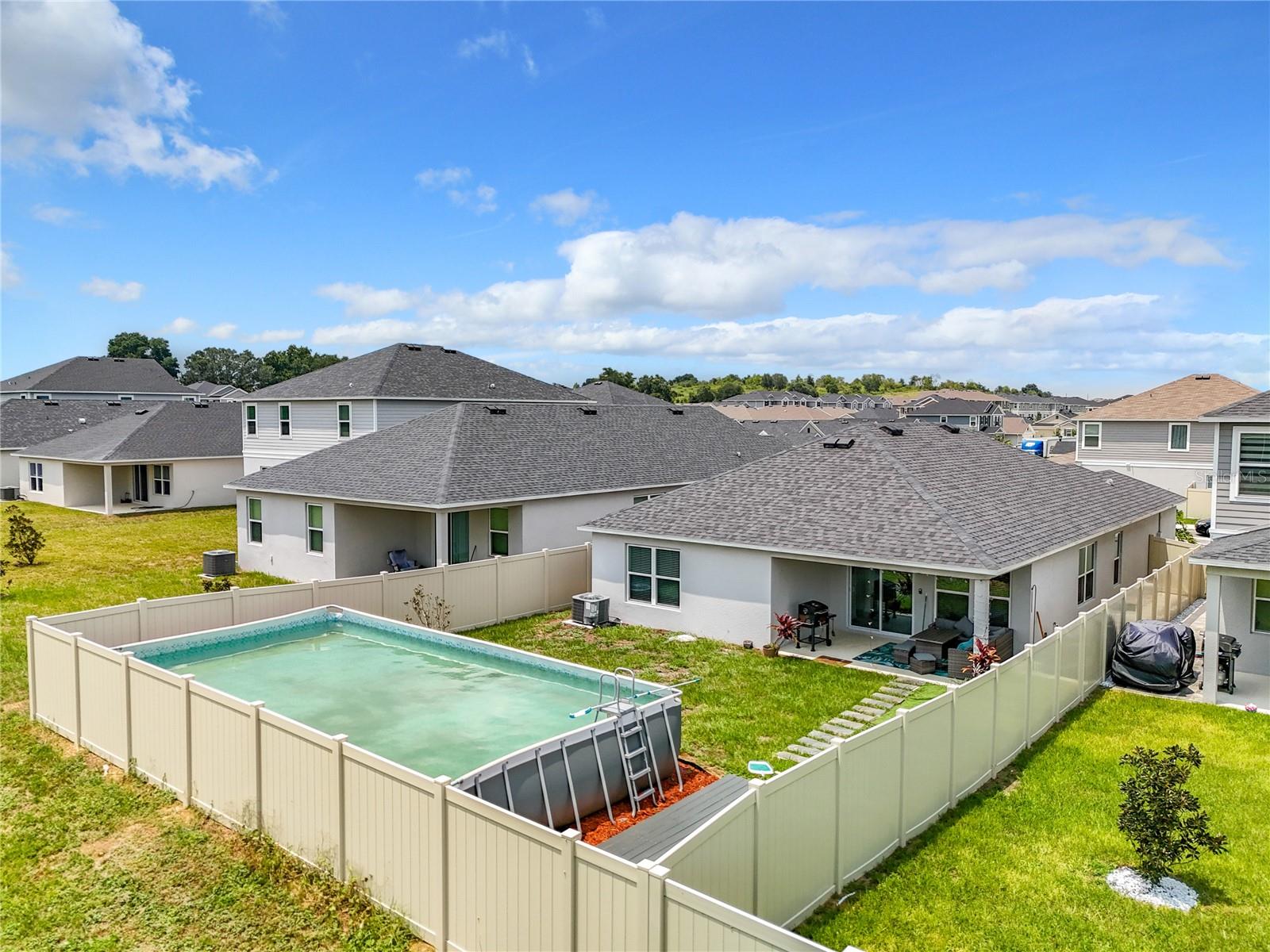 PRIME LOCATION, a fantastic opportunity in the Bellaviva Community. This Open Floor Plan Home feature a living room open to the dining room. Spacious kitchen that features a large ISLAND. Relax in a spacious Master bedroom suite with a double sink vanity, WALK-IN shower & closet; well appointed secondary bedrooms and closets as well! Great features that include Stainless Steel Fridge/Range/Microwave/Dishwasher. Back yard with completed VINYL FENCE , covered patio perfect for entertaining or simply relaxing. Great size over ground swimming POOL. The home is very spacious with lots of natural lighting. Bellaviva is Located just minutes away from Walt Disney World, the Omni Hotel and Resort, International Drive, and I-4. Minutes away from the excitement and entertainment of Orlando.