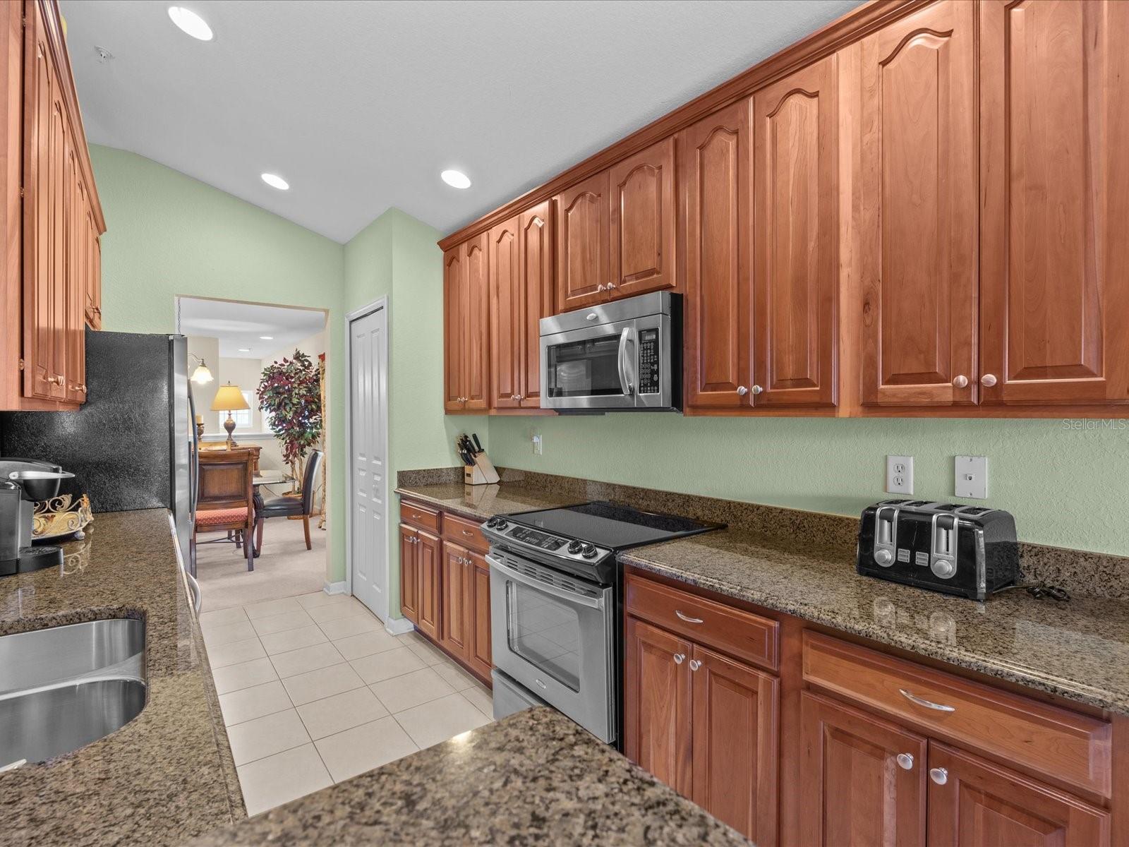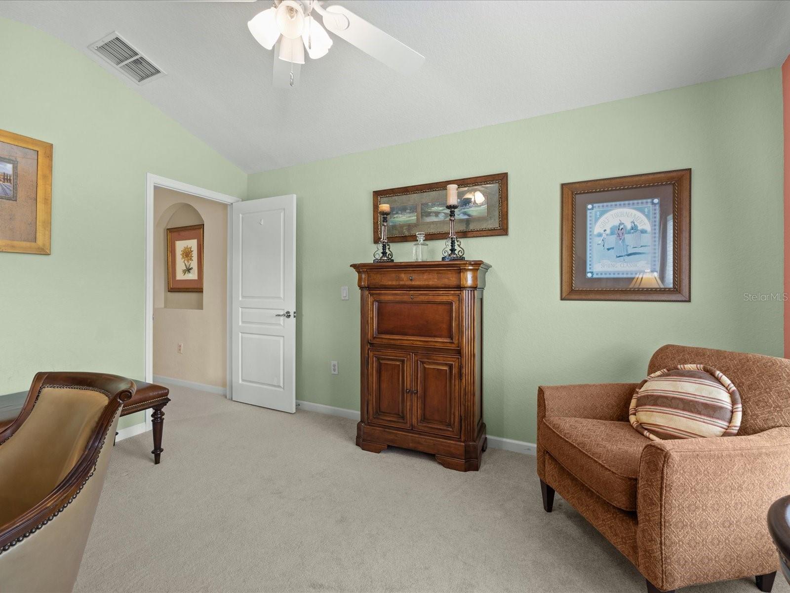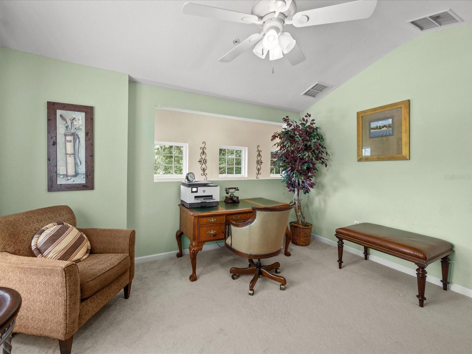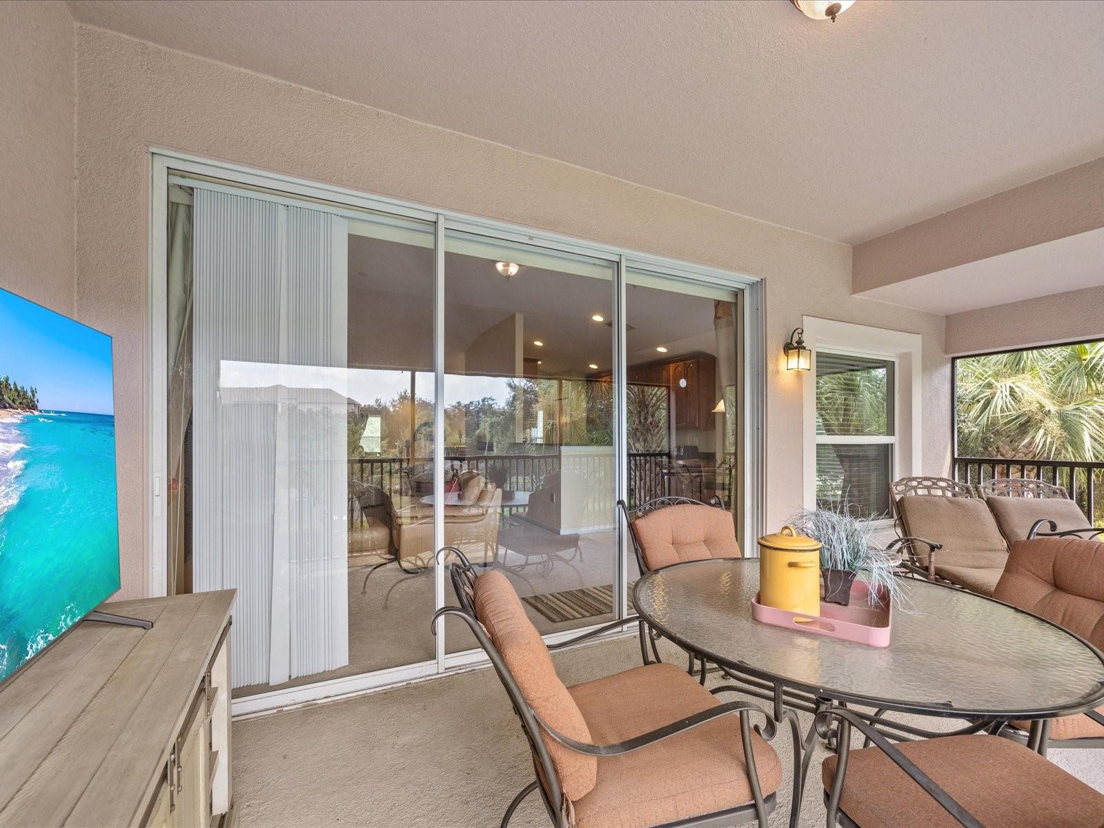 Welcome to Bella Trae, a gated community where this fully furnished 2-bedroom, 2-bathroom condo awaits. This upper-end unit impresses with its vaulted ceilings, adding a spacious and elegant feel. The galley kitchen is equipped with granite countertops, stainless steel appliances, and a charming dining nook. The primary suite offers a walk-in closet, dual sinks, and a walk-in shower, creating a private sanctuary. Ceiling fans are installed in all bedrooms and the versatile bonus room, which can be used as an office or even a third bedroom. The oversized screened-in lanai overlooks the tennis courts, providing a peaceful outdoor space. The unit also includes an attached one-car garage with a driveway. Residents of Bella Trae enjoy an array of amenities, including a clubhouse with a fitness center, pool, billiards room, spa, putting green, tennis courts, and more. HOA dues conveniently cover cable, internet, lawn care, and pest control. With its prime location near a variety of restaurants, shops, and major highways, this condo offers the ideal blend of luxury and convenience!