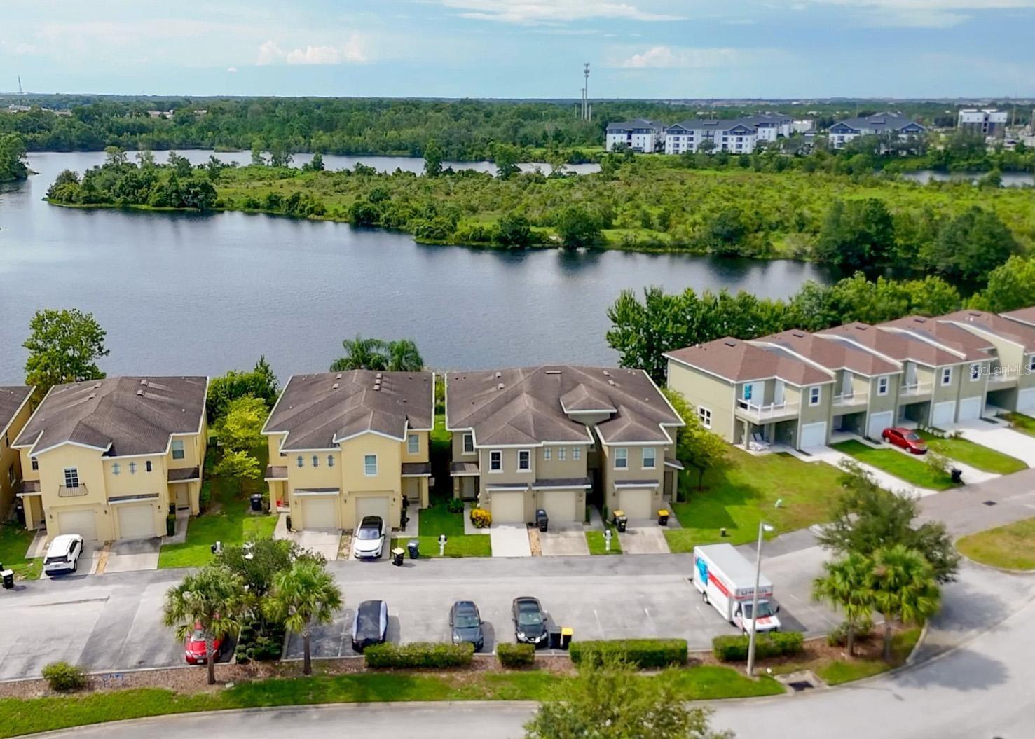 ***PRICED TO SELL**** Davenport Lakefront Luxury Townhome in Bridgewater Community Perfect for primary residence, vacation home, or a high-income rental investment (short-term and long-term rentals allowed). This 4-bedroom, 2.5-bath property is fully upgraded and offers unobstructed lake views with no rear neighbors, providing ultimate privacy and tranquility. Step into a modern open-concept layout with a spacious family room that flows seamlessly to the rear lanai, ideal for both relaxation and entertaining. The home features hurricane-proof Pella windows, offering peace of mind and added security. The gourmet kitchen is a chef's dream with 42-inch solid wood cabinets, a walk-in butler's pantry, stainless steel appliances, and a commercial-grade pull-down faucet. Upstairs, the master suite boasts a private balcony where you can enjoy stunning sunrise and sunset views over the lake. Additional upgrades include a new HVAC system (2021) designed to withstand up to Category 4 hurricanes, granite countertops in all bathrooms, and smart-home technology with integrated wall switches and appliances for enhanced convenience. Located minutes from Walt Disney World, shopping, dining, golf courses, and major highways, this home puts you in the heart of everything while offering a peaceful retreat. Enjoy outdoor activities like fishing, nature trails, and more in this prime location. Don’t miss out on this rare opportunity—schedule your showing today and make this luxurious lakefront townhome your own!