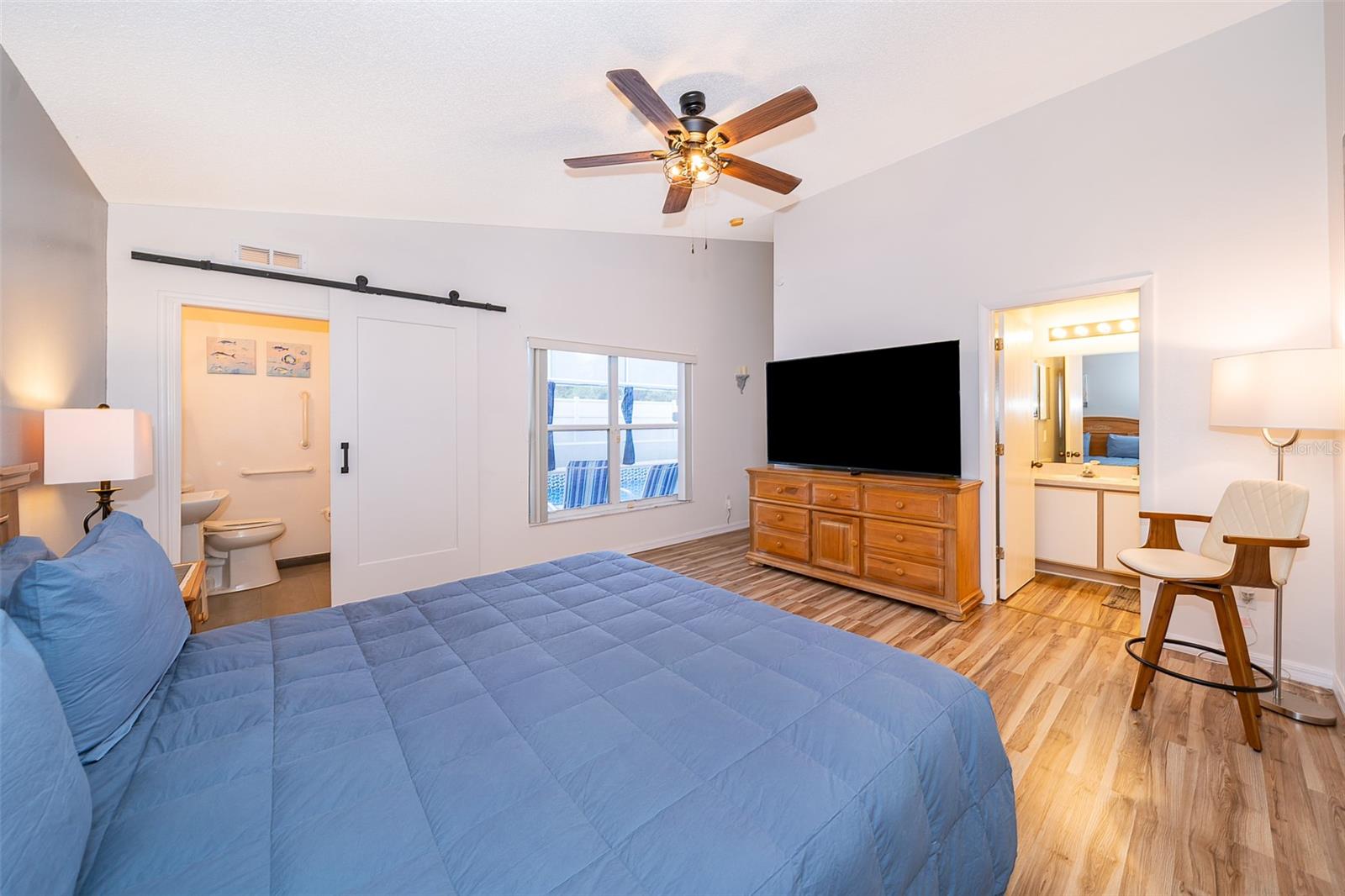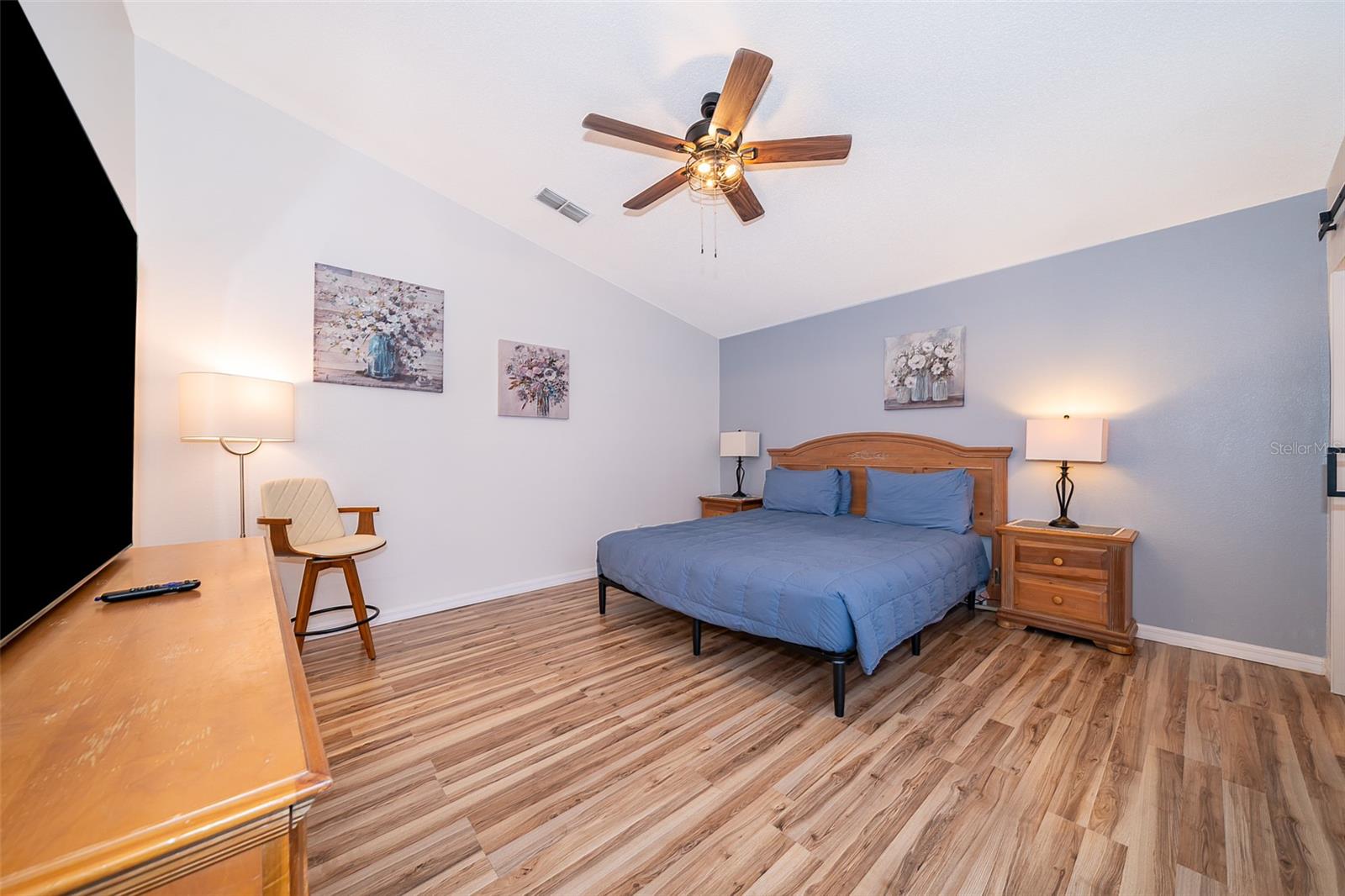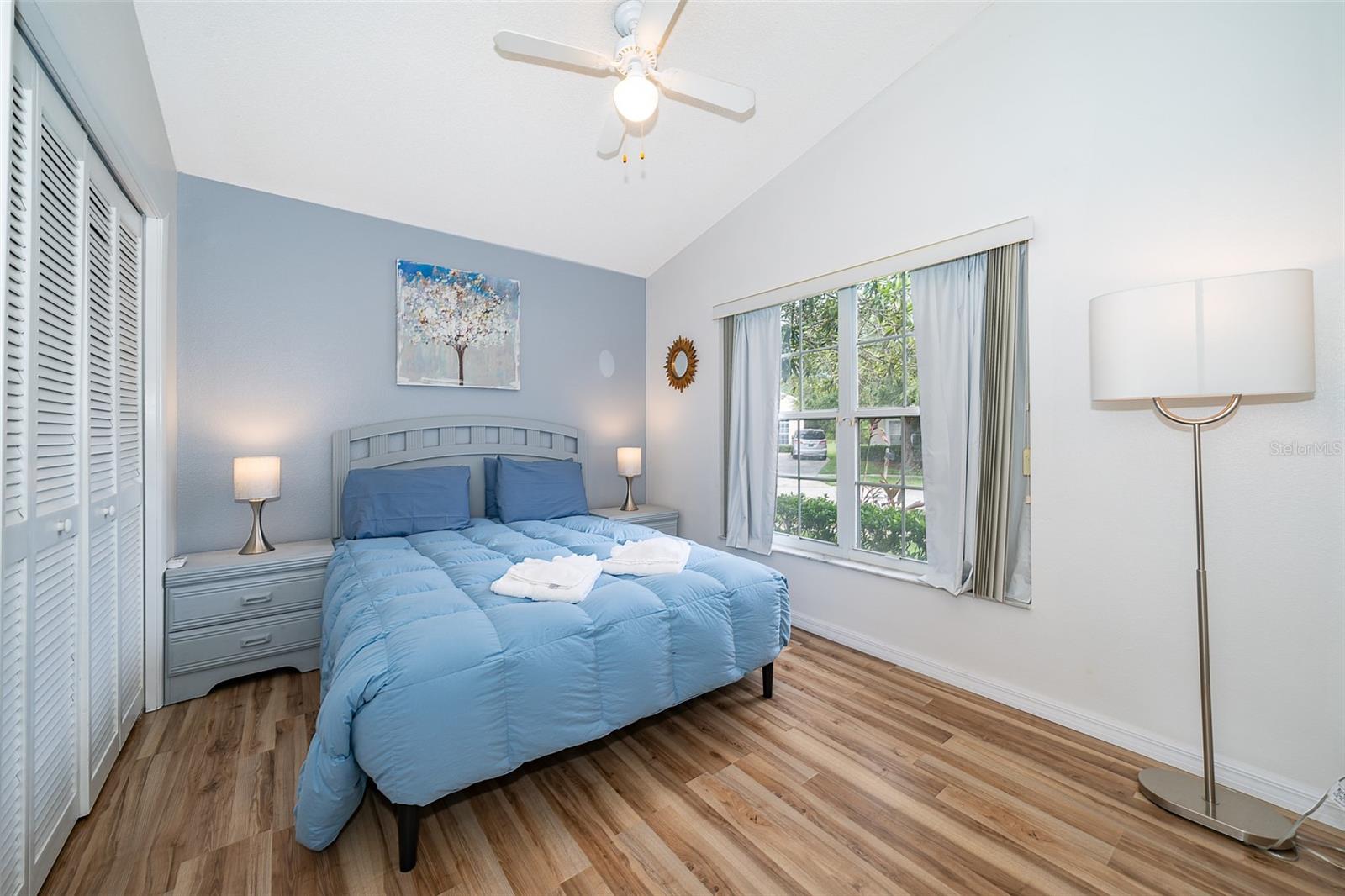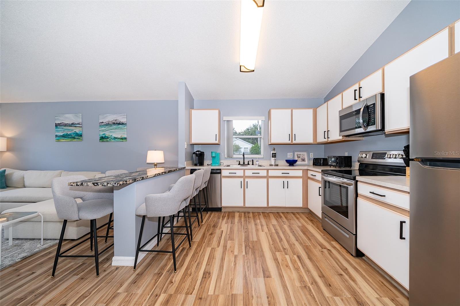 Attention to detail and pride of ownership is evident in this Fully Furnished 4/2.5 Vacation Home with a private pool. Owner purchased in 2023 for $398,500 and thereafter upgraded the home extensively. Family emergency has necessitated the sale of the home and owner is taking a loss at list price. Owner Upgrades and improvements include: Alarm system, new HVAC system with sterilizing light, new shower heads and fixtures, Pool converted from chlorine into a salt system. They put in a new pool heater and pump. They added privacy curtains around the pool, exterior and interior paint, put fence gates on both sides. There are new adjustable pressure smart firm mattresses, and new deck furniture. A new pool table was added on the garage and huge 75" brand new tv's in primary bedroom as well as one in the living room. The dining room furniture, couches, granite counter in kitchen are all new as well as new lights in the entry, a fan & light in garage. A barn door in master bedroom gives 1 1/2 bath to master suite with all new fixtures in the pool bath off of master bedroom, new door locks and pool bath fitted with grab bars and wheelchair accessible. There are , screens for pool cage, pool hand rail for easy in and out. To literally top it all off, the roof was replaced in 2022. Beautiful and easy to maintain flooring throughout, no carpet! This floor plan is a favorite due to its double living areas, formal dining area, and triple split bedroom plan. Located on a spacious corner lot, this home really does have it all. Safety is also addressed with an alarm system that can be controlled remotely and monitored with exterior cameras as well. Located just minutes from restaurants, stores, and close to the theme parks, midway to both coasts and beaches, you are right in the center of all that this area has to offer. This home is perfect for a short term rental, or live in it full time. Community has very low HOA fees, and includes lawn care! Tennis courts, playground and basketball courts are available for guests and owners. Come and see all this absolutely beautiful home has to offer today!