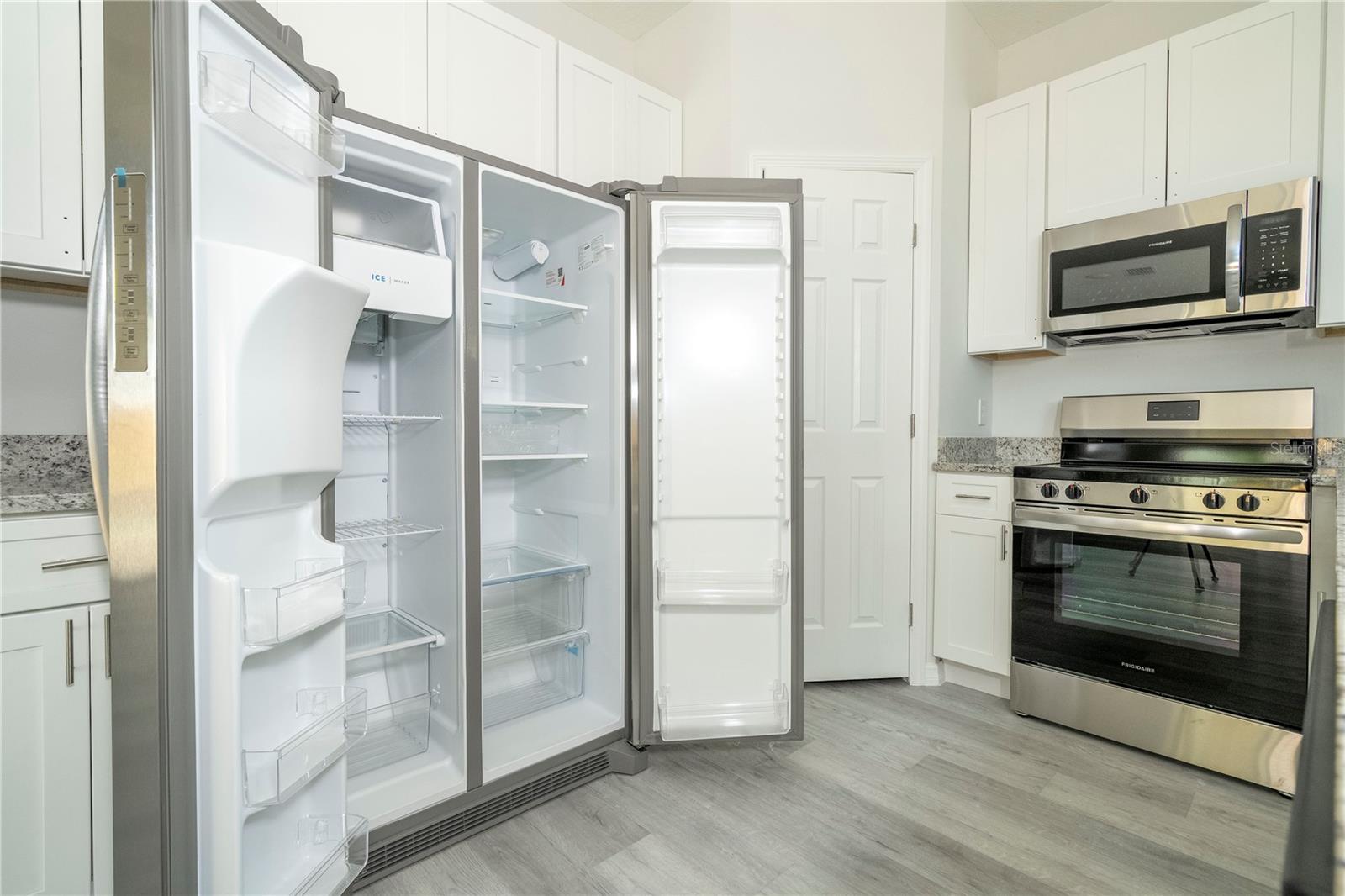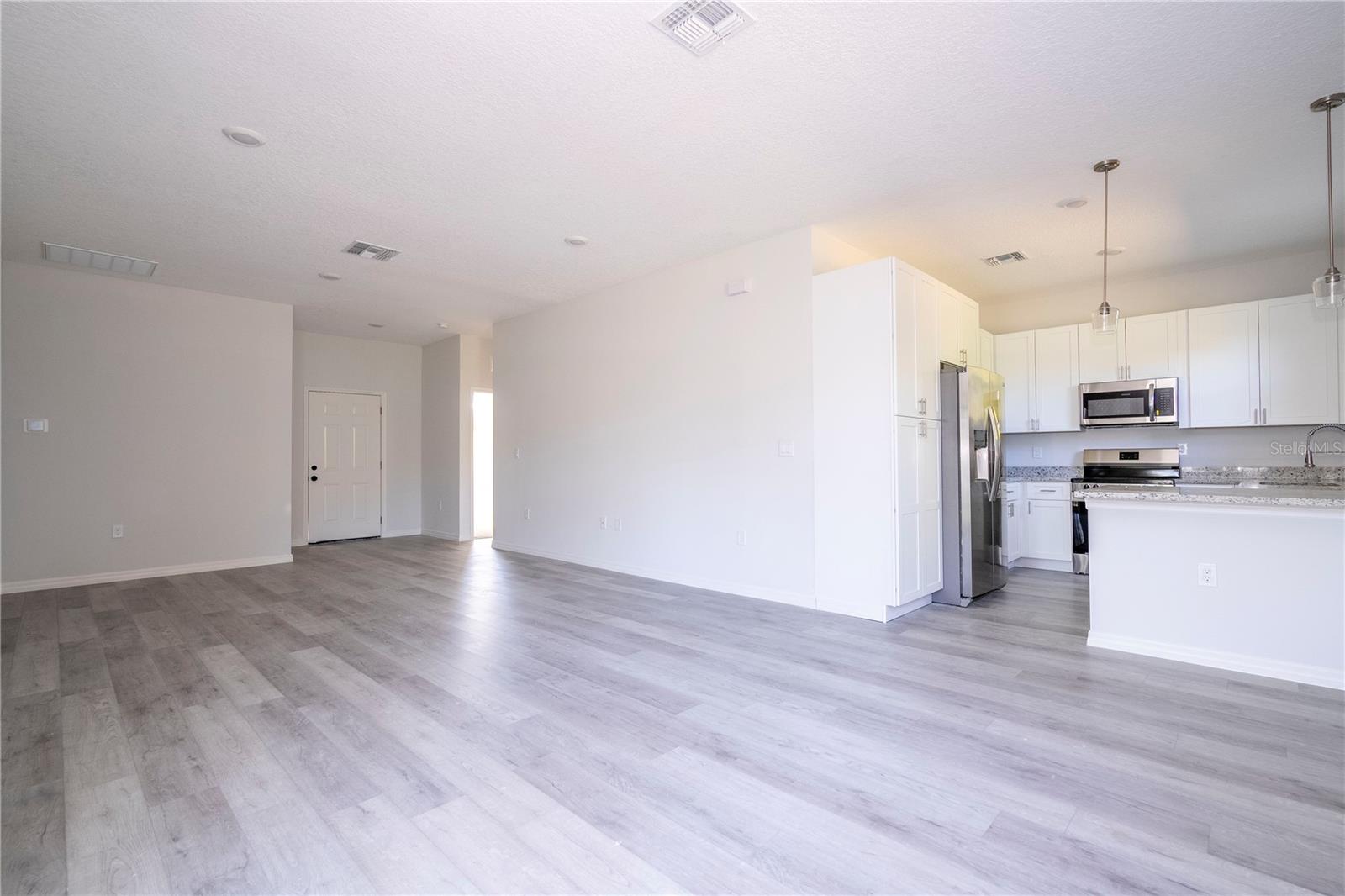One or more photo(s) has been virtually staged. ***MOVE IN READY*** NEW CONSTRUCTION PRIME LOCATION IN DAVENPORT AREA, LUXURY PROPERTY, ALL UPGRADES INCLUDED. This house features 1,855 sq. ft. under roof. LOW COST of living since there is NO HOA FEES / NO CDD. This welcoming open concept floor plan with modern finishes offers 3 bedrooms, 2 full bathrooms, 2 car garage, full of INCLUDED UPGRADES such as: solid wood soft close cabinets in the kitchen / solid wood vanity in the bathrooms / Dallas white granite sinks in the master bathrooms / Luxury vinyl plank flooring throughout the house / tiled bathroom floors / tiled floor to ceiling in the showers / high quality of Dallas white granite counter tops in the kitchen and baths / high ceilings / luxury handles / the windows are energy efficient / home includes brand-new stainless-steel appliances. Don't wait!