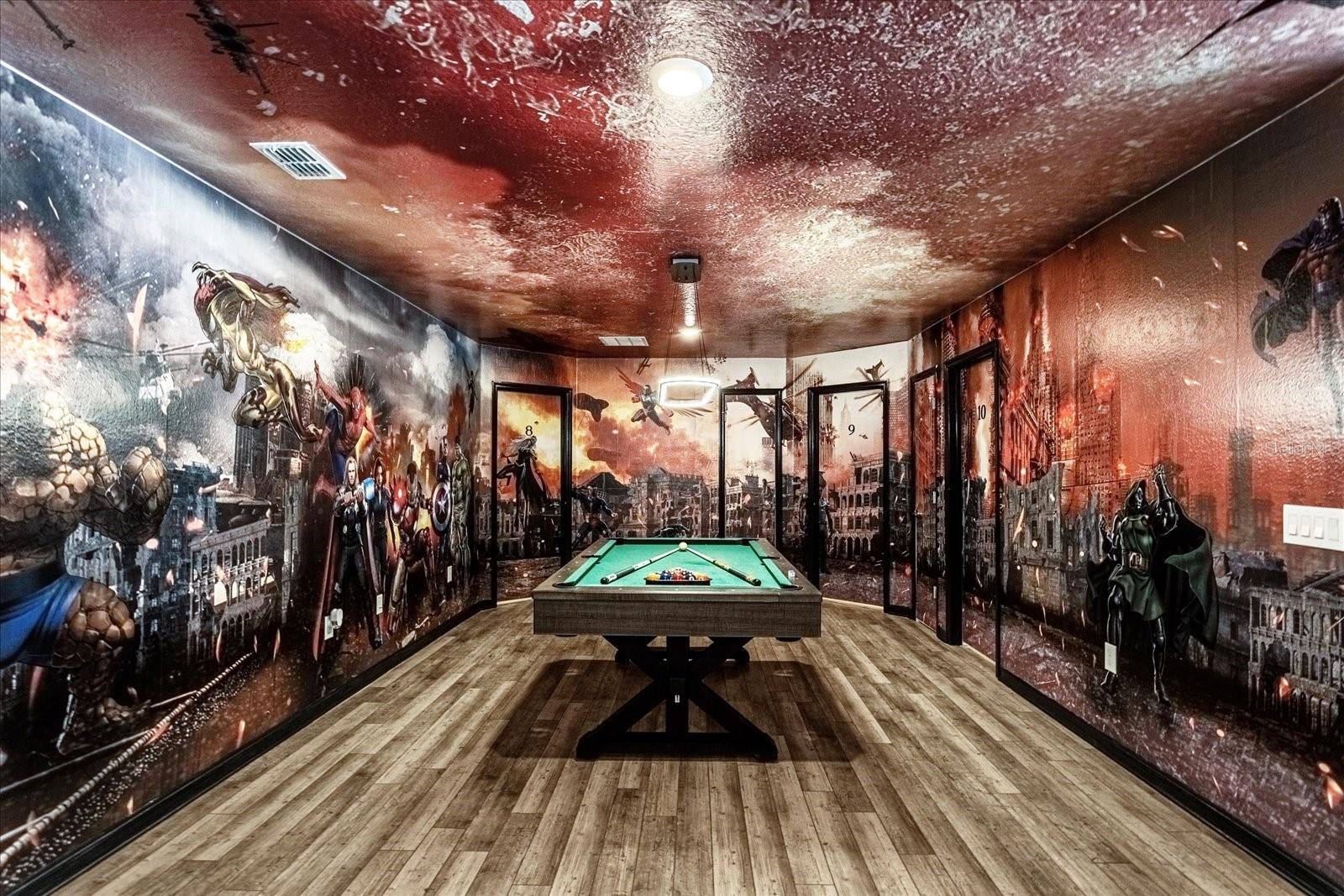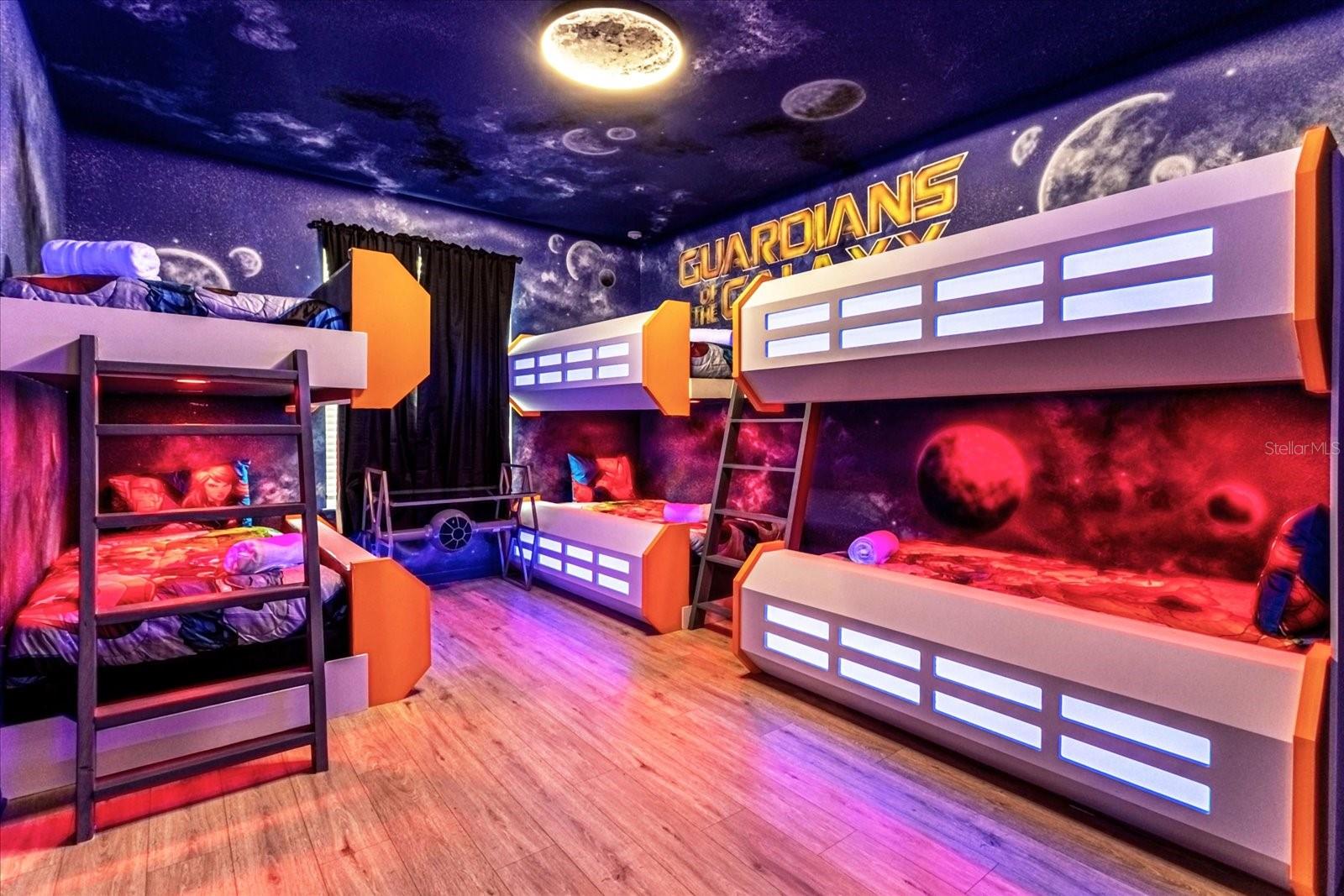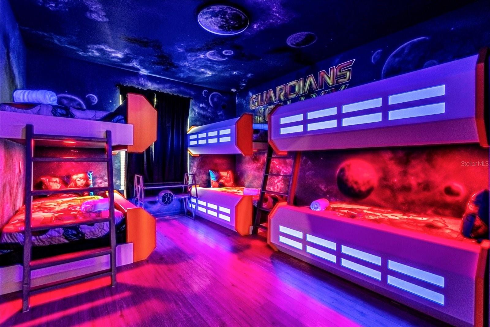 Welcome into this FULLY FURNISHED, luxury 10 BED / 8 BATH Vacation Home with a swimming pool & spa, with a variety of in-house features and amenities: Customized special Guardians of the Galaxy-themed bedroom, kids rooms decorated with the most popular cartoon characters, which are super attractive to the family who comes to Orlando for the vacation. The property nestled one of the most sought-after GATED VACATION COMMUNITIES in the Disney area: **WINDSOR ISLAND RESORT**. Walk through the front porch and be amazed by this unique SINGLE FAMILY HOME, with ample spaces and a LANAI, POOL, and SPA DECK. The kitchen is equipped with all STAINLESS STEEL APPLIANCES, such as a refrigerator with ice-maker and water dispenser, range with glass cooktop, microwave, and dishwasher, and offers plenty of storage space. The Kitchen flows into the DINING ROOM and overlooks the POOL area with sliding doors. This incredible space that combines a kitchen, dining room, and GATHERING ROOM is ideal for friends and family to get together and have a good time! The pool deck area with covered and spacious LANAI offers a large POOL, SPA, and screen enclosure. A short distance from Orlando's world-famous theme parks and attractions.