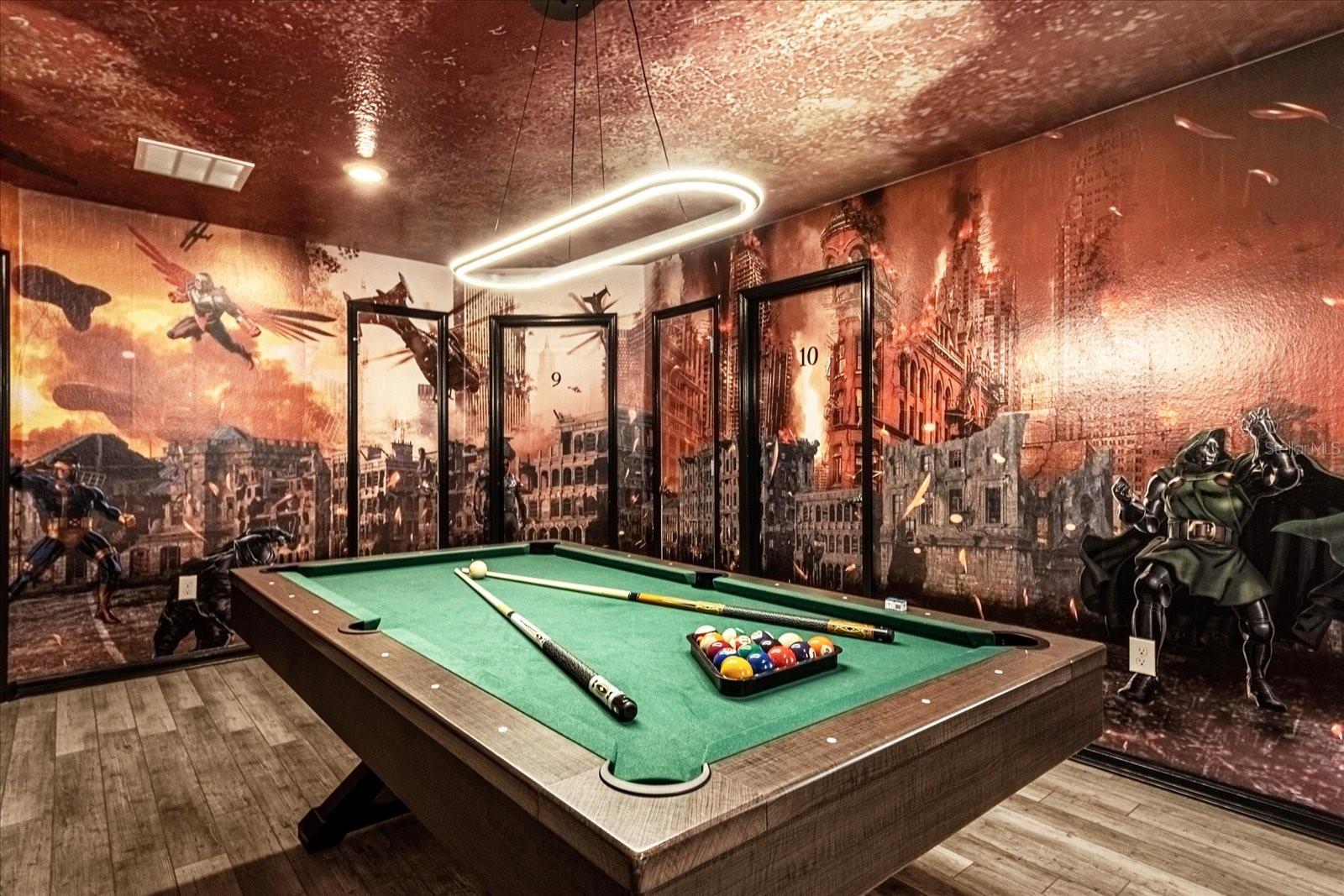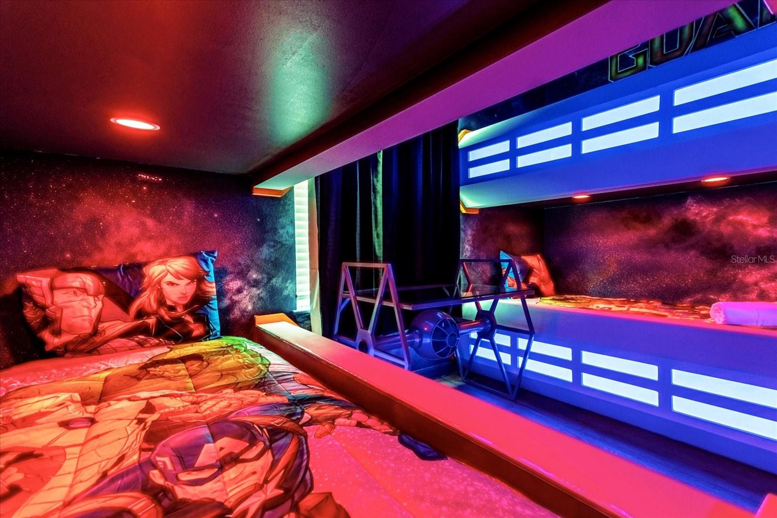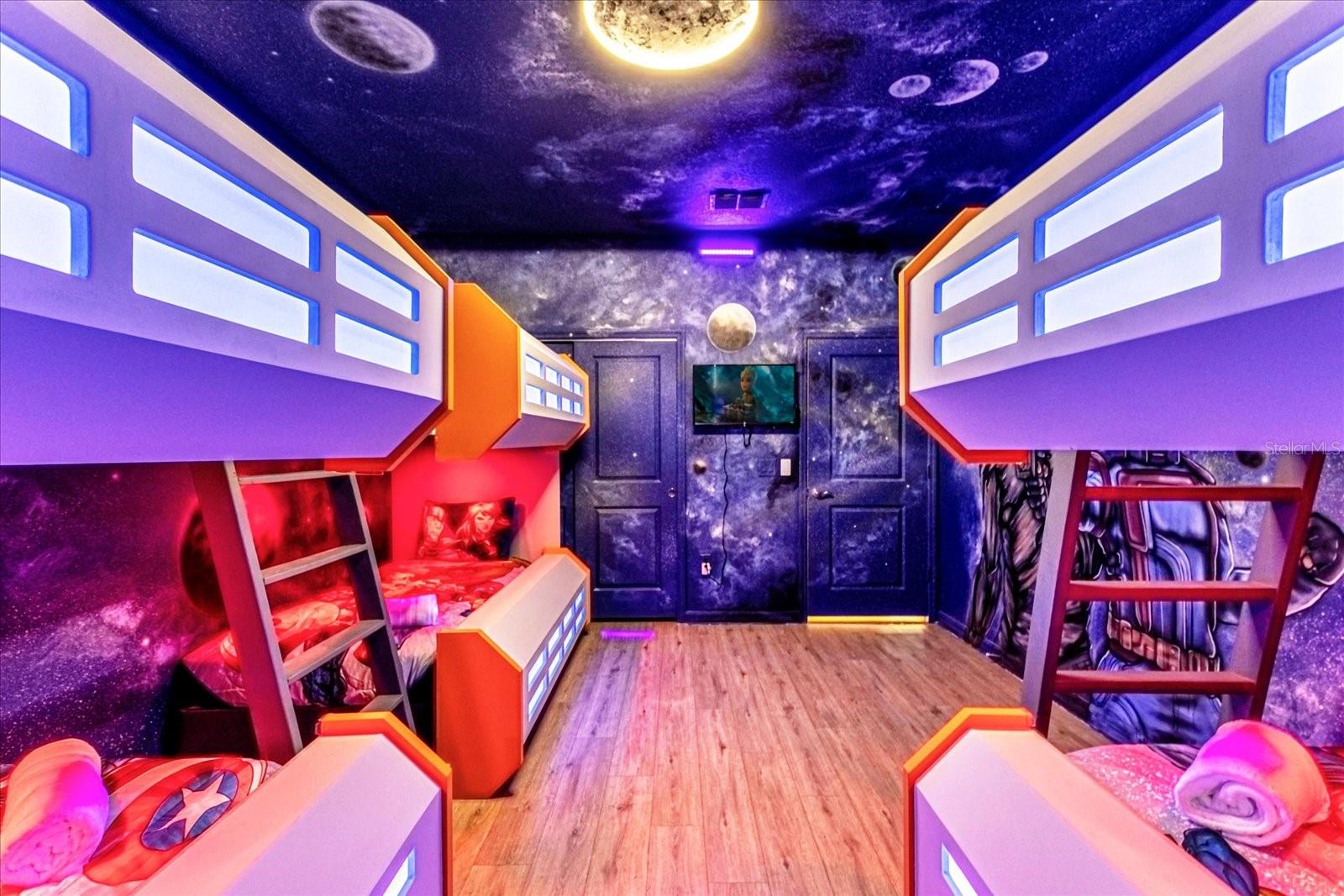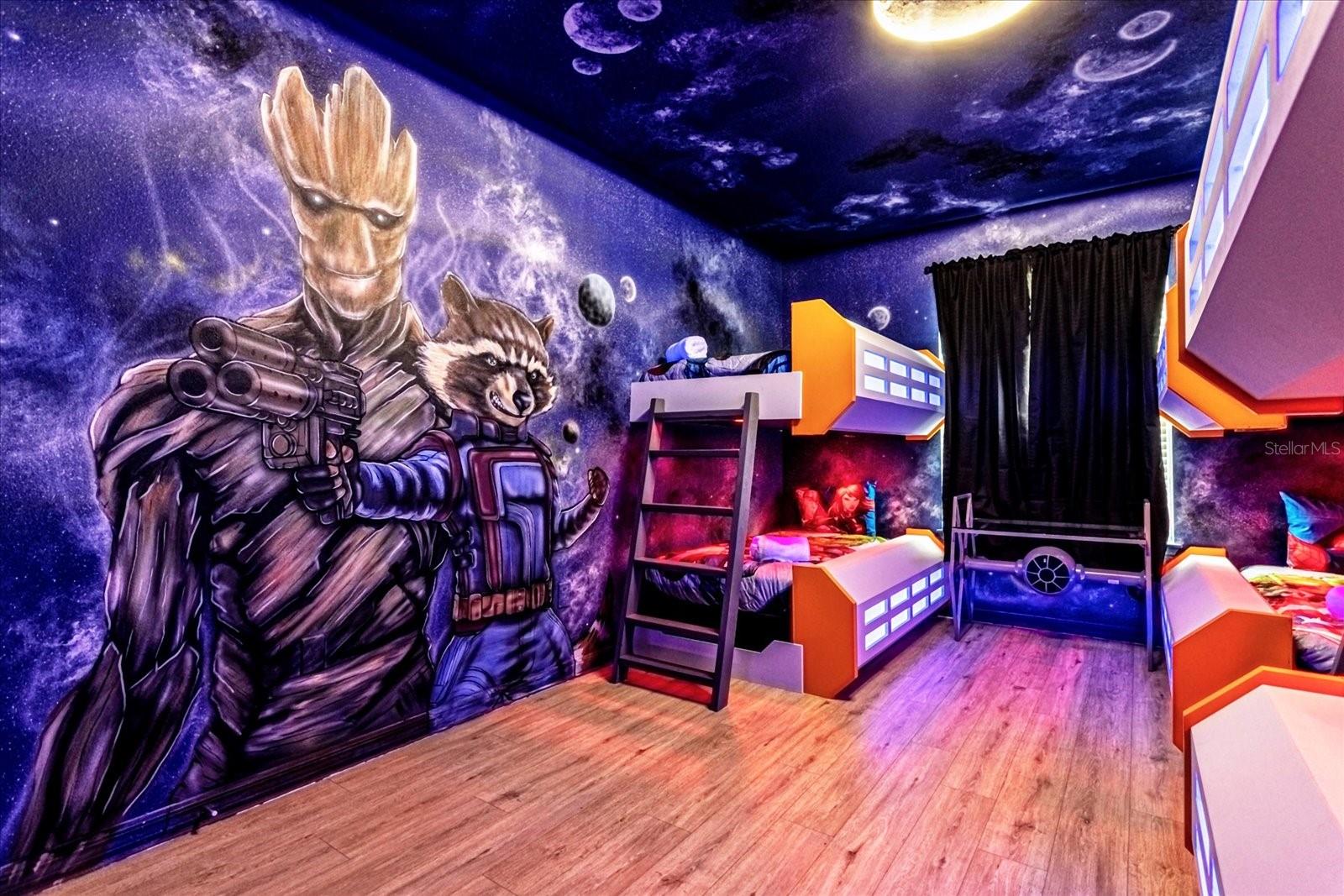 Welcome into this FULLY FURNISHED, luxury 10 BED / 8 BATH Vacation Home with a swimming pool & spa, with a variety of in-house features and amenities: Customized special Guardians of the Galaxy-themed bedroom, kids rooms decorated with the most popular cartoon characters, which are super attractive to the family who comes to Orlando for the vacation. The property nestled one of the most sought-after GATED VACATION COMMUNITIES in the Disney area: **WINDSOR ISLAND RESORT**. Walk through the front porch and be amazed by this unique SINGLE FAMILY HOME, with ample spaces and a LANAI, POOL, and SPA DECK. The kitchen is equipped with all STAINLESS STEEL APPLIANCES, such as a refrigerator with ice-maker and water dispenser, range with glass cooktop, microwave, and dishwasher, and offers plenty of storage space. The Kitchen flows into the DINING ROOM and overlooks the POOL area with sliding doors. This incredible space that combines a kitchen, dining room, and GATHERING ROOM is ideal for friends and family to get together and have a good time! The pool deck area with covered and spacious LANAI offers a large POOL, SPA, and screen enclosure. A short distance from Orlando's world-famous theme parks and attractions.