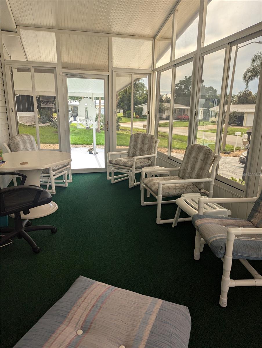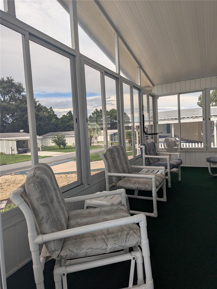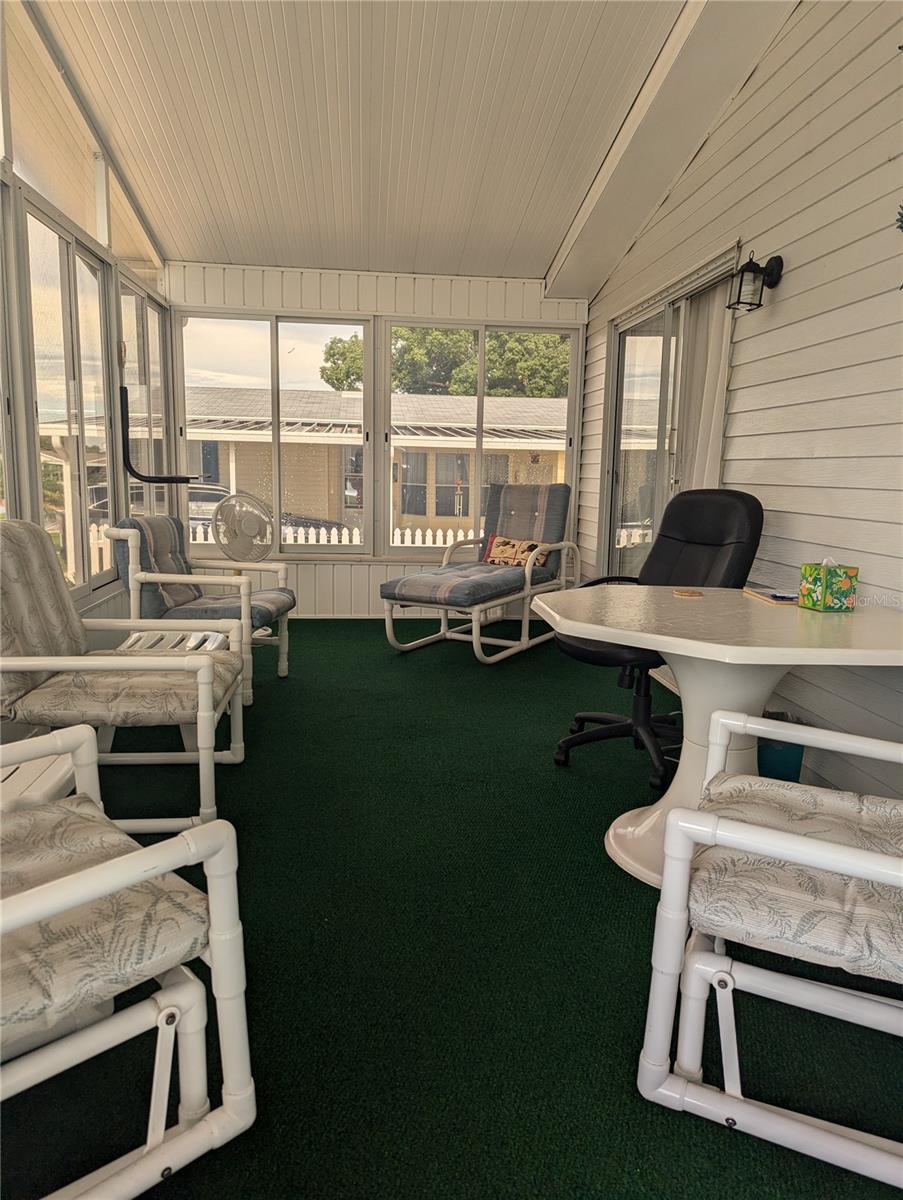 Motivated seller will pay $2000 estoppel fee. Welcome to the relaxation of a 55+ community with a golf course, two pools, tennis courts, pickle ball, shuffleboard, two clubhouses and so many activities! This beautiful house with TWO Florida rooms also offers; an eat in kitchen with additional separate dining room, breakfast bar, laundry in the second bathroom, two beautiful bedrooms, a huge master bath, 1+ car garage and additional parking in the carport, and a BRAND NEW AC and duct work!(8-2024) All furnishings are able to stay in the home! All you need to bring is your clothes! Just minutes from Walt Disney World, world-class shopping, dining, and entertainment, you’ll enjoy the best of both tranquility and excitement! Don’t miss this opportunity to own a piece of paradise! Contact us today for a private showing. Come enjoy Florida living in a wonderful golf community.