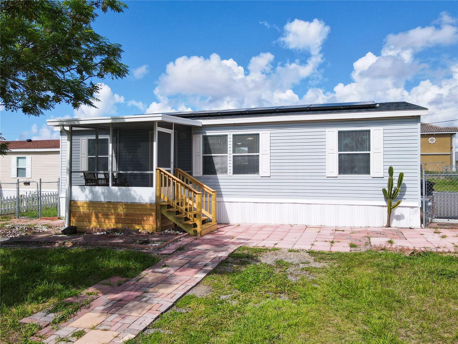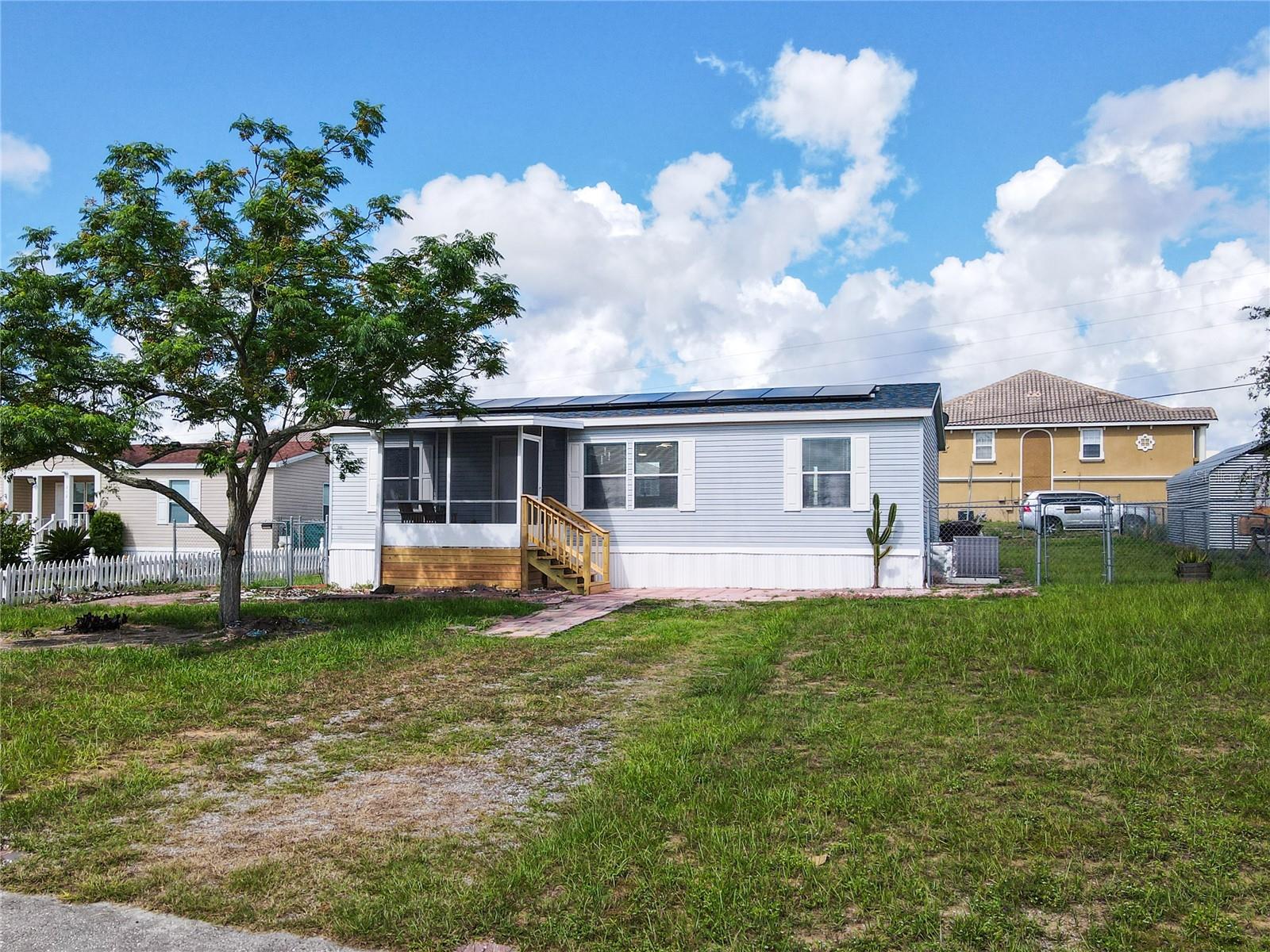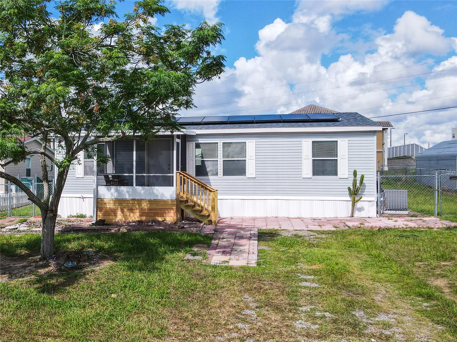 Davenport Home!!! Situated in great location in Davenport, vibrant community, and proximity to top-tier shopping, dining, and entertainment. This property is completely renovated. Property includes 3 Bedrooms, 2 Full Baths with oversized lot. The Primary bedroom is very spacious with a renovated bathroom. Newly renovated Kitchen features lots of storage cabinetry and spacious countertops. Your dining area, adjacent to the kitchen. The laundry room is located next to the kitchen with a door to the backyard. Plenty of storage space in the laundry room. The screened front balcony offer a tranquil space for morning coffee or evening cocktails. All light fixtures and ceiling fans convey with the property. This home offers an oversized lot with a second gate entrance from the side of the house. You can use it for extra parking space or to access the backyard. There is extra storage in the backyard. The house includes brand new solar panels and AC. This home is perfectly located within minutes of shopping and dining, I-4 and major highways. Schedule your private tour!!!!