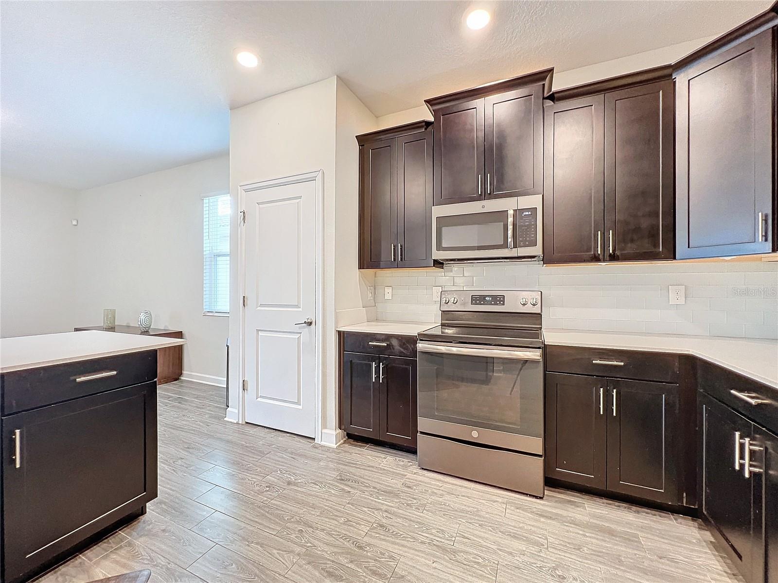 Check out this magnificent 4-bedroom 2-bath home in the much sought after Champions Gate County Club. This inviting one story tile roof home has no rear neighbors and features a peaceful view of the conservation area that's part of the Champions Gate County Club golf course. It features an open floor plan and an impressive kitchen with 42' cabinets, quartz countertops, stainless steel appliances and a large island bar. The kitchen overlooks the expansive combination family and dining room that boasts beautiful tile flooring and creates a warm and inviting atmosphere while offering lovely views of the conservation area. The master suite has his and hers walk in closets and sliding glass doors that lead to the lanai and an over-sized bathroom with dual sinks, a walk-in shower and large garden tub. Additional features include an interior laundry room, covered rear patio and a two-car garage.... Champions Gate has unparalleled amenities that include a resort style pools, spa, fitness center, tennis, pickleball, basketball, golf, fitness center, on site concierge, and much more. The HOA fee includes cable, internet, lawn care as well as a $75 per month food credit at the private Plaza Club! Located just minutes from all the major theme parks and attractions as well as shopping, dining and major highways. Don’t miss this fantastic opportunity!
