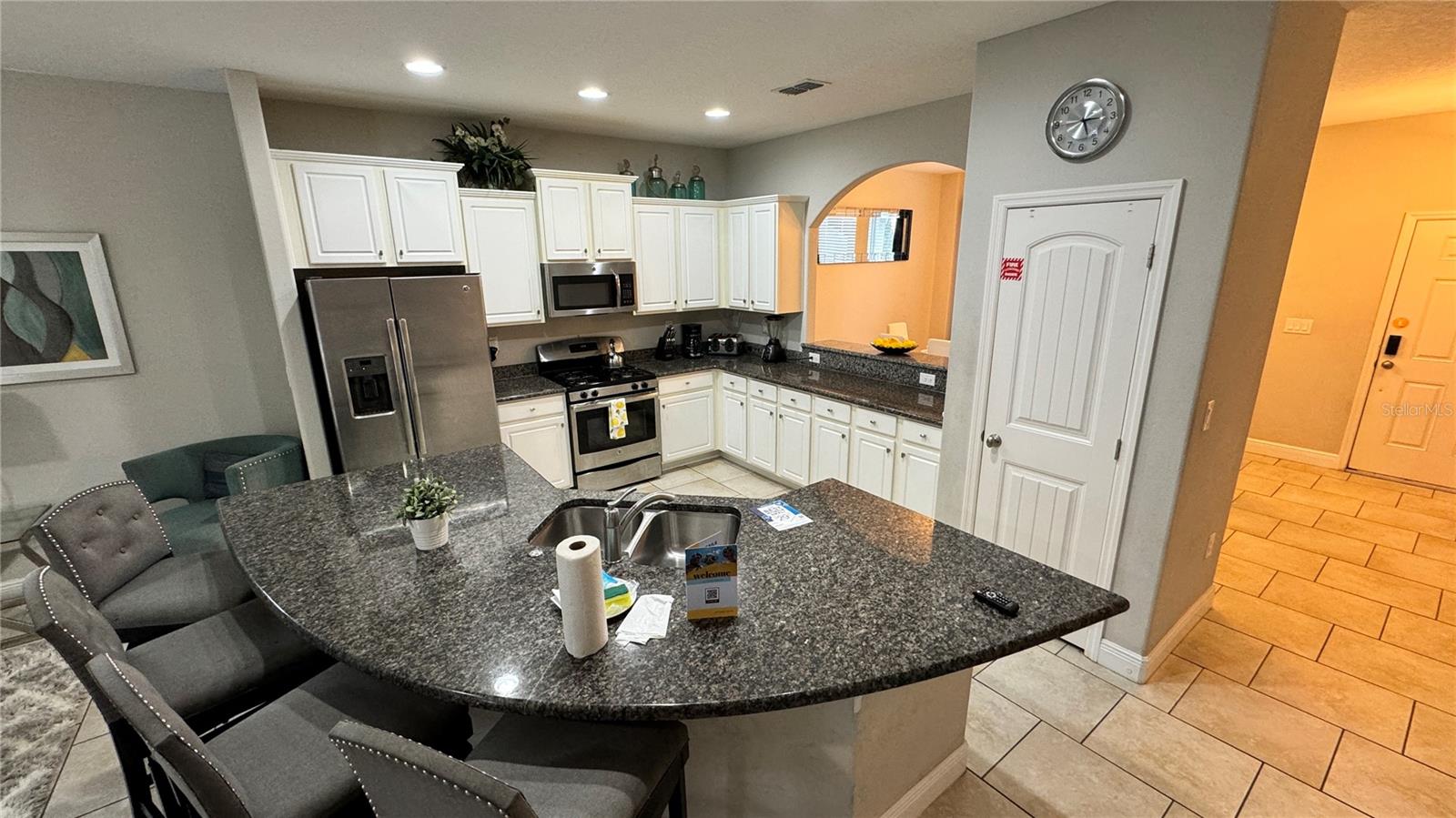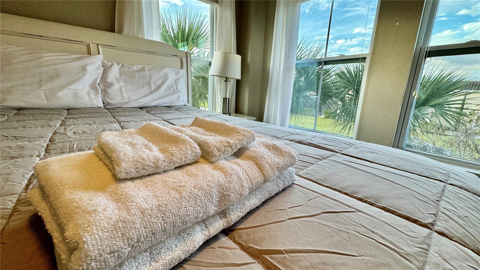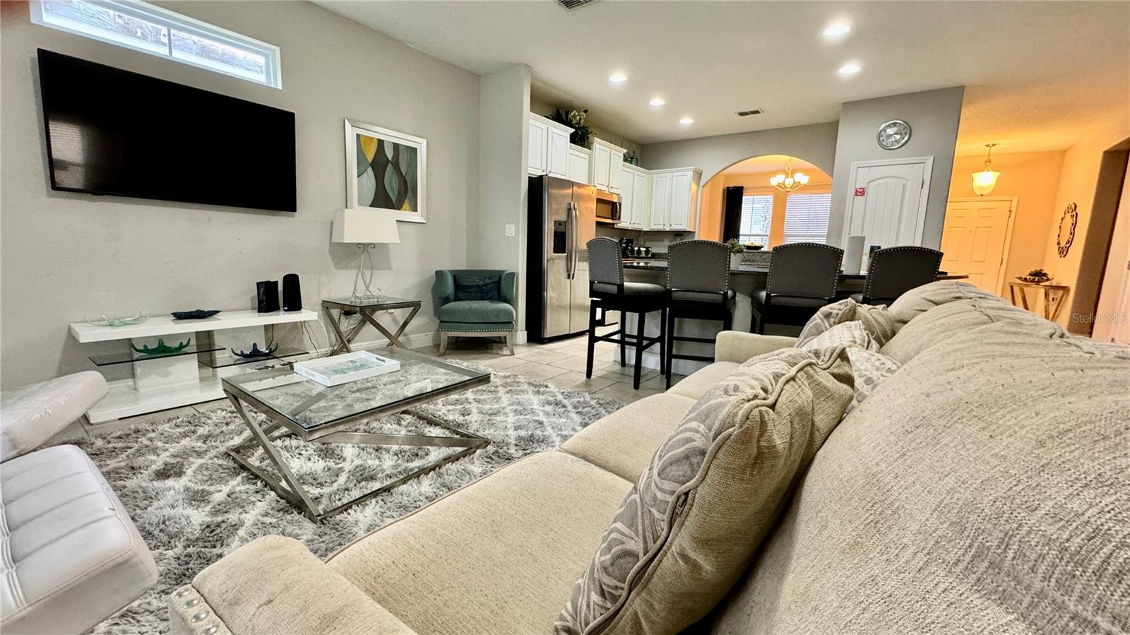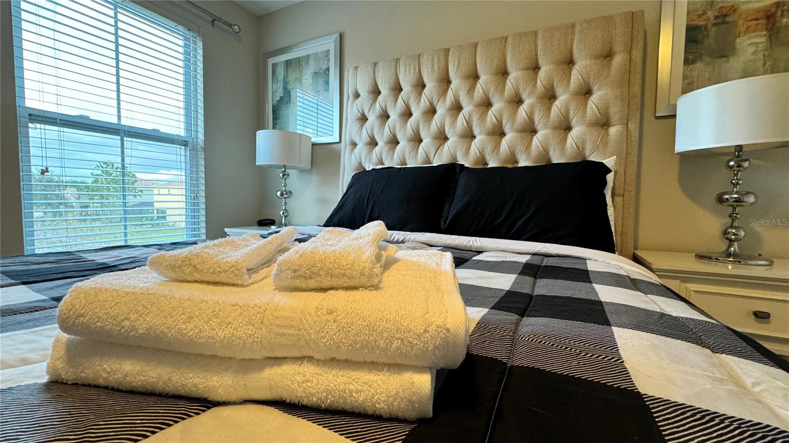 Rent-to-own options available!! Inquire if interested! Beautiful fully-furnished home in the luxurious Solterra Resort. Less than half a mile walk to the amenity center! The home features its own private pool and spa, while the Resort community has a community pool, water slide, spa, restaurant, gym, and lazy river. What more could you ask for! Save on gym membership and have your relaxing lazy river right down the street from your home, less than half a mile walk away. Each bedroom features a television, there is a projector in the upstairs living space, and there are so many other amazing furnishings, included! Basic internet and lawn services are also included in HOA fees! Resort Amenities include: *6700 sq ft clubhouse *Resort style zero entry pool *Lazy river *Water slides *fitness room *Business center and more! The space BEDROOMS Downstairs Bedroom 1 - King Bedroom, Private En Suite Bathroom, Private TV Upstairs Bedroom 2 - Master King Bedroom, Private En Suite Bathroom, Private TV Bedroom 3 - Queen Bedroom, Private TV Bedroom 4 - Twin Bedroom featuring Two Twin Beds, Private TV Bedroom 5 - Queen Bedroom, Private TV Bedroom 6 - Twin Bedroom featuring loft beds, Full below and Twin above, Private TV BATHROOMS Bathroom 1 - En Suite to Bedroom 1: Walk In Shower, Dual Vanity Sink, Toilet Room Bathroom 2 - En Suite to Bedroom 2: Walk In Shower, Garden Tub, Toilet Room Bathroom 3 - Hallway Bathroom shared by Queen Rooms: Shower/Tub Combo, Two Sinks Bathroom 4 - Hallway Bathroom shared by Twin Rooms: Shower/Tub Combo, Single Sink Bathroom 5 - Hallway Bathroom Downstairs with shower, toilet, and sink, for easy access from the swimming pool Bathroom 5.5 - Powder Room with Toilet and Sink DINING AREAS and KITCHEN As you enter the home you are greeted by the beautiful glass table! Moving further into the home you'll find the kitchen and living room areas. The kitchen is fully stocked with all of the tools and appliances you may need, all included! LIVING ROOM The open kitchen backs to the modern living room featuring a couple of Sofas. This area seats 6 comfortably. Gather around to watch your favorite shows and movies on the large flat screen TV. UPSTAIRS LOFT The loft features a sectional couch (seats 3), a projector, and more. LAUNDRY There is a full size washer and dryer included in the home, between the garage and the front entrance.