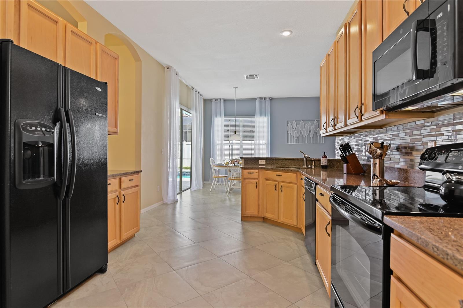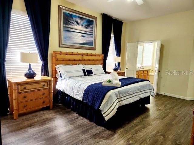 Welcome to Your Dream Home in Ridgewood Lakes! Step into this beautifully furnished and turn-key 4-bedroom, 2-bathroom home and experience a lifestyle of luxury and convenience. Nestled within Ridgewood Lakes community, this residence offers a seamless blend of comfort and style. Interior Features: Step into this inviting ambiance with spacious living areas, adorned with tasteful decor and versatile theme rooms, cater to various lifestyle needs. The Gourmet Kitchen is the heart of the home features granite countertops, a stunning new glass backsplash, modern appliances, ample storage, and a breakfast bar ideal for casual dining and entertaining. To finish the look, enjoy the new luxury vinyl wood plank flooring that enhances most of the home's interiors. Roof and pool hot water heater were updated in 2020. New hot water heater was updated in 2024. Outdoor Oasis: Enjoy your own backyard retreat with a sparkling private pool surrounded by lush landscaping for utmost privacy. Ideal for sunbathing, BBQs, and outdoor gatherings with family and friends. Community Amenities: Exclusive to Ridgewood Lakes: Take advantage of world-class amenities including a public golf course, clubhouse, heated community pool, pickleball courts, tennis courts. Location Highlights: Close to all major theme parks, shopping, dining, and major highways, offering both convenience and access to a range of activities. Additional Information: A detailed list of upgrades is available upon request. 1. The TVs in the primary bedroom and family room do not convey. 2. The home is currently being used as a short-term rental; guest bookings may be transferred. This property isn’t just a home—it’s a complete lifestyle package. Don’t miss your chance to own a piece of paradise in Ridgewood Lakes!