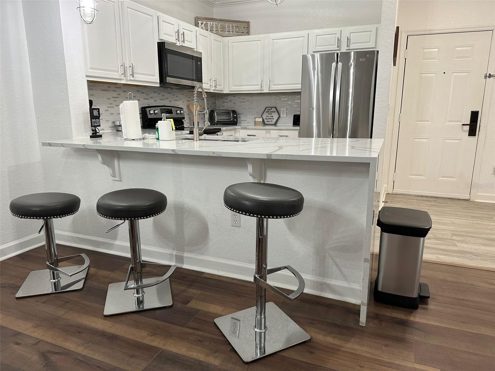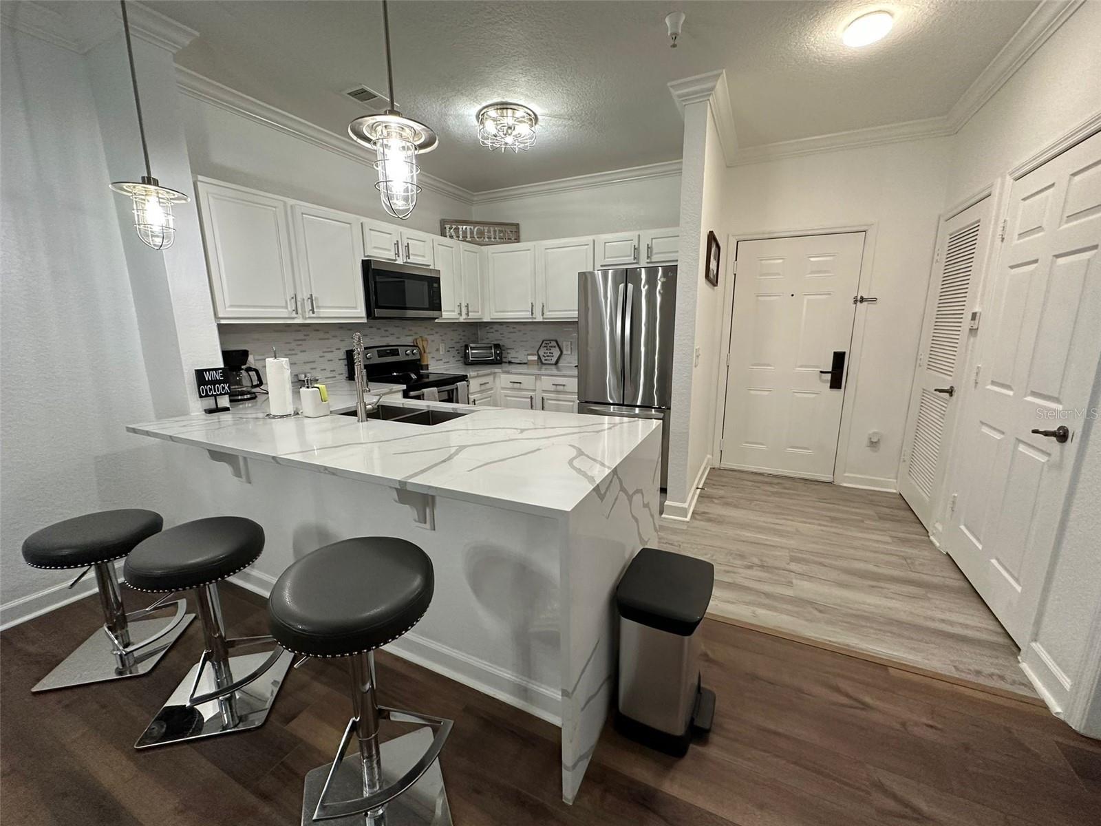 LOCATION IS EVERYTHING!, and this beautiful Resort Style Gated Community offers exactly that!, it is located in the heart of the Champions Gate area, close to all major attraction theme parks, incredible dining options, shopping malls and golf courses. This Community has a Resort style pool that’s has Cabanas, restaurant/bar, Kid pool, and a Fitness Center. Short term rentals are allowed. The apartment is located on a first floor, it has been remodeled, featuring new beautiful Vinyl Plank flooring, new Kitchen Counter tops (Waterfall style), fresh coat of paint through the apartment walls, cabinets refinishing, new modern light fixtures and new ceiling fans added in all of the rooms to provide extra cooling space if desired. New AC Unit was installed in the fall of 2022. This property is selling fully furnished, the current design is giving the spaces a nice clean minimalist modern look. Make this your perfect home or perfect investment opportunity in one of the hottest spots in Central Florida!