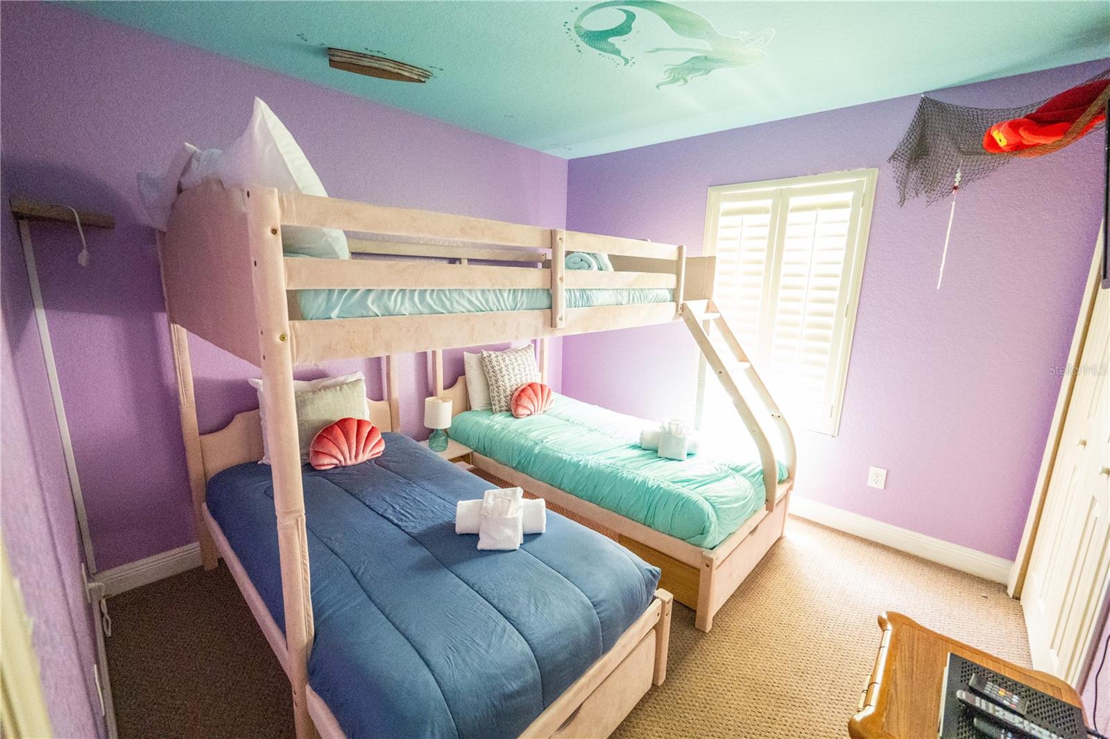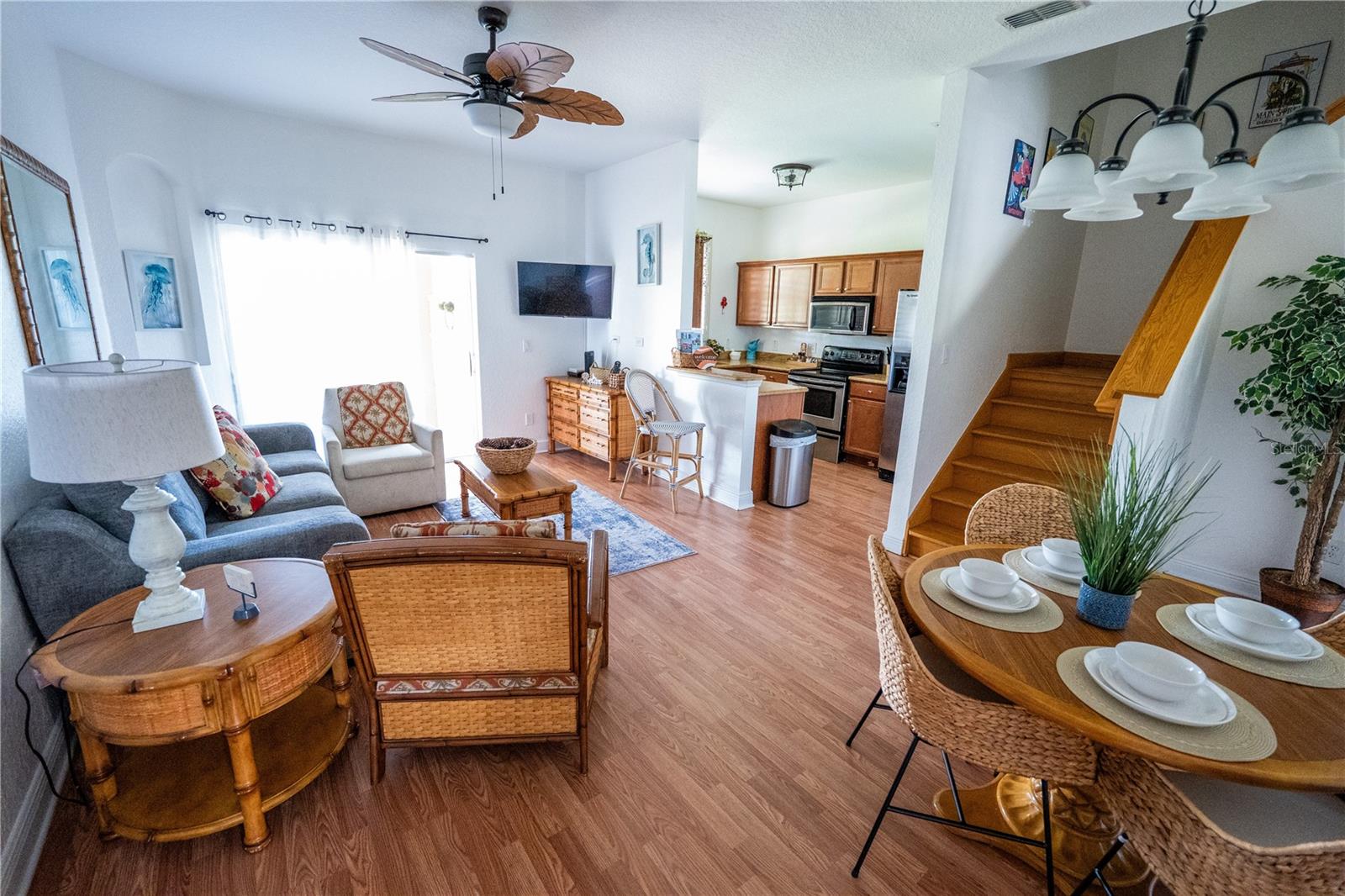 For a complete REAL walk through of this home find the Video or Virtual Tour button somewhere on this page! Attractive Vacation Townhome that is turn-key and that can be used as a second home, vacation Home, or a Short Rental with Airbnb or VRBO. Located in Regal Palms at Highland Reserve in Davenport an Amazing 24-hour Guarded Gated Community with unbelievable Resort-Style Living amenities. Four-bedroom, three-bath in total fully furnished with a lockout that can be rented separately as a one-bedroom, one-bath unit. Light and bright unit with wood floors throughout the first floor. The kitchen offers granite countertops, wood cabinets, and stainless steel appliances and is fully equipped with all the things you would need to eat and snack while on vacation. Quaint living room/dining room combo for relaxing after a long day at the parks or by the pool and family meal time so you don’t miss a beat. A private junior suite on the first floor with plantation shutters, ceiling fan, and ensuite bathroom gives this occupant privacy in this room Tastefully decorated the main primary bedroom is located on the second floor with a king bed, ceiling fan, plantation shutters, primary bath with extended vanity, and shower with jetted tub. The second bedroom upstairs has a Disney theme with two twin beds and the third bedroom has a nice beach theme with a queen bed and matching décor. The third bath offers a shower with a tub and the entire home is equipped with linens, towels, TV’s and everything needed to enjoy your time away from Home. Inside, a stacked washer and dryer for your convenience. Sliders take you out to your private lanai with a conservation view to enjoy that morning coffee or end-of-day glad of wine or hot tea. The HOA includes lawn care, basic cable, internet, pest control, trash, roof replacement, building exterior maintenance, and plenty of parking! This resort vacation destination gives owners and guests incredible amenities such as Tropical Paradise Pool area, a pool slide, a lazy river, a fitness center, Frankie Farrell's Pub & Grille, a Classic Style Ice Cream Shop, a massive arcade & play area, barbeque areas, business center and so much more! Located just minutes from all the major attractions; Disney, Universal Studios, Seaworld, Aquatica, golf courses, an array of restaurants, shops, and activities. Make this your new home away from home!