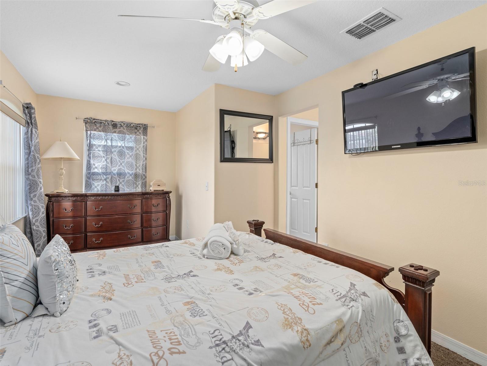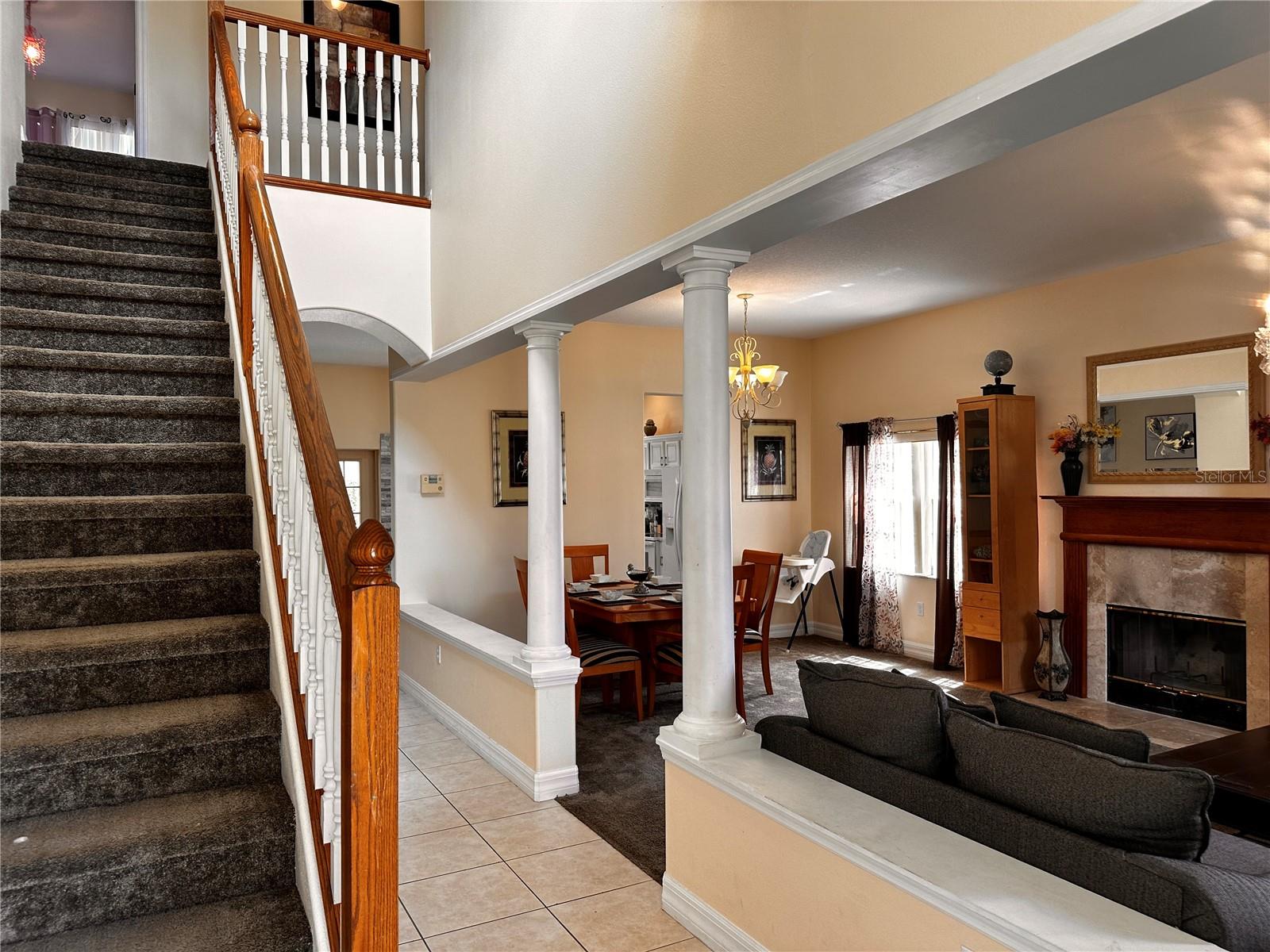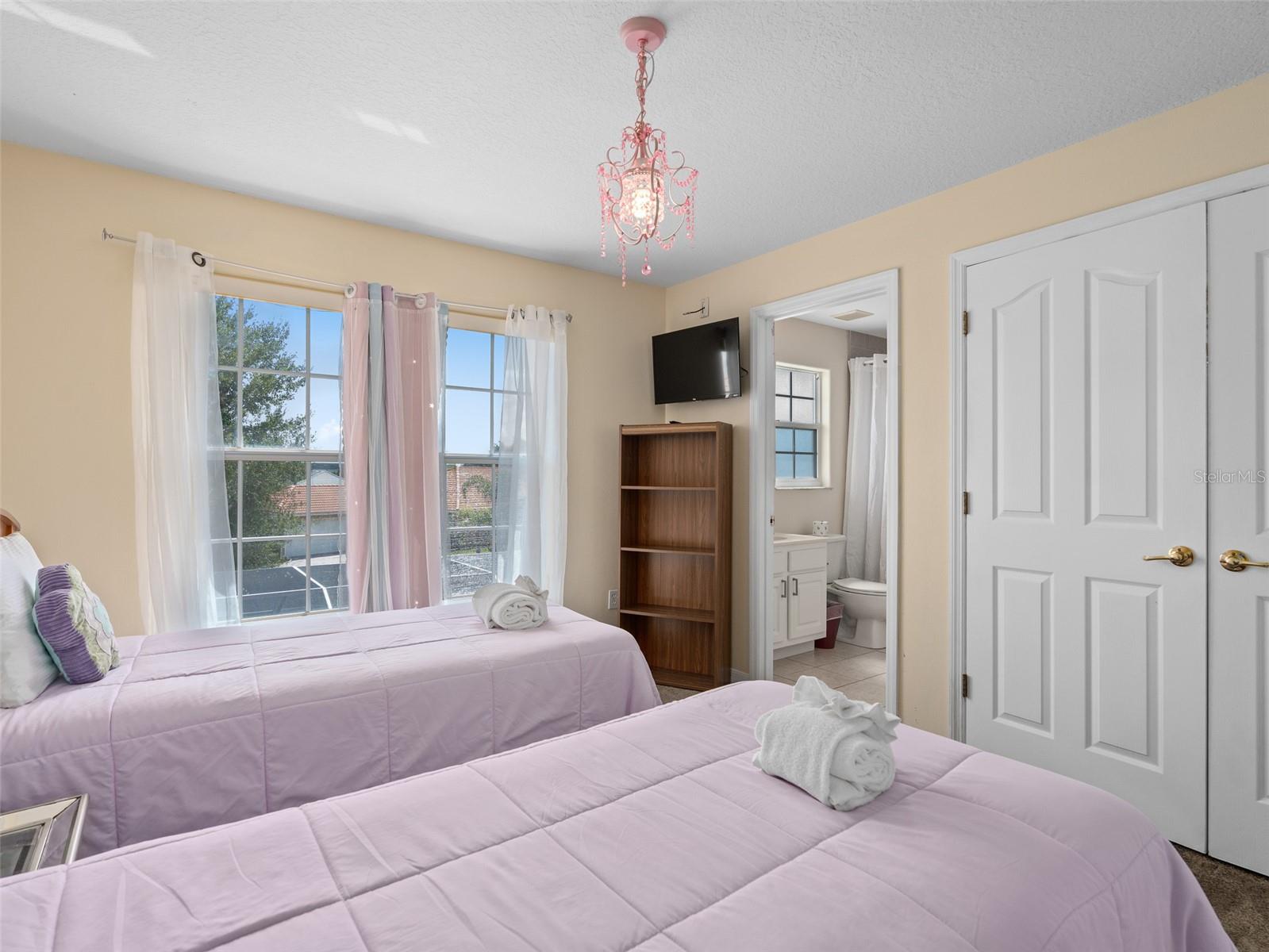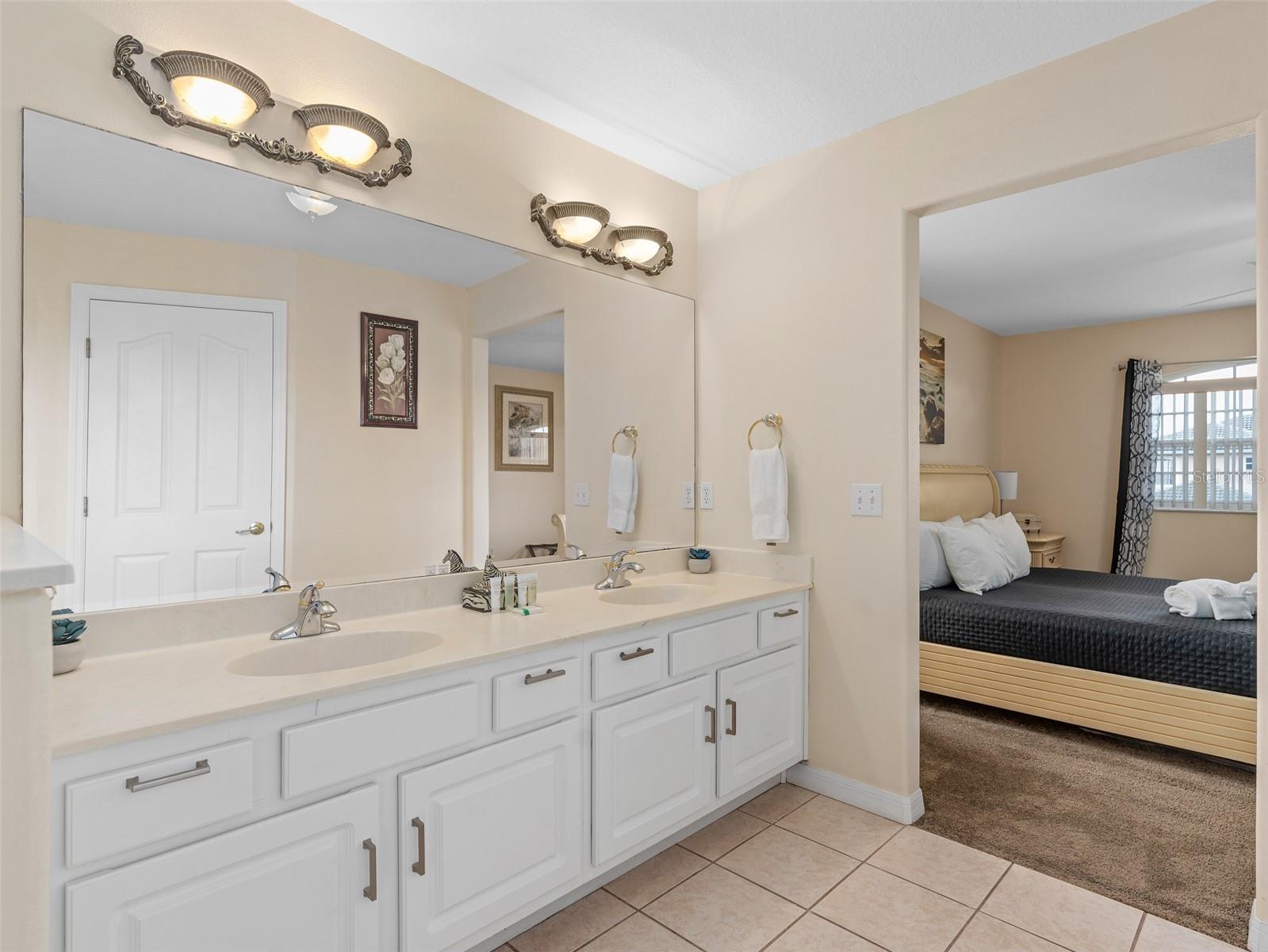 Price REDUCED to Sell Fast!!! This exceptional residence features 5 bedrooms, 7 full bathrooms, and a sauna, making it ideally suited for short-term rental, long-term occupancy, or as a primary residence. This house was utilized as a short-term vacation rental through Airbnb for a couple of years after current owner moved out of state. Positioned just 12 minutes from the Disney Parks, this property is nestled within a secure gated community on a generously sized corner lot. Upon entry through the double French doors, guests are welcomed by elegant ceramic tile flooring. To the right lies the primary living room, complemented by a charming fireplace and overlooking the dining room. The dining area provides access to an open-concept kitchen space featuring updated cabinetry, a double kitchen sink, dishwasher, new garbage disposal,microwave, refrigerator, and range. Adjacent to the kitchen is a breakfast nook comfortably seating six individuals. Facing the kitchen is another living area, which leads to a second set of double French doors providing access to the stunning pool and ground spa area, enveloped by a brick decking and accompanied by a full stand-up shower. Here, guests can unwind and appreciate the captivating sunrises and sunsets with loved ones. Please note that the built-in grill is currently non-operational and requires a new burner. The first floor hosts the primary master bedroom,complete with a dual-sink bathroom and expansive walk-in closets. Opposite the master bedroom is a spacious master bathroom featuring asteam stand-up sauna and separate tub. Additionally, a generously sized laundry room is conveniently situated on the same floor, with access to the double-car garage below. Upstairs, four additional bedrooms await discovery. The second master bedroom offers dual sinks, tiled floors, a separate shower and tub, and a walk-in closet. The third bedroom is equipped with a full shower/tub bathroom, while the fourth bedroom features a stand-up shower. The fifth bedroom also boasts its own full shower/tub bathroom, all adorned with Mediterranean-style roofing. FURNITURE in the pictures will NOT CONVEY, However, the Sauna Room and Equipment will.