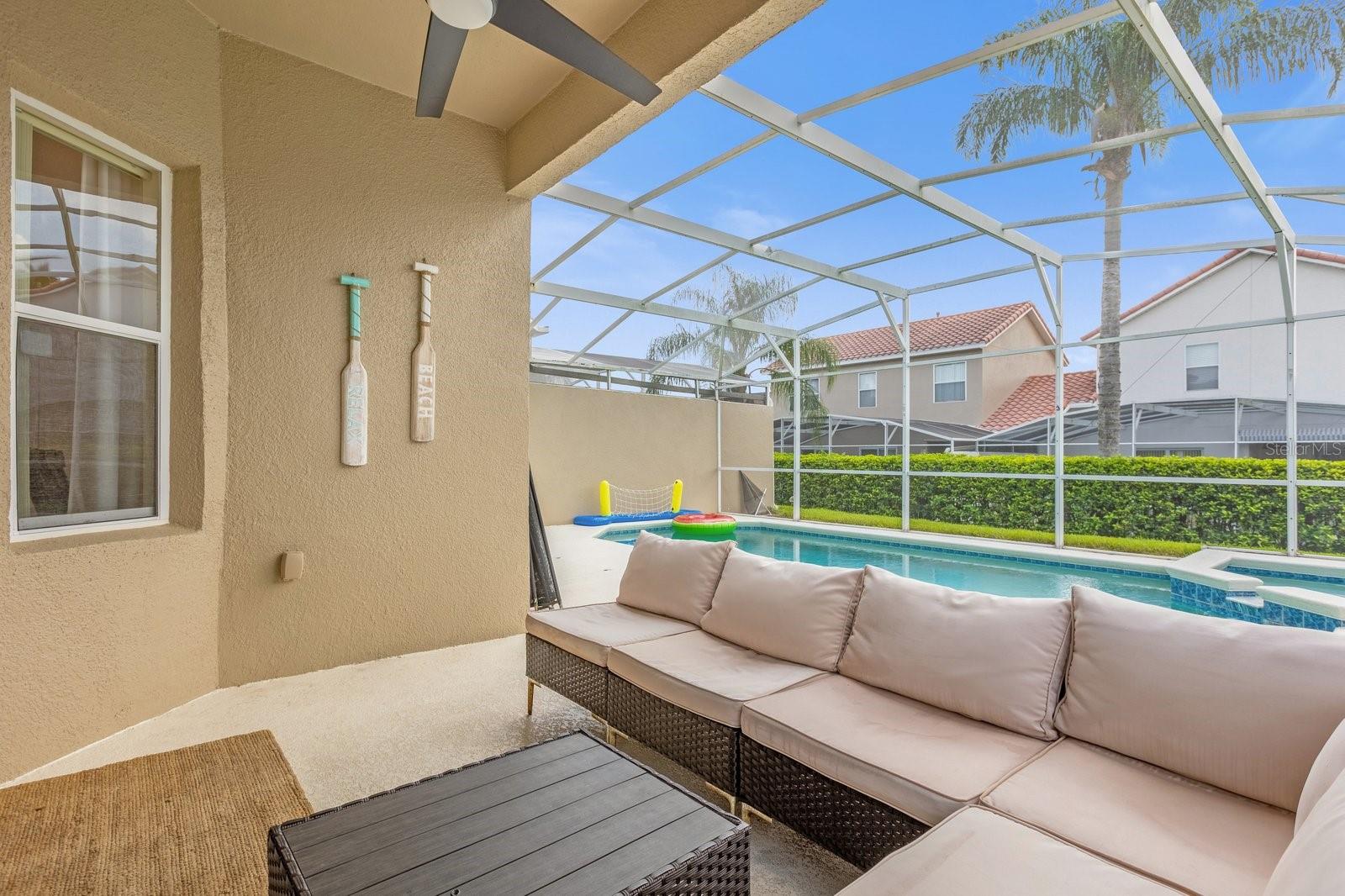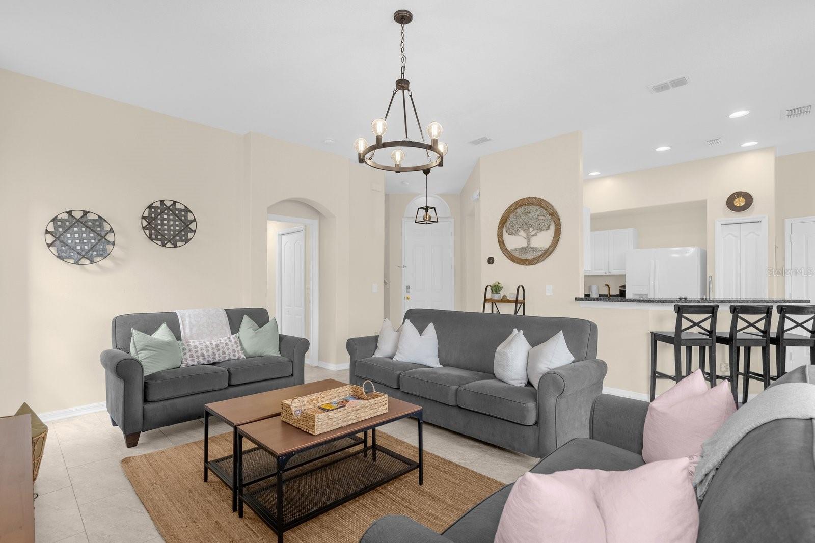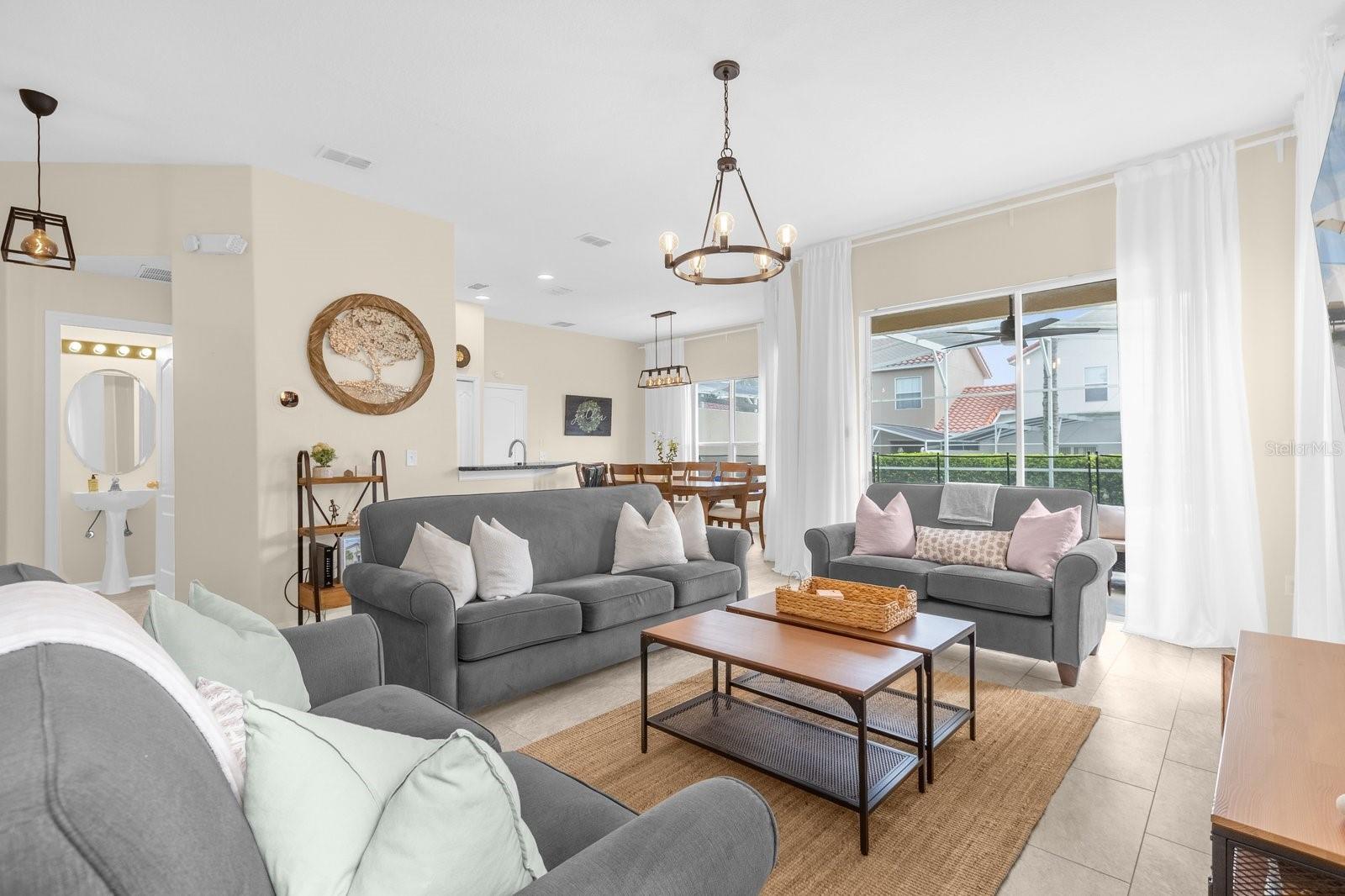 TURNKEY AIRBNB WITH PROVEN RESULTS!! Discover the perfect blend of luxury and comfort in this stunning 5-bedroom, 3.5-bathroom home, ideally located just minutes from the magic of Walt Disney World. Whether you're seeking a prime vacation rental or a spacious family retreat, this property has it all! As you step inside, you'll be welcomed by an expansive open-concept layout that seamlessly connects the living, dining, and kitchen areas, creating a warm and inviting atmosphere perfect for family gatherings or vacation relaxation. The kitchen boasts newly upgraded granite countertops, providing both style and functionality, and a gas water heater was installed in August 2022 for efficient energy use. The interior has been freshly painted, and the home features upgraded lighting and plumbing fixtures throughout, adding to its modern charm. One of the unique features of this home is the upgraded garage, which has been transformed into a fun-filled game room, perfect for family entertainment. The property includes not one but two primary suites—one on the main floor and another upstairs—offering flexibility and privacy for both homeowners and guests. The downstairs half-bath is perfect for visitors, while the en-suite in the main-level primary suite boasts a large shower, ideal for a spa-like experience. Each of the generously sized bedrooms offers ample space, making this home suitable for a family or as a prime rental property for guests. Step outside to your private pool and heated spa, a personal oasis where you can unwind after a day at the theme parks or work. To top it all off, the owner is offering a HOME WARRANTY! ensuring peace of mind for your investment. Schedule a tour today to experience the best of Florida living, just moments away from world-class attractions!
