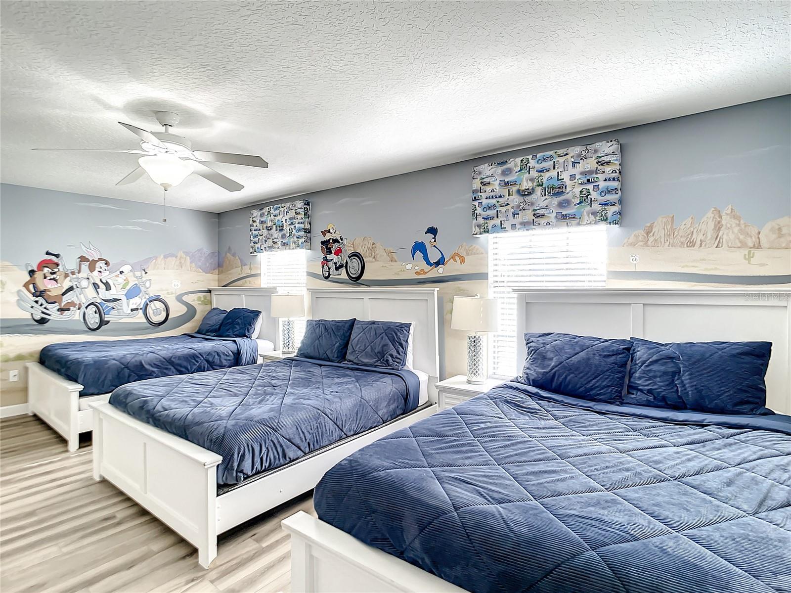 back on the market, not due to the fault of the seller. Check out this stunning 8-bedroom, fully furnished vacation home with a private pool and spa! Featuring themed bedrooms and a game room—essentials for any vacation rental—this turnkey home boasts a fantastic open floor plan, a spacious kitchen with stainless steel appliances and granite countertops. The property includes several themed bedrooms, a game room, a loft area, and plenty of space for entertaining. The screened-in, heated pool with an attached spa is a major highlight. Residents also enjoy access to The Oasis Club, which offers resort-style amenities like pools, a lazy river, waterslides, a splash pad, a fitness center, a business center, a movie theater, and a full-service restaurant. Additional amenities include basketball, volleyball, tennis, and golf facilities. Located just 15 minutes from theme parks and close to shopping and dining options, this home is perfectly situated for both relaxation and fun.