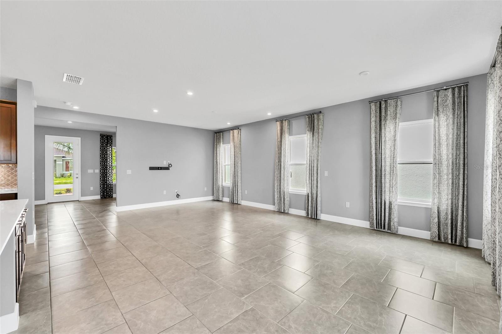 One or more photo(s) has been virtually staged. Beautiful New Home near Disney! The LAST home with the popular Hadley Bay floor plan available in this community! This home was the builder's model and is now available for sale! Four bedrooms (5th bedroom possibility) and three full bathrooms. The brick paver driveway and front porch greet you into this open floor plan. The front flex room is perfect for an office, music room or formal living room. Make your way to the kitchen and living room/dining area. Lots of light and tons of space make this home ideal for entertaining! This eat-in kitchen includes the gourmet package (cabinet hardware, built-in double ovens, glass cooktop, stainless steel appliances, deep sink, backsplash and quartz countertops)! Bedroom 4 is located on the first floor and the full bathroom is adjacent, making this great for a home office, guest or MIL suite. Upstairs, a large loft awaits with a walk-in closet. Great for extra seating space, a game room or add a wall to create a 5th bedroom (as shown in the floorplan). Two more bedrooms, a laundry room, and a bathroom with dual sink vanity is right down the hall. Separately, you'll find the Owner's Suite, equipped with tray ceiling, two oversized walk-in closets, shower with bench option, and dual sink vanity with makeup area. This room is generous in size and fit your King size bed with extra room for a sitting area. Enjoy the backyard that overlooks the green space and has no rear neighbors! The community of Astonia includes a beautiful community pool and playground and is a short drive to Disney and the parks!