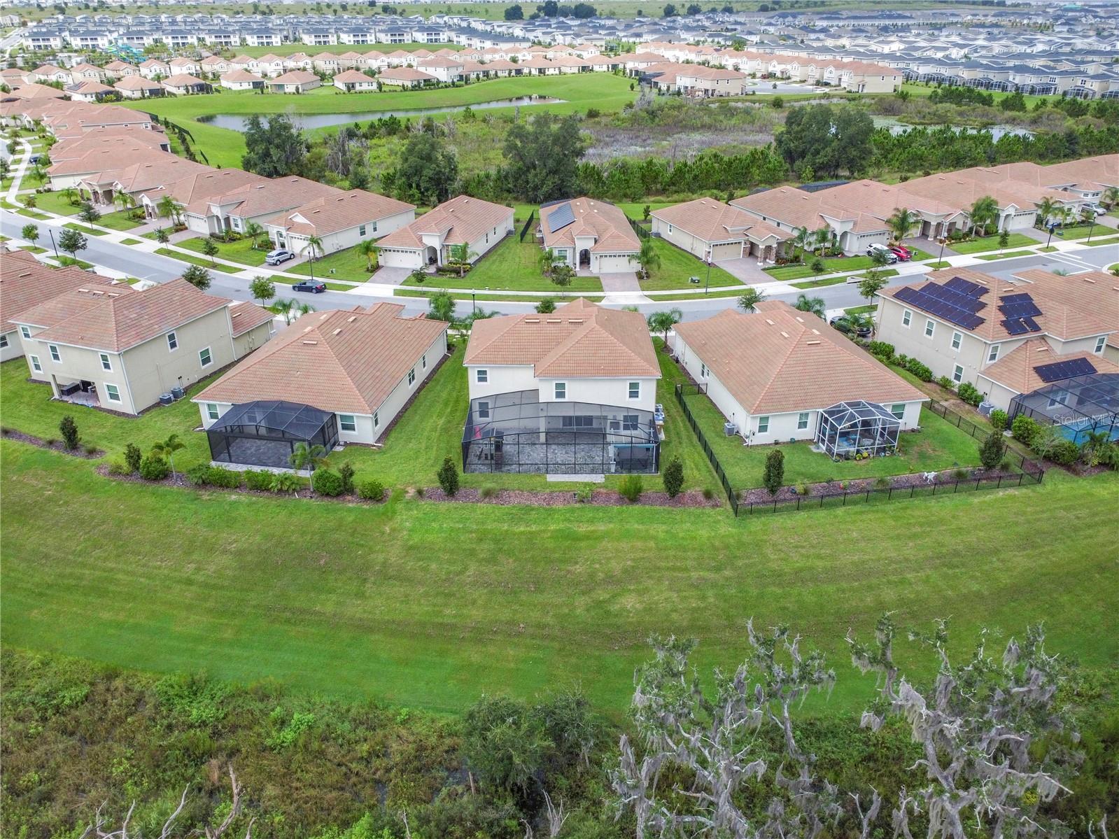 NEXT-GEN LIBERATION HOME WITH IN-LAW SUITE AND SEPARATE GARAGE & ENTRY! This spacious 6 bedroom, 4 1/2 bathroom, and 3 car garage spares no details. Separate in-law suite can be used for multiple purposes...college student, rental, in-laws, guest quarters, or even a separate office to keep everyone happy! Enclosed outdoor lanai with HOT TUB and outdoor shower and paved over 1200 square feet of yard to give you your own outdoor oasis! This home was built in 2021 and is a Smart Home and boasts an open floorplan concept. Upgrades include Quartz countertops, backsplash, pantry closet, large cooking island, and stainless-steel fingerprint resistant and energy star appliances. Gated Community for extra security! Champions Gate Community offers an 18-hole Golf course, Tennis, 7 Swimming Pools, Restaurants, Fitness Center, meeting rooms, and much, much, more. Feel like you are on vacation at the 16,000 square foot Oasis Club which features a lazy river, waterslides, swim-up bar, waterfalls, Tiki Bar, movie theater, beach entry splash pad, grills, arcade, and cabanas for the family! All of this PLUS your INTERNET and CABLE, Trash Pickup, landscaping, and lawn maintenance, GOLF MEMBERSHIP, access to all clubhouses. Own your piece of heaven in Champions Gate